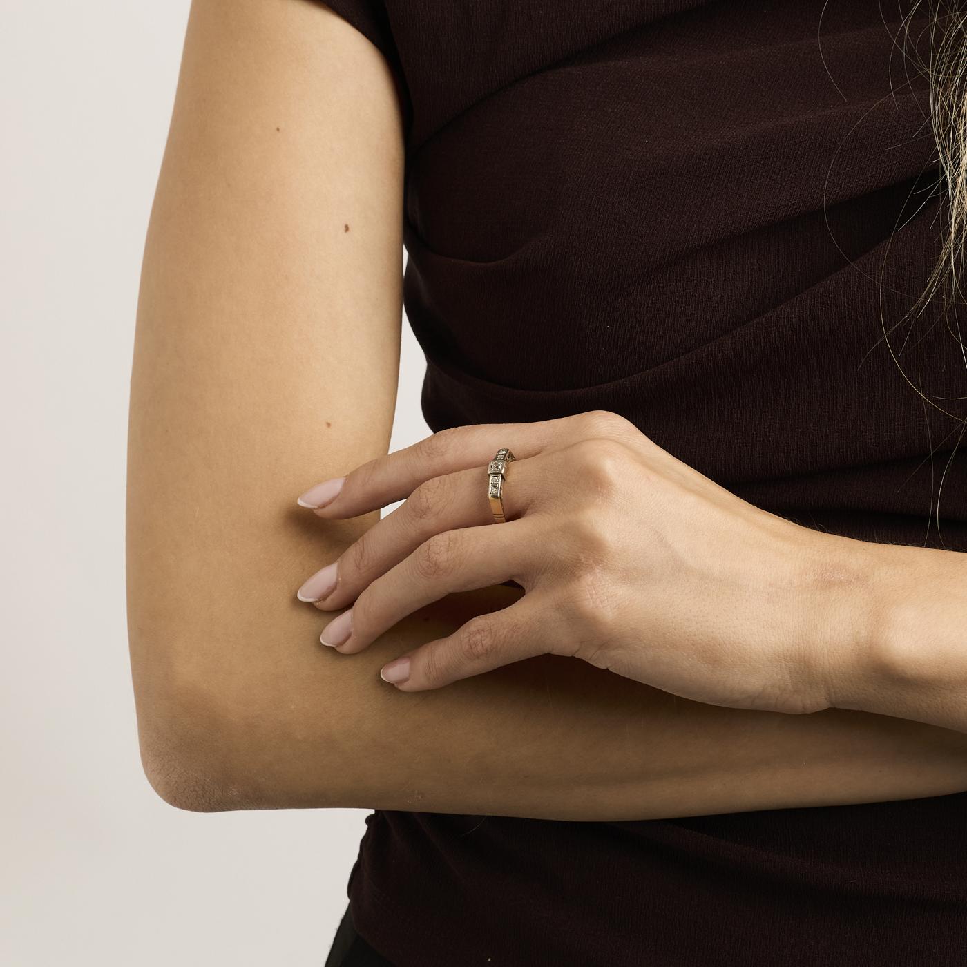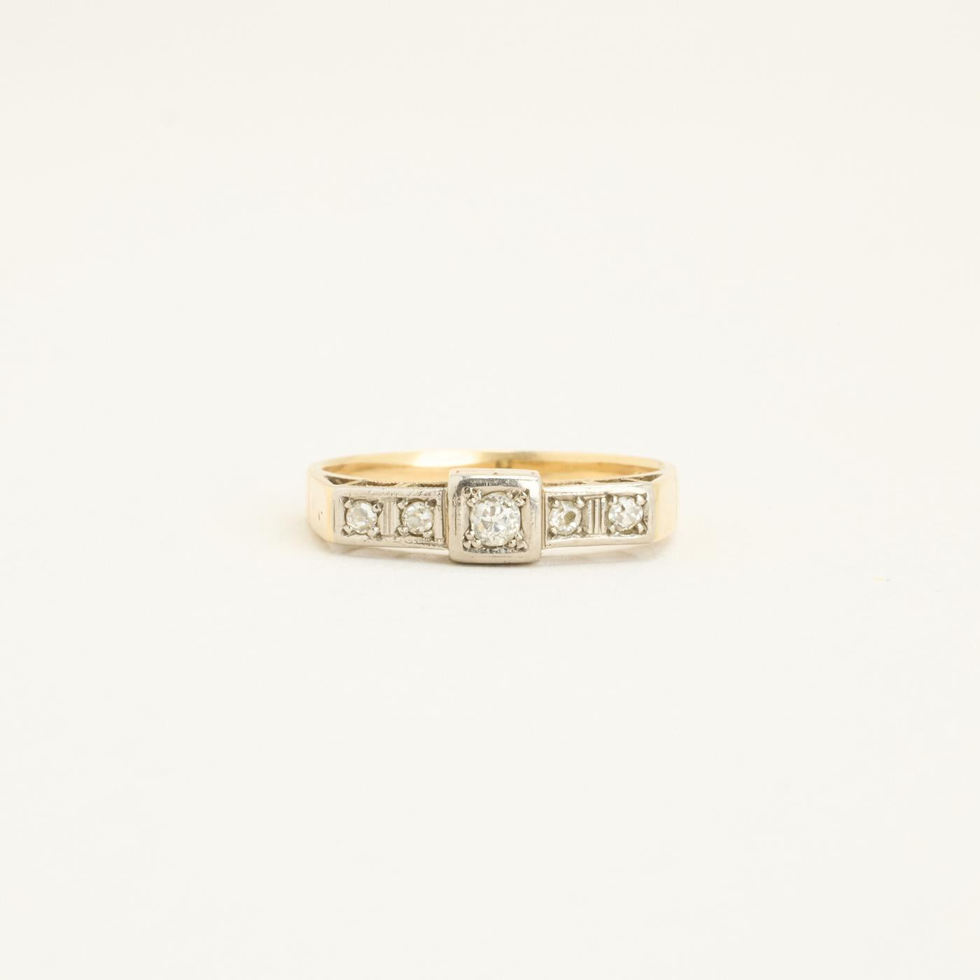 Femstensring i 14K guld, med diamanter (0,19 ct), Str. 54
