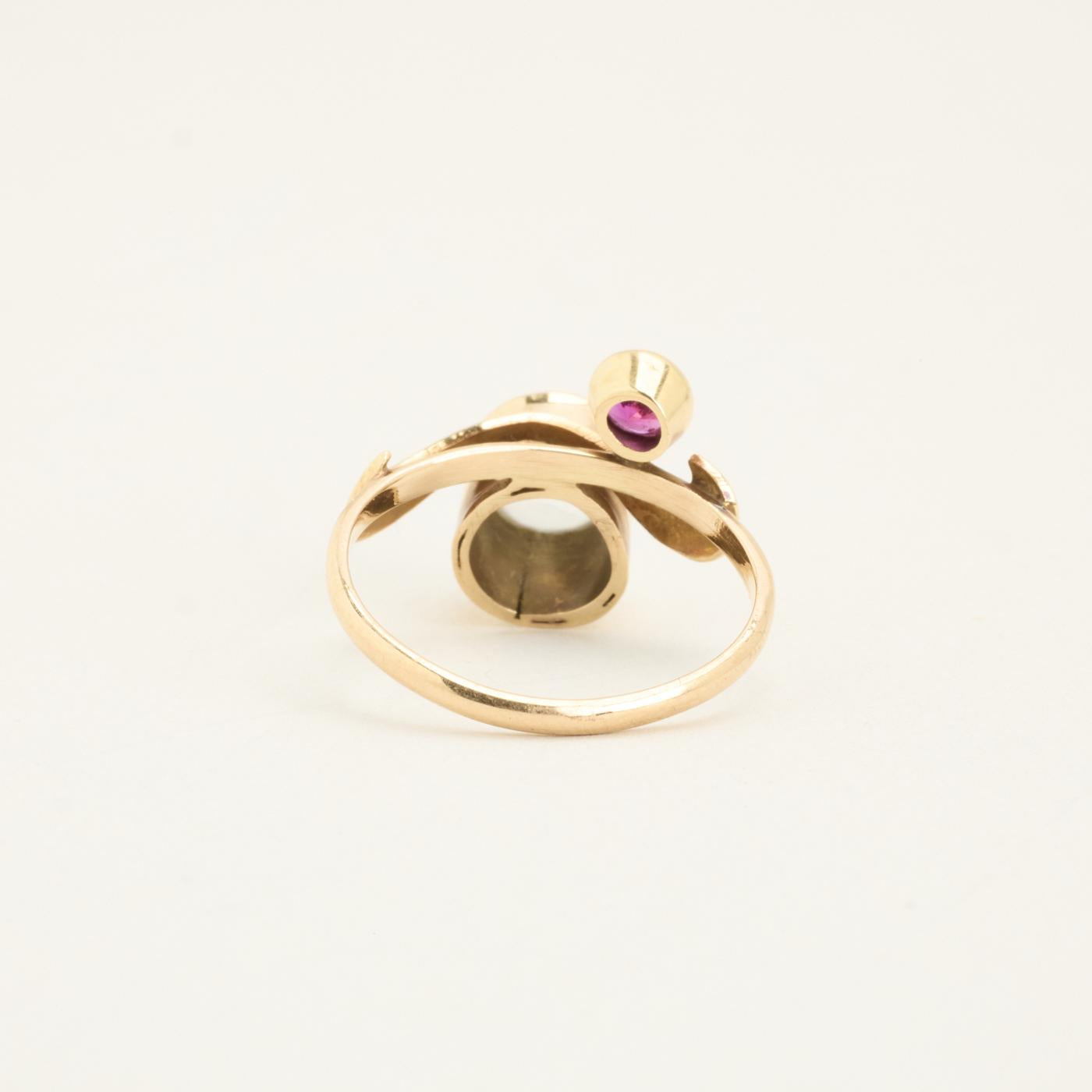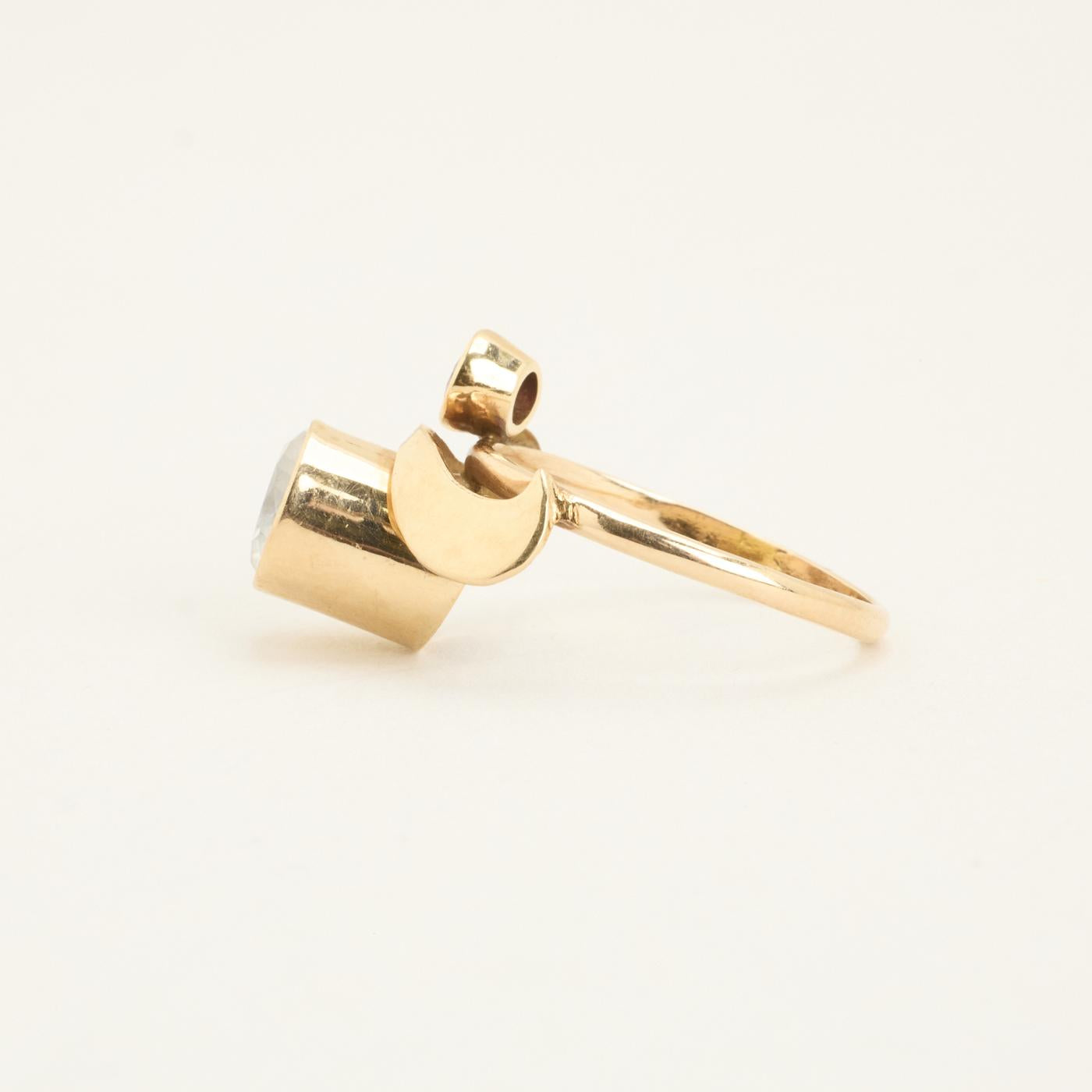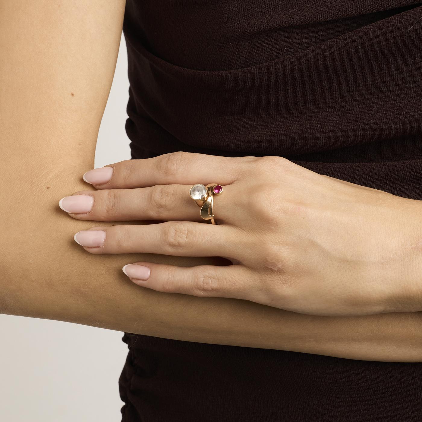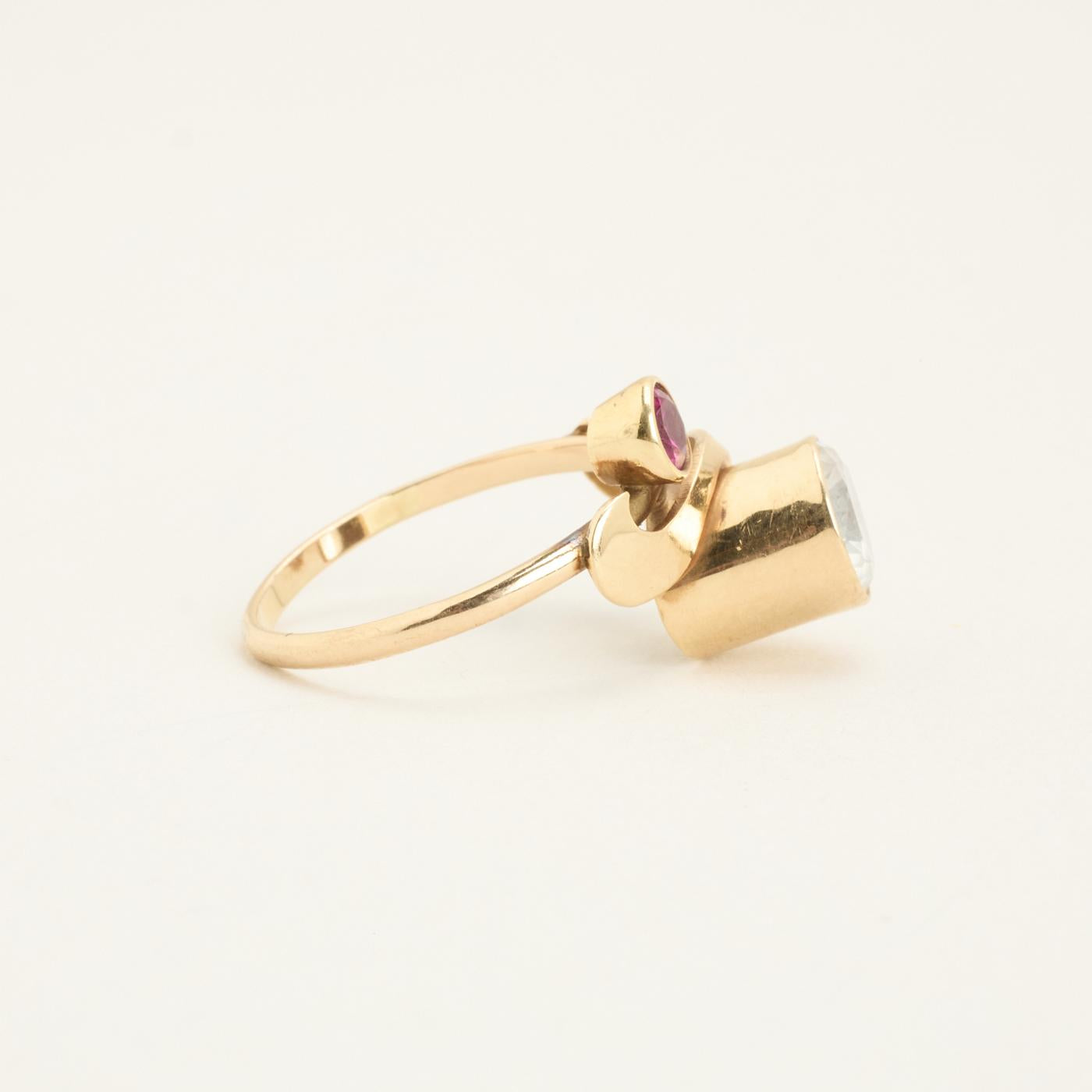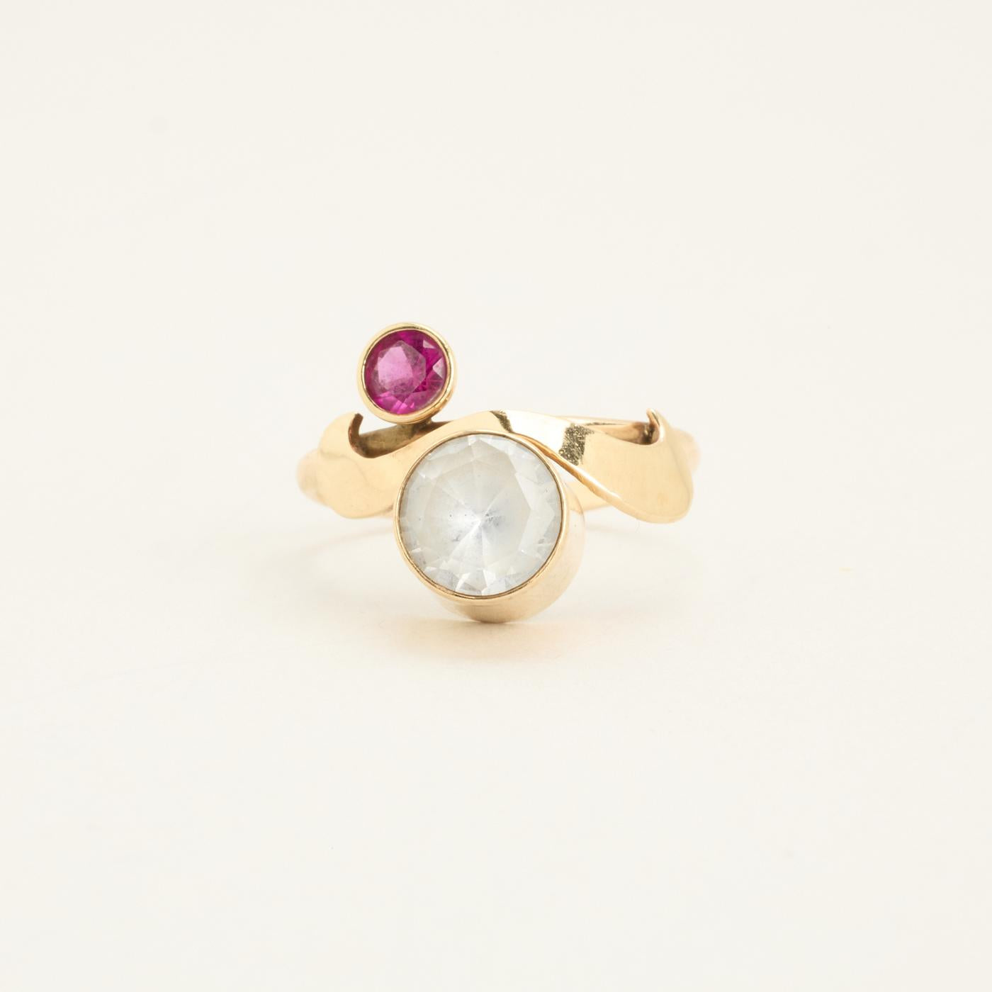 Toi et Moi ring i 14K guld med en større, farveløs sten og en mindre pink sten, Str. 55