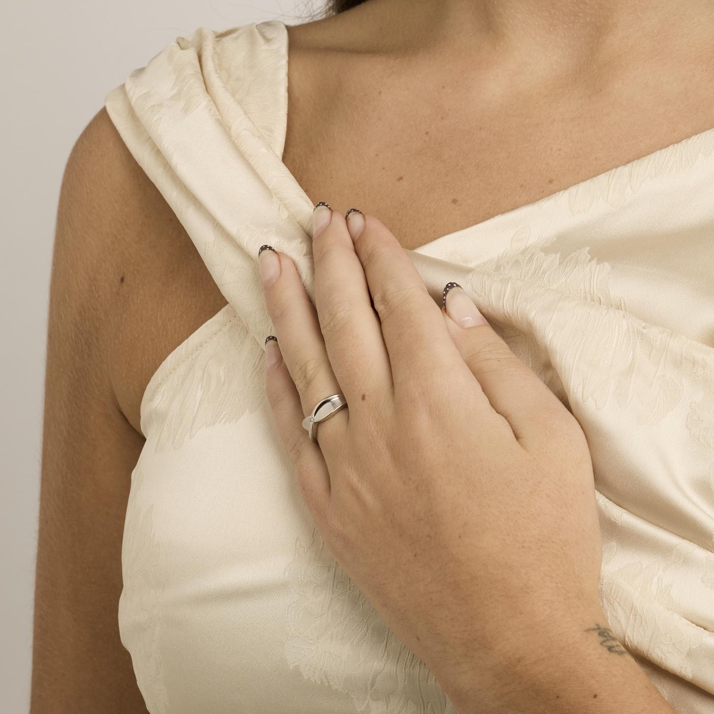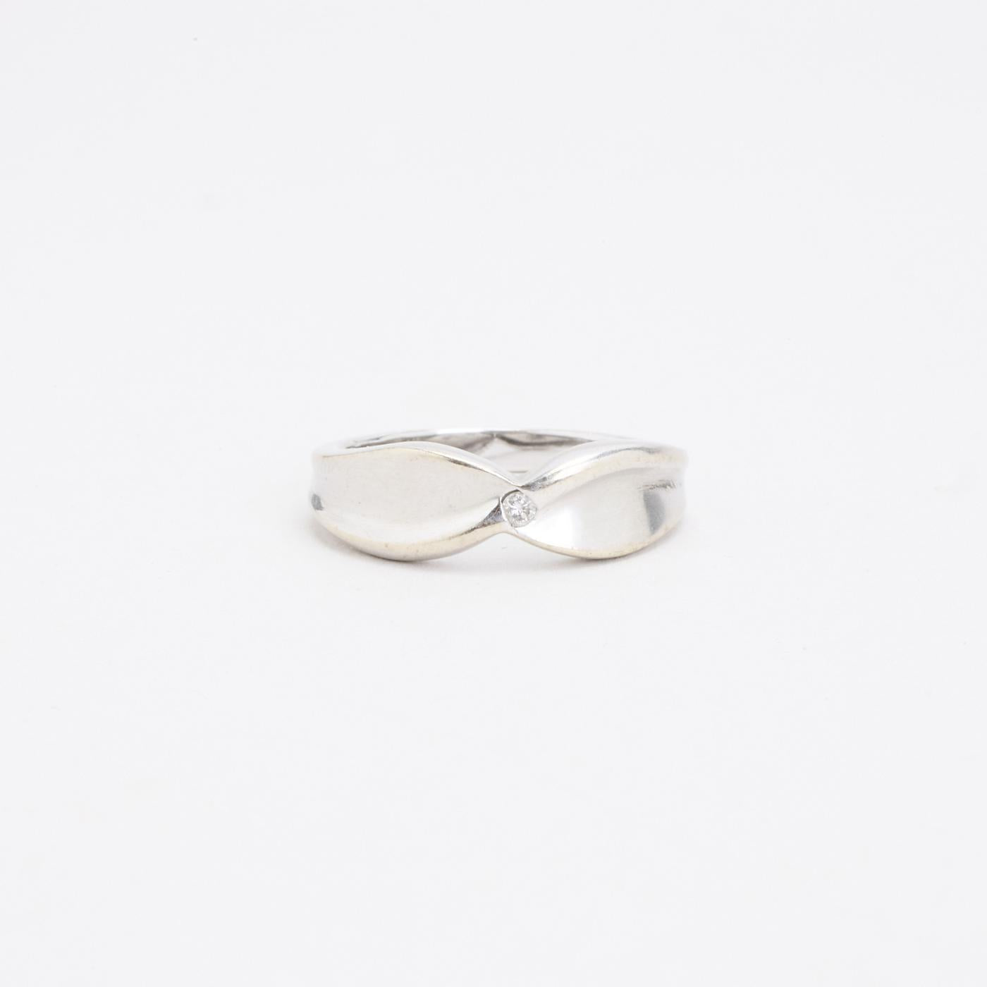 Gypsy ring i 14K hvidguld, med diamant (0,03 ct), Str. 54