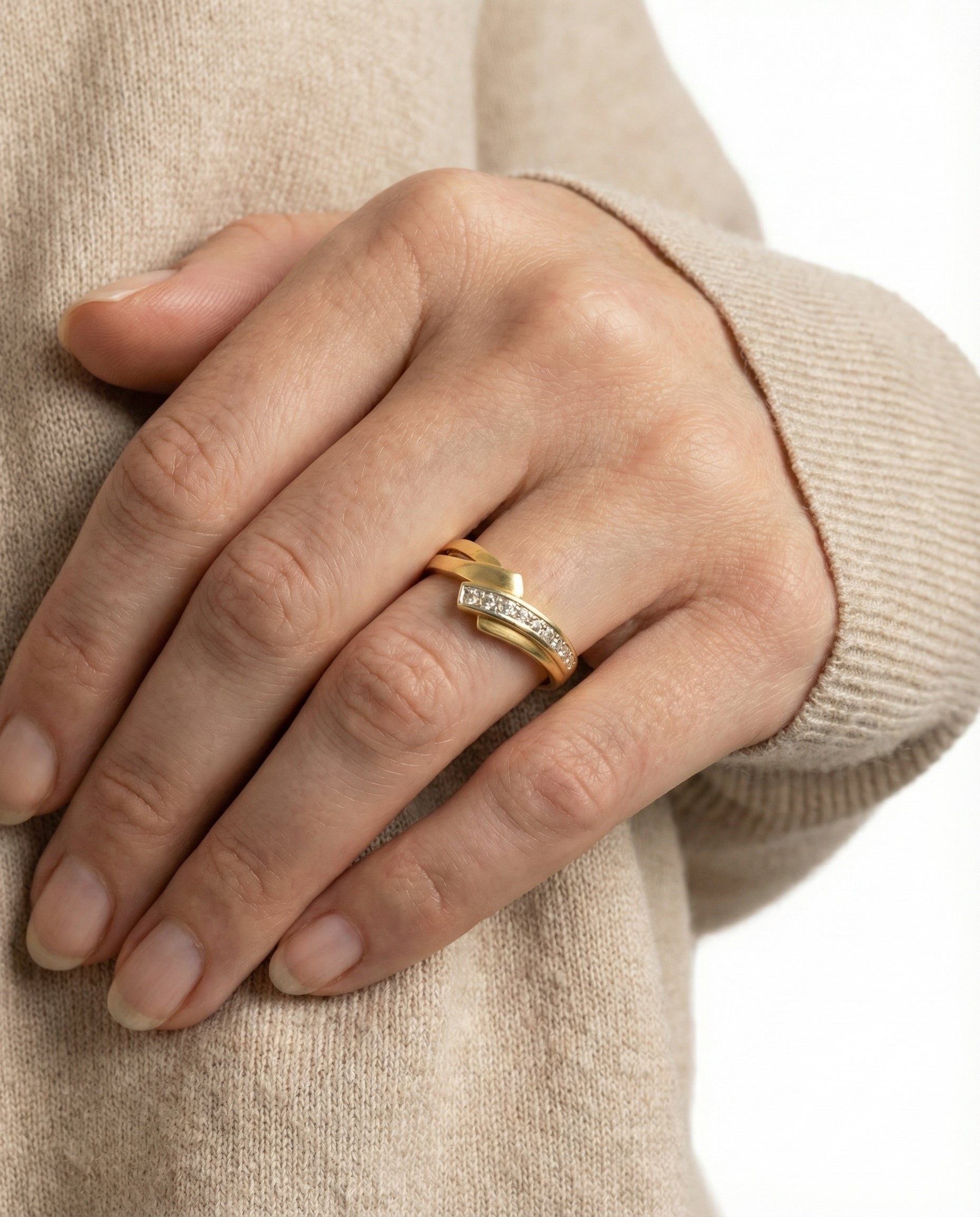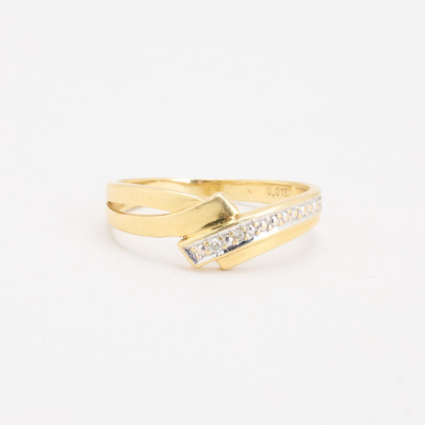 Crossoverring i 14K guld med en diamant (0.01 ct), Str. 52
