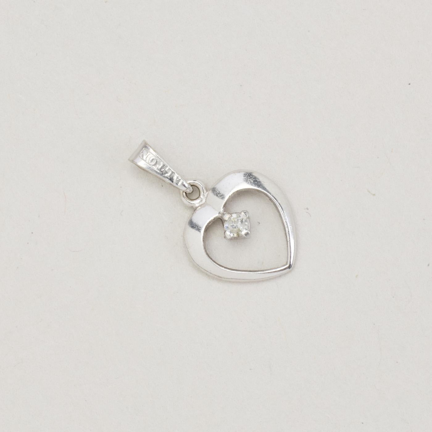 Hjerte vedhæng med diamant (0.03 ct) i 18 karat, 1.5 cm