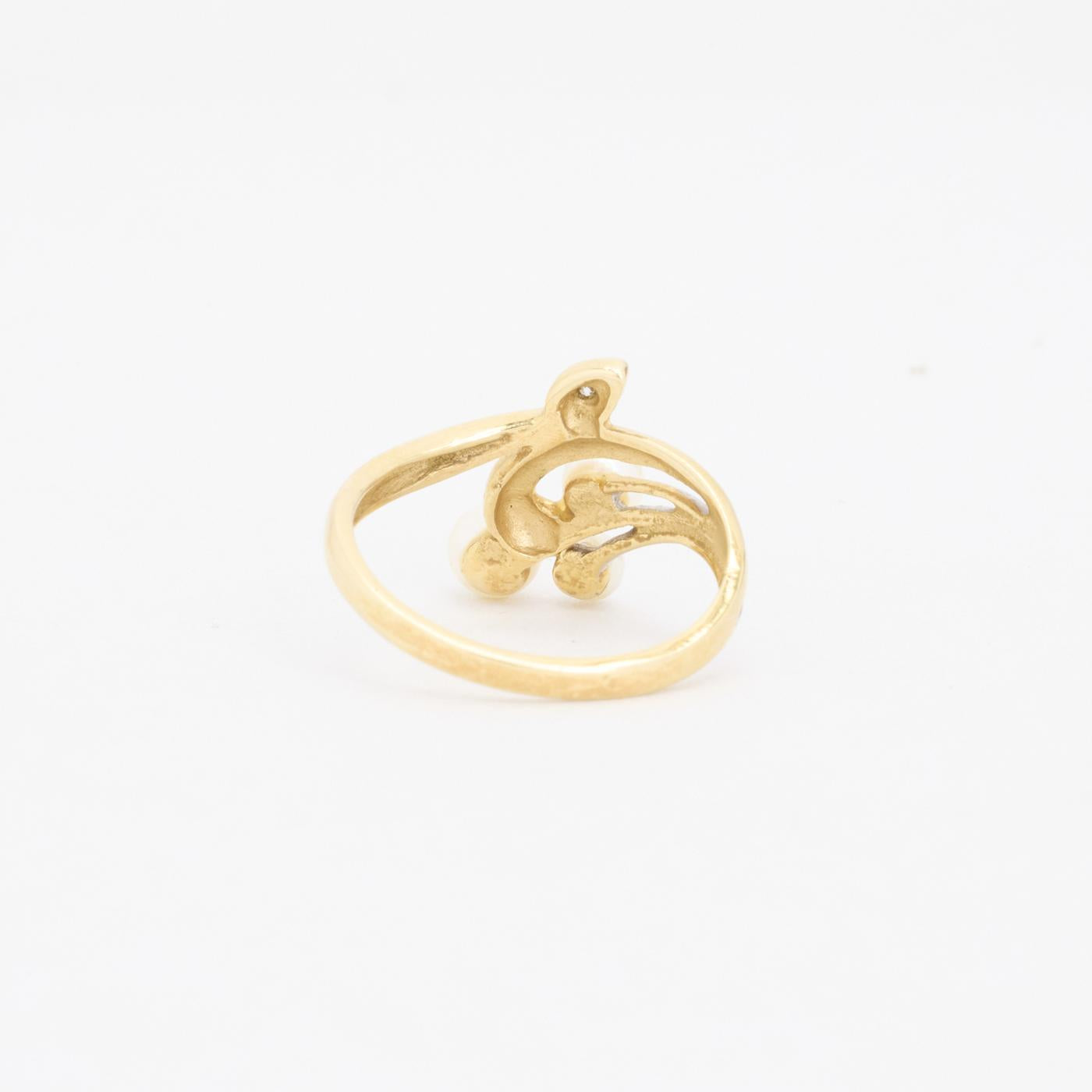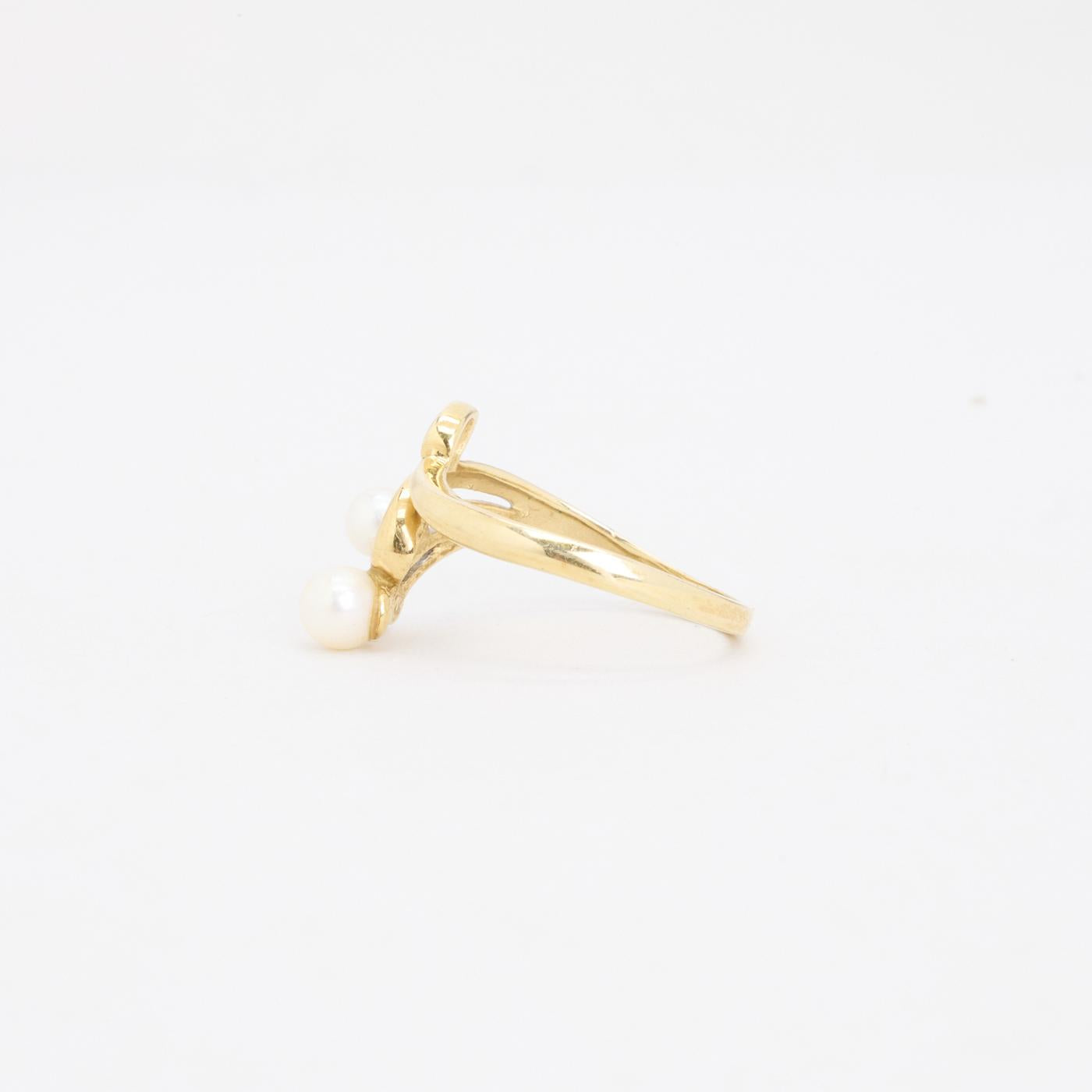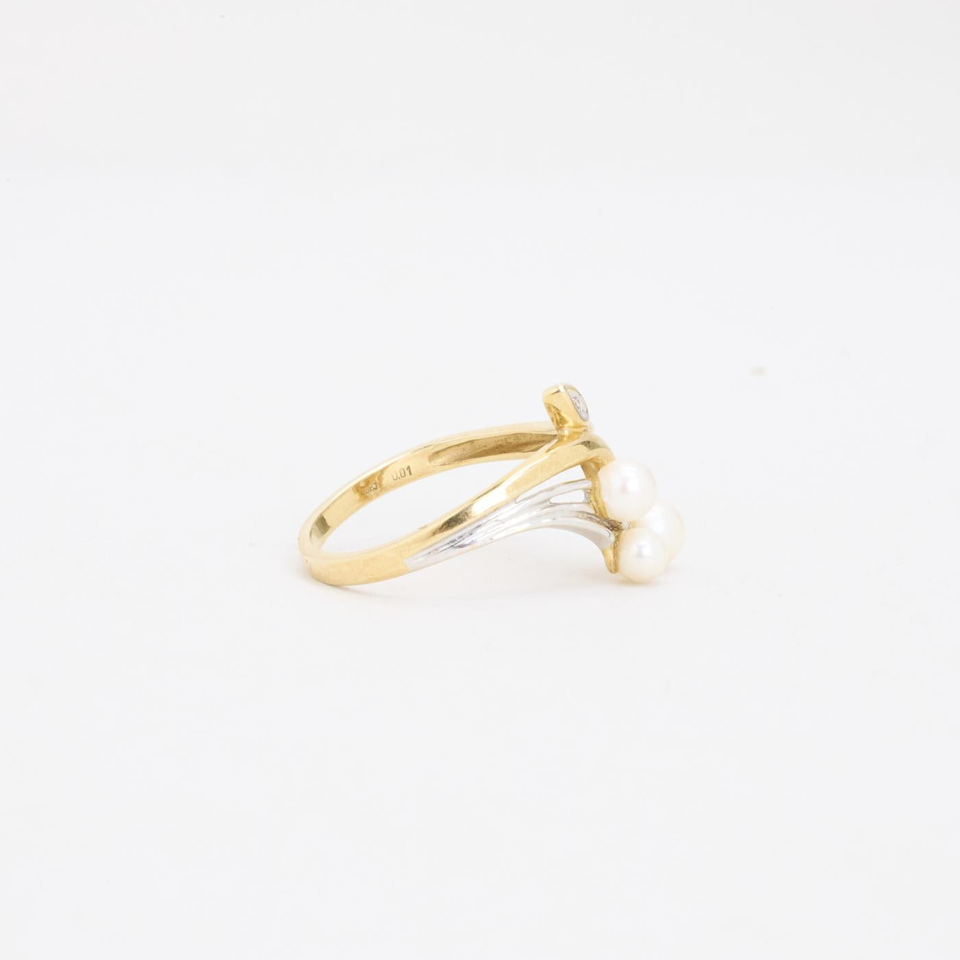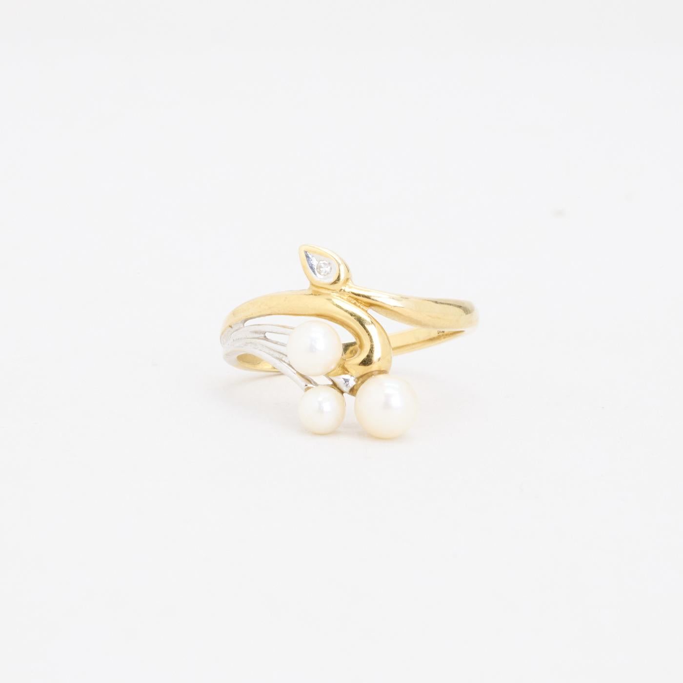 Crossoverring i 14K guld og hvidguld, med diamant (0,01 ct) og perler, Str. 55