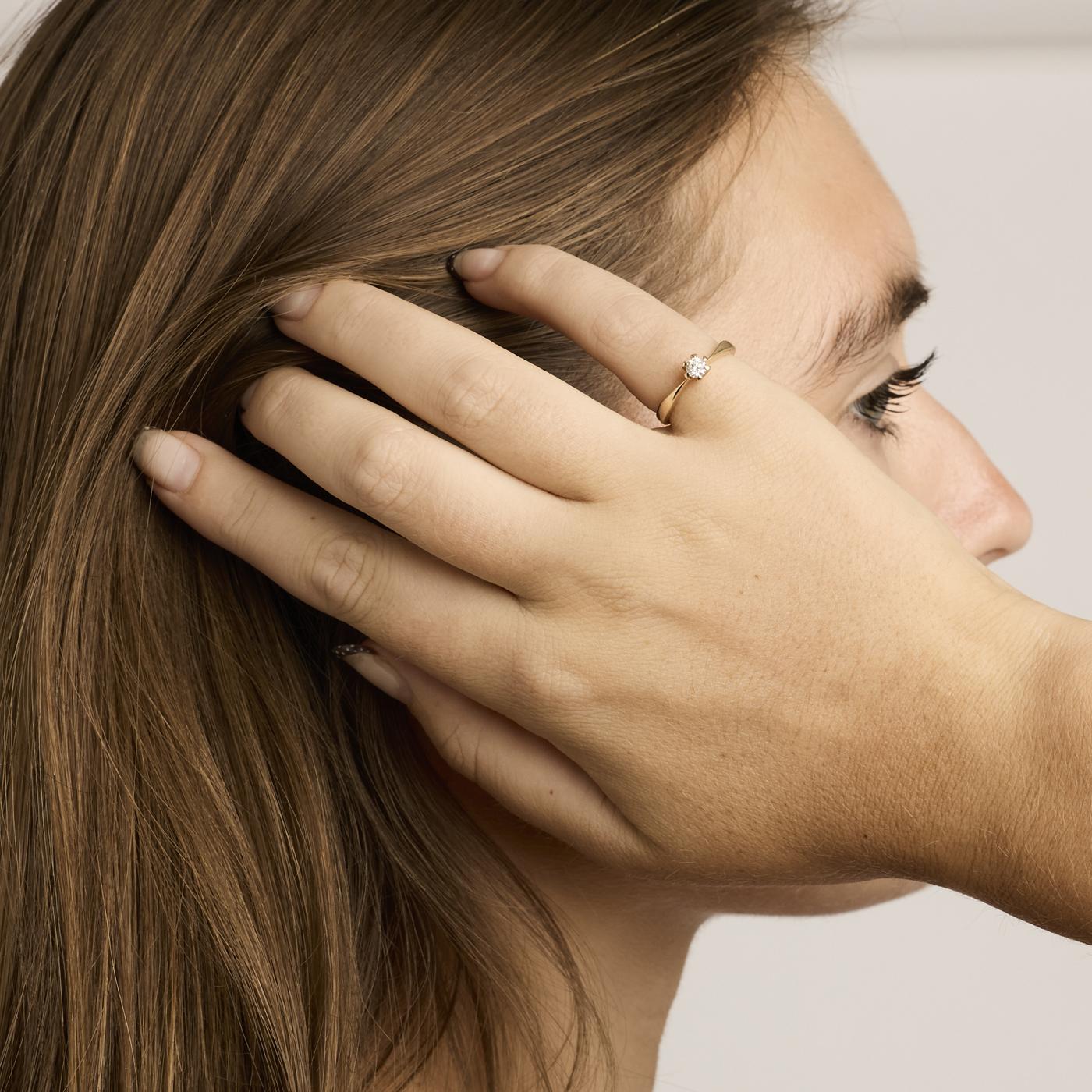 Solitairering i 14K guld med diamant (0,21 ct), Str. 49