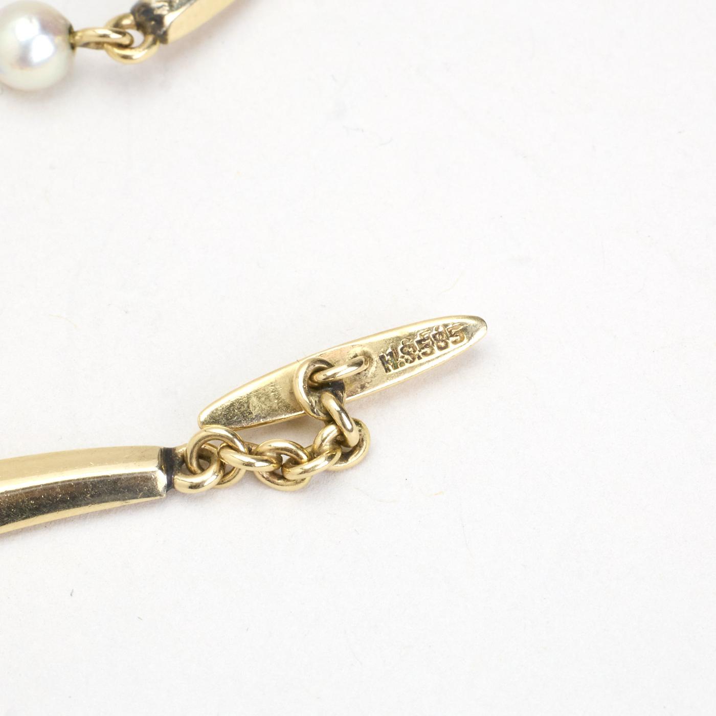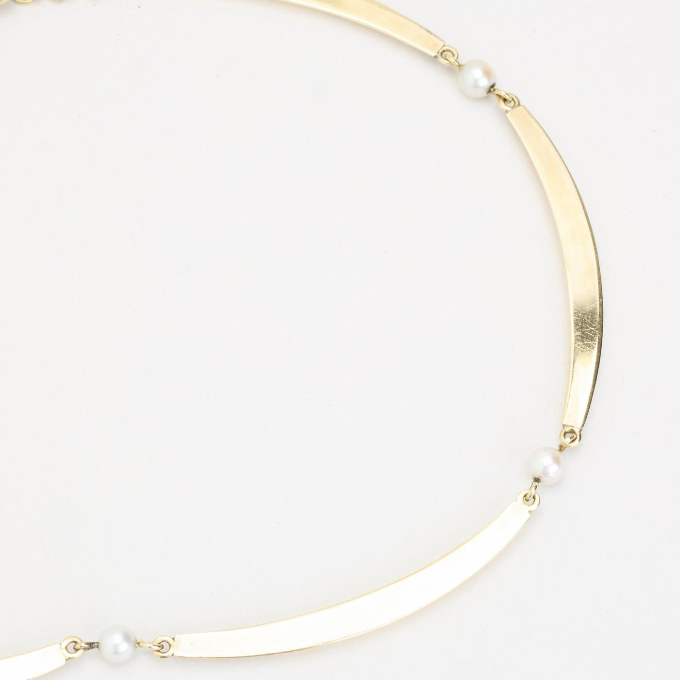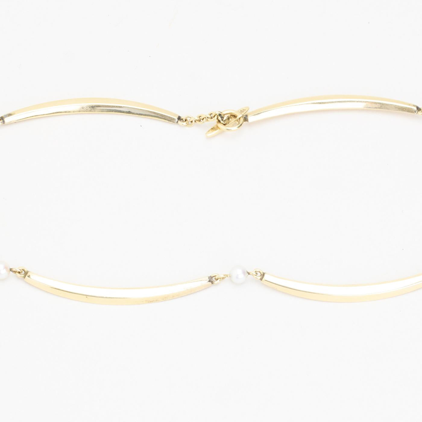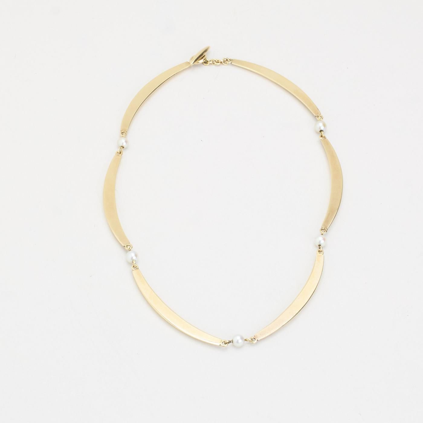 Herman Seiersbøl halskæde i 14K guld med fem hvide perler, 39 cm
