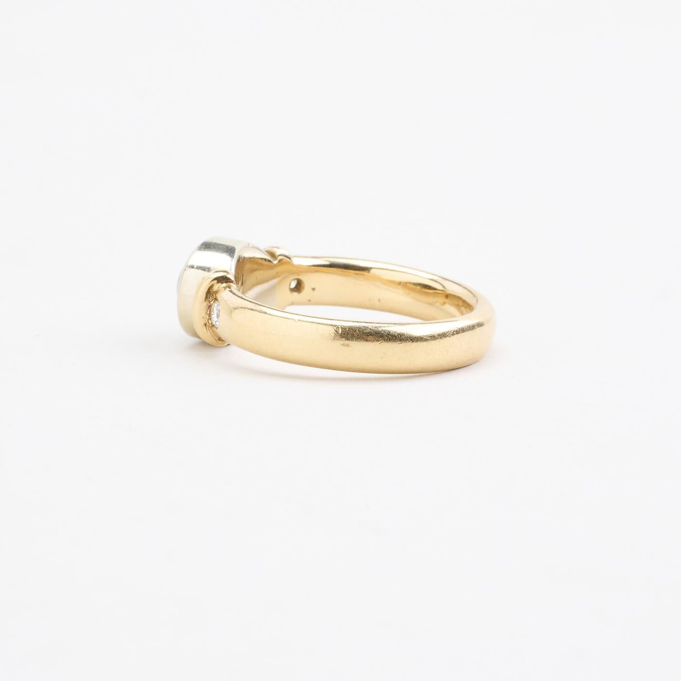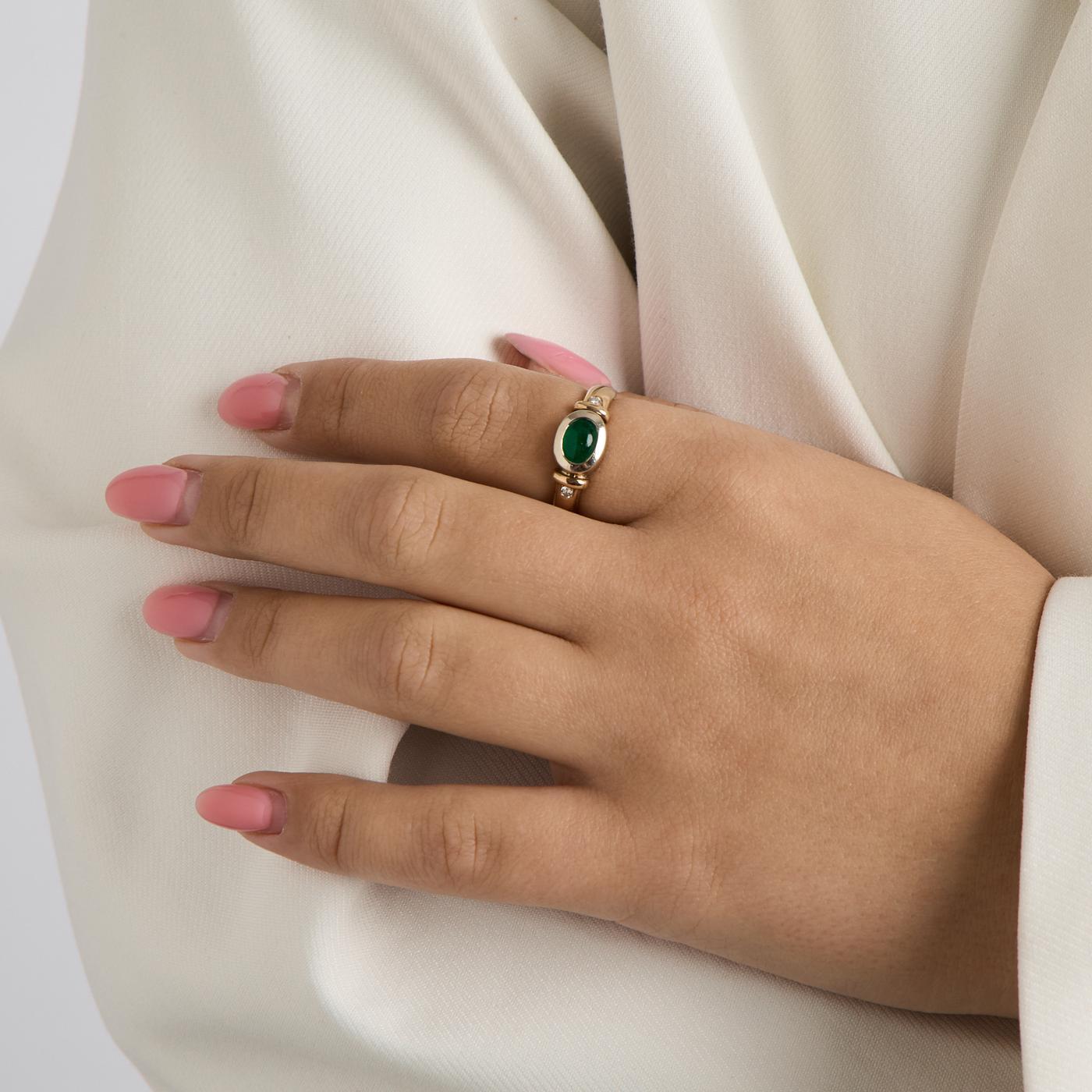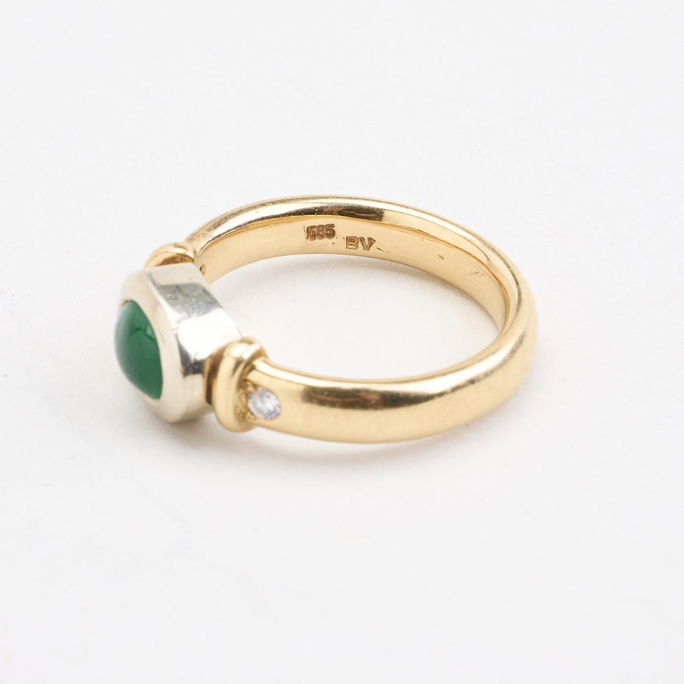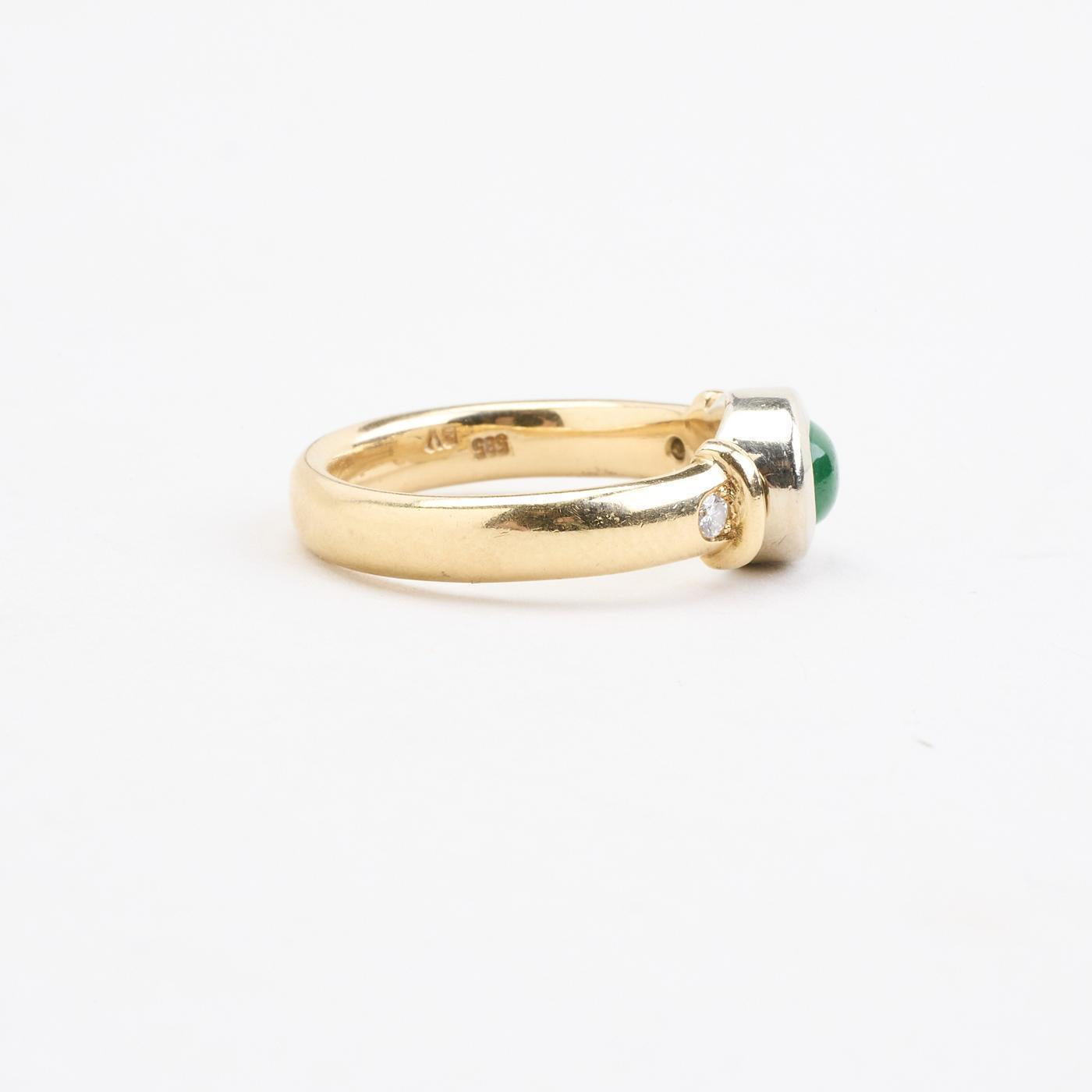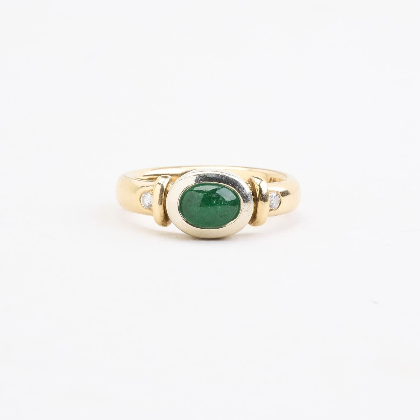 Statement ring i 14K guld og hvidguld med grønne sten og hvide sten (0.06 ct), Str. 54