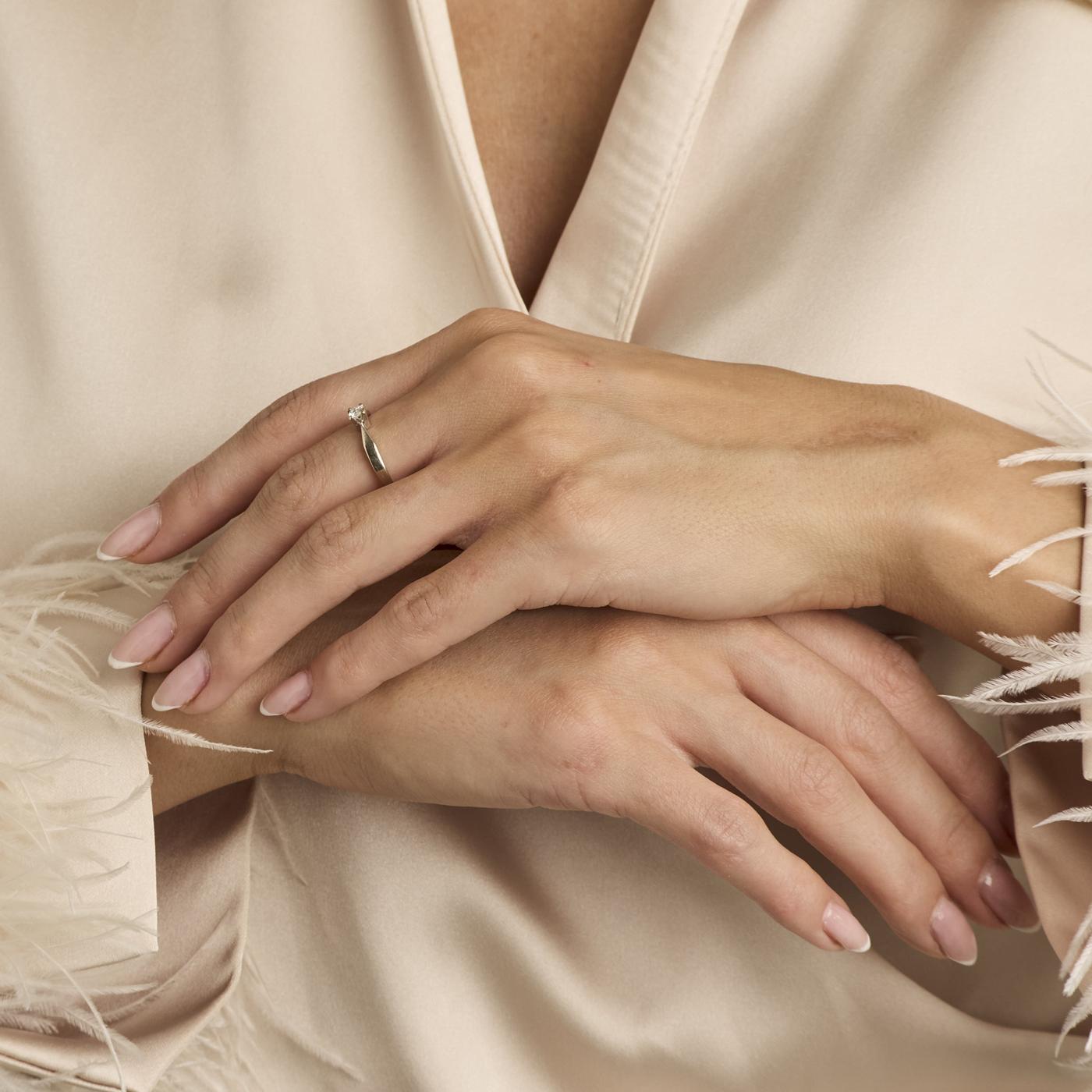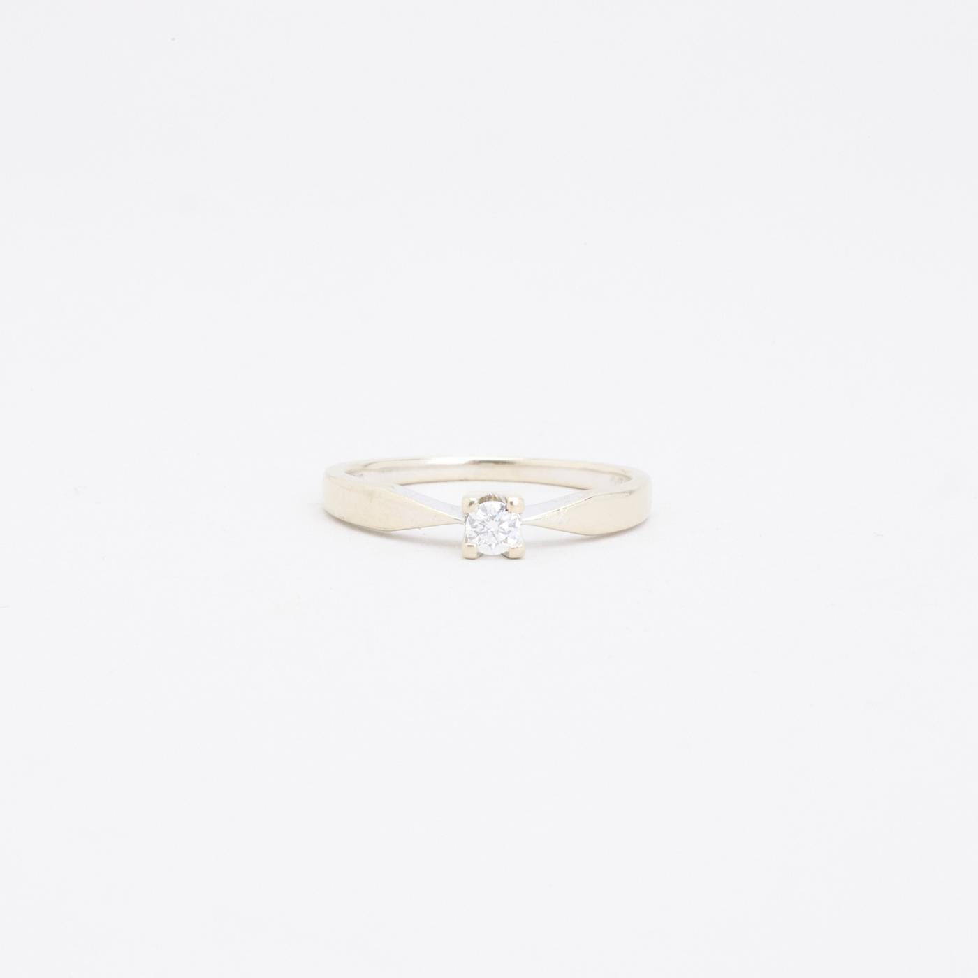 Solitairering i 14K hvidguld, med en diamant (0.11 ct), Str. 51