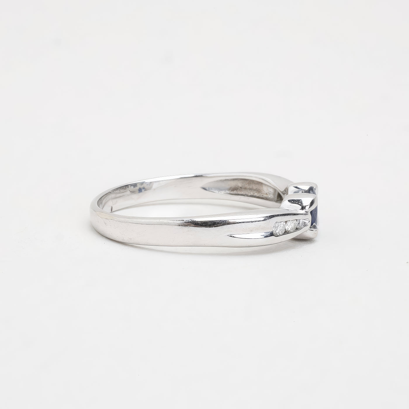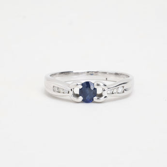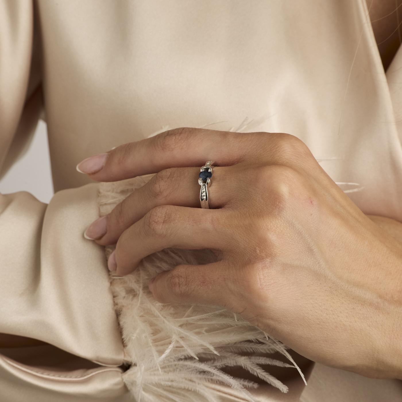 Solitairering i 18K hvidguld, med en blå topas og diamanter (0,02 ct), Str. 60