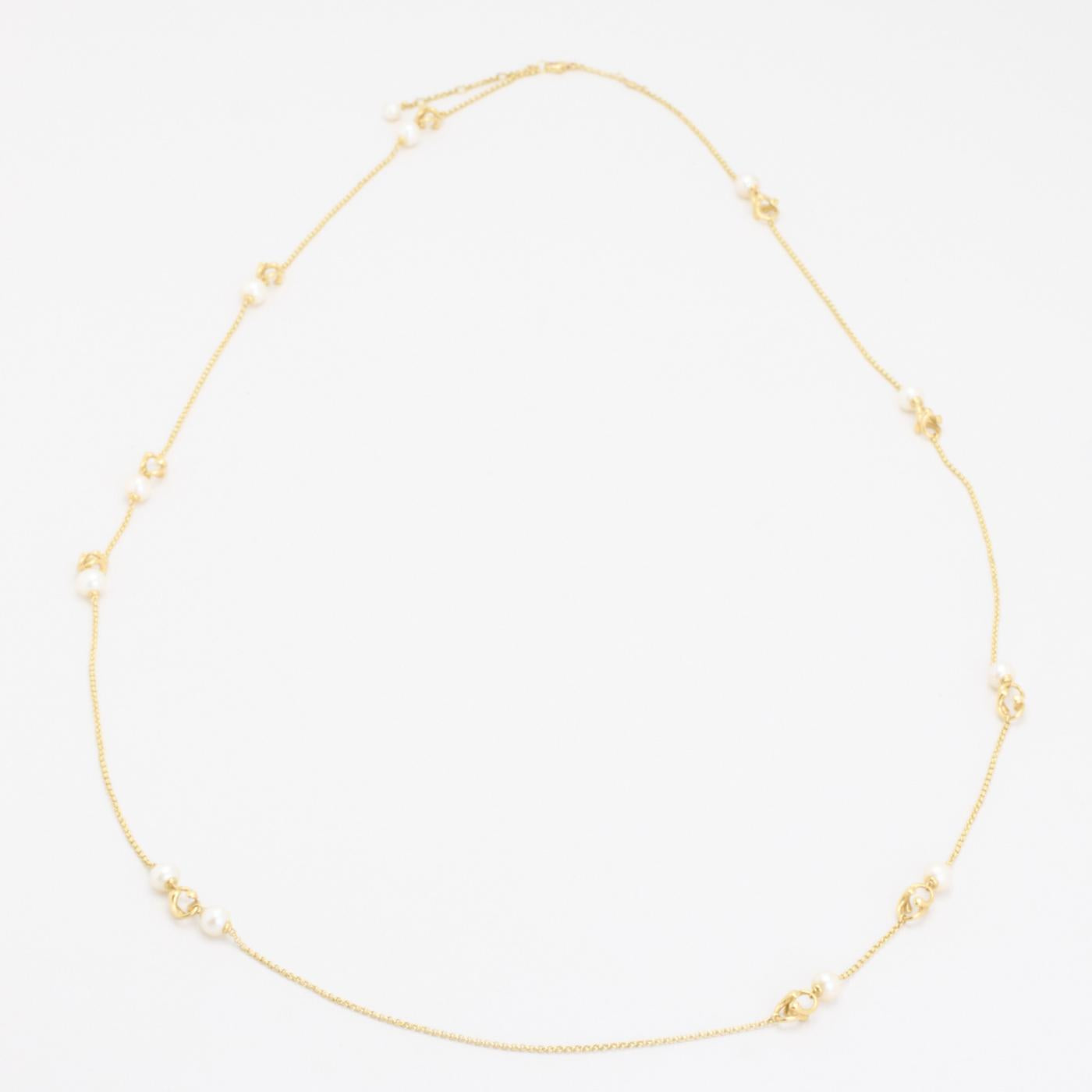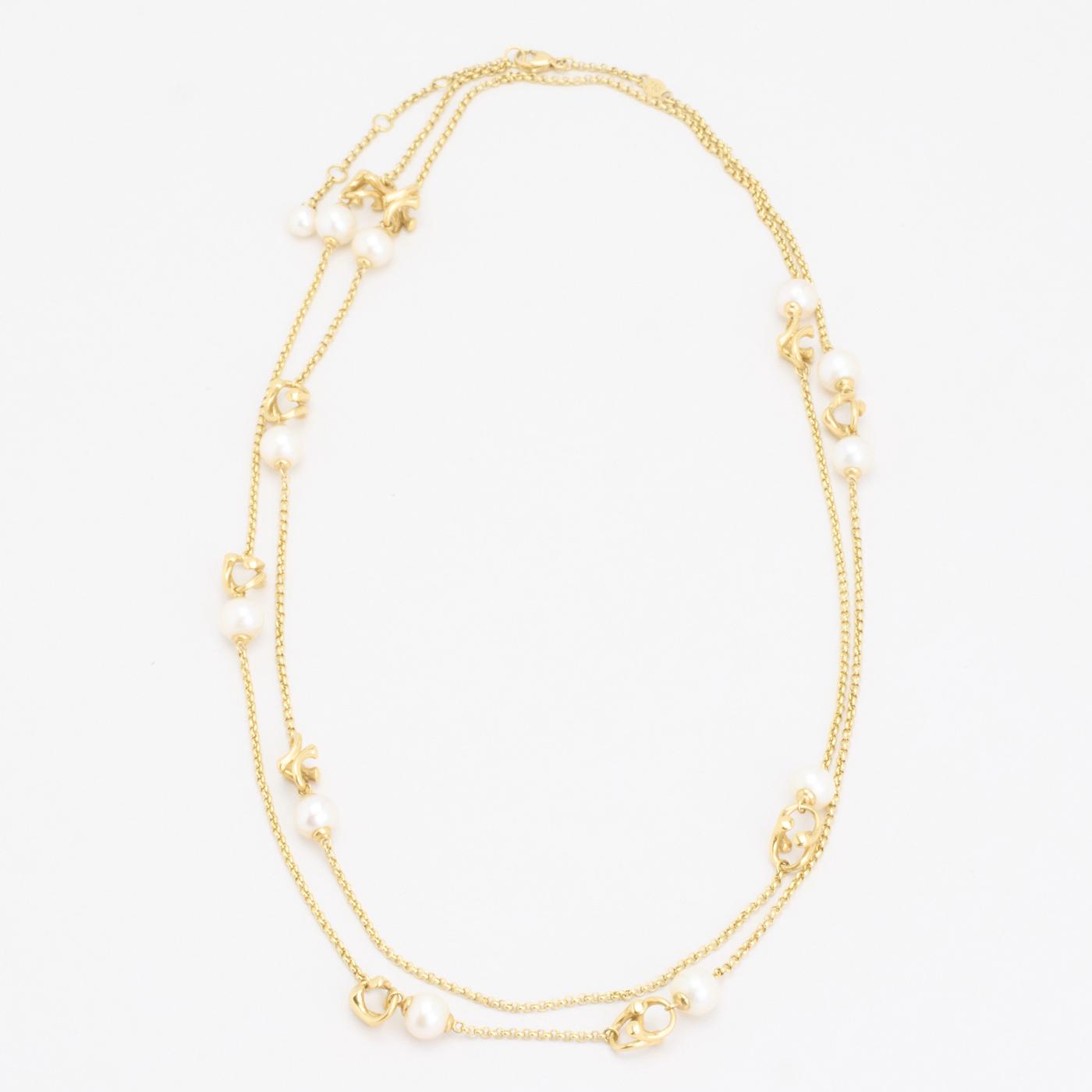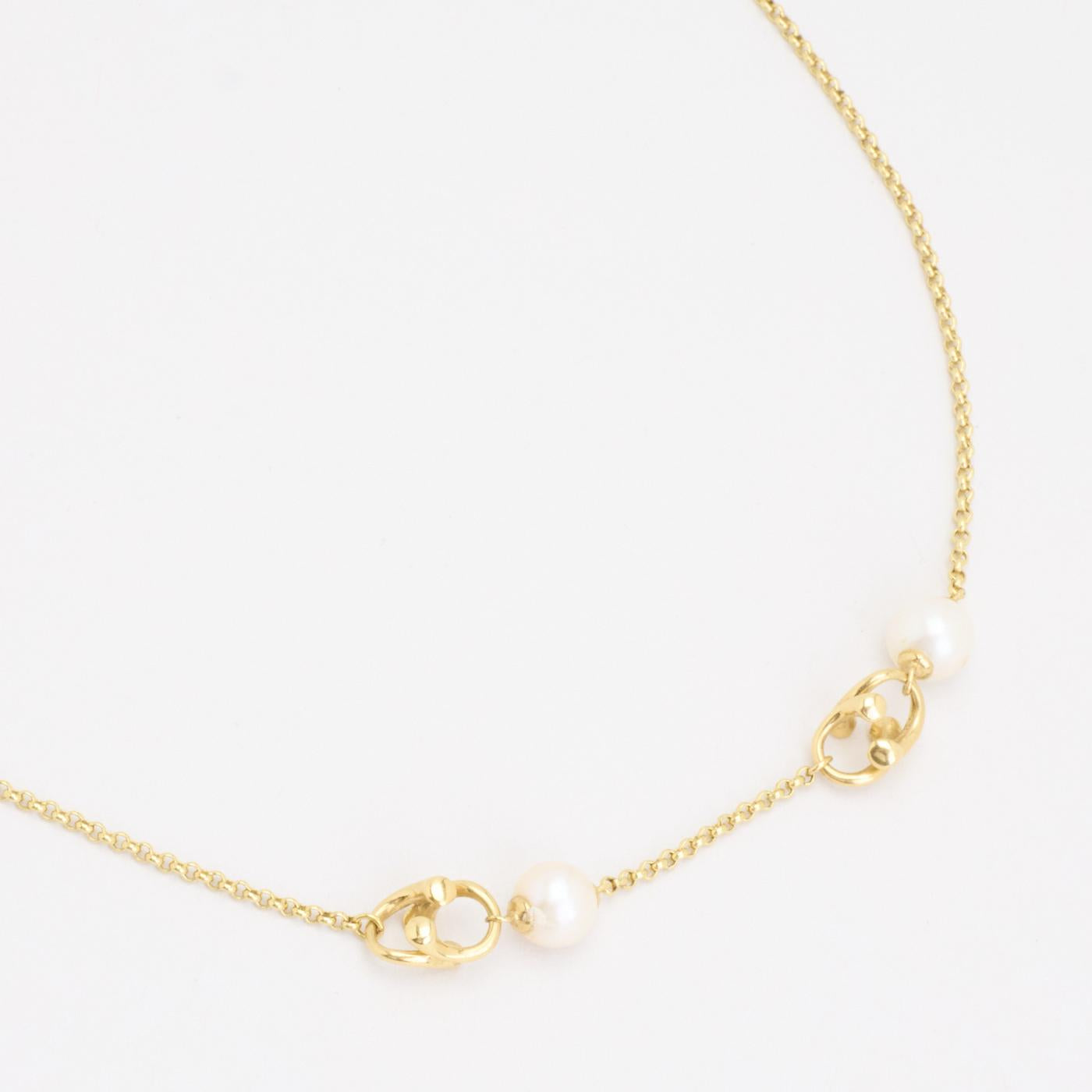 Georg Jensen ankerkæde halskæde i 18K guld med flere hvide perler, 104 cm, karabinhage