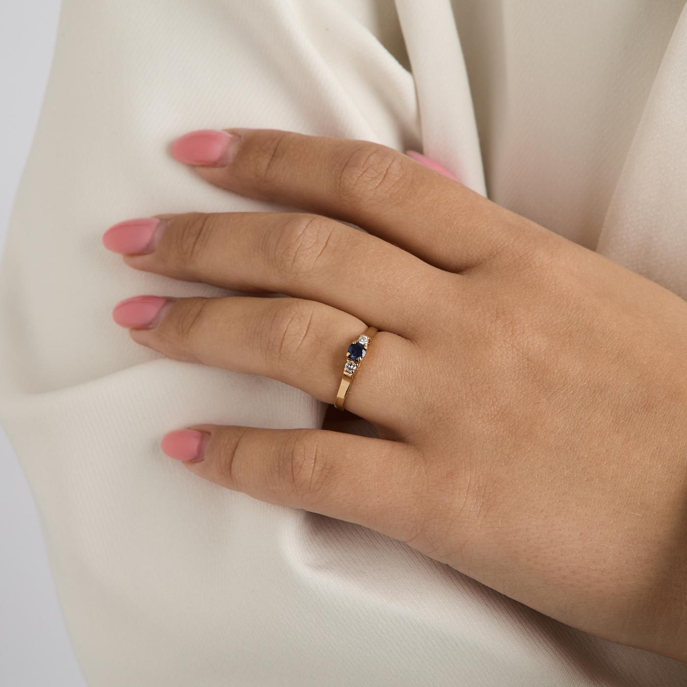 Trestensring med diamant (0.01 ct) i 14 karat str. 53