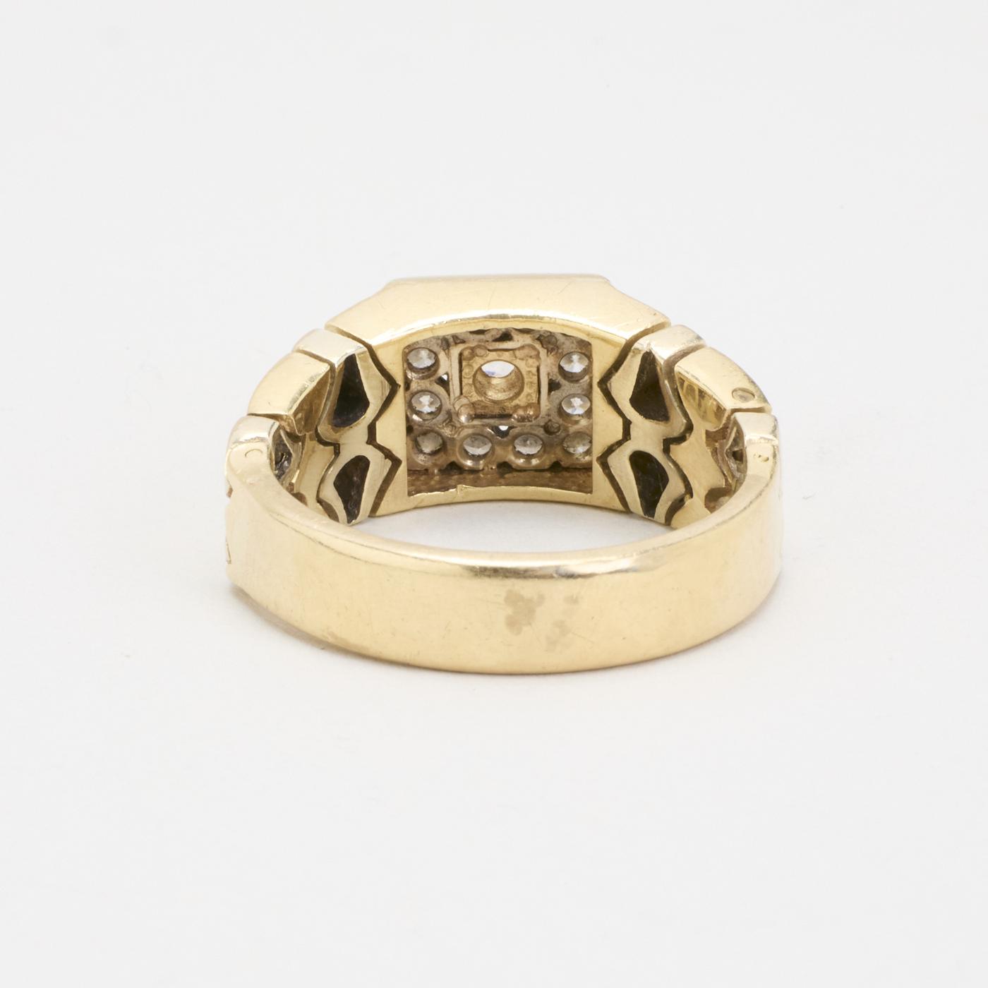Signetring i 14K guld og hvidguld med turmaliner og syntetiske spineller, Str. 71