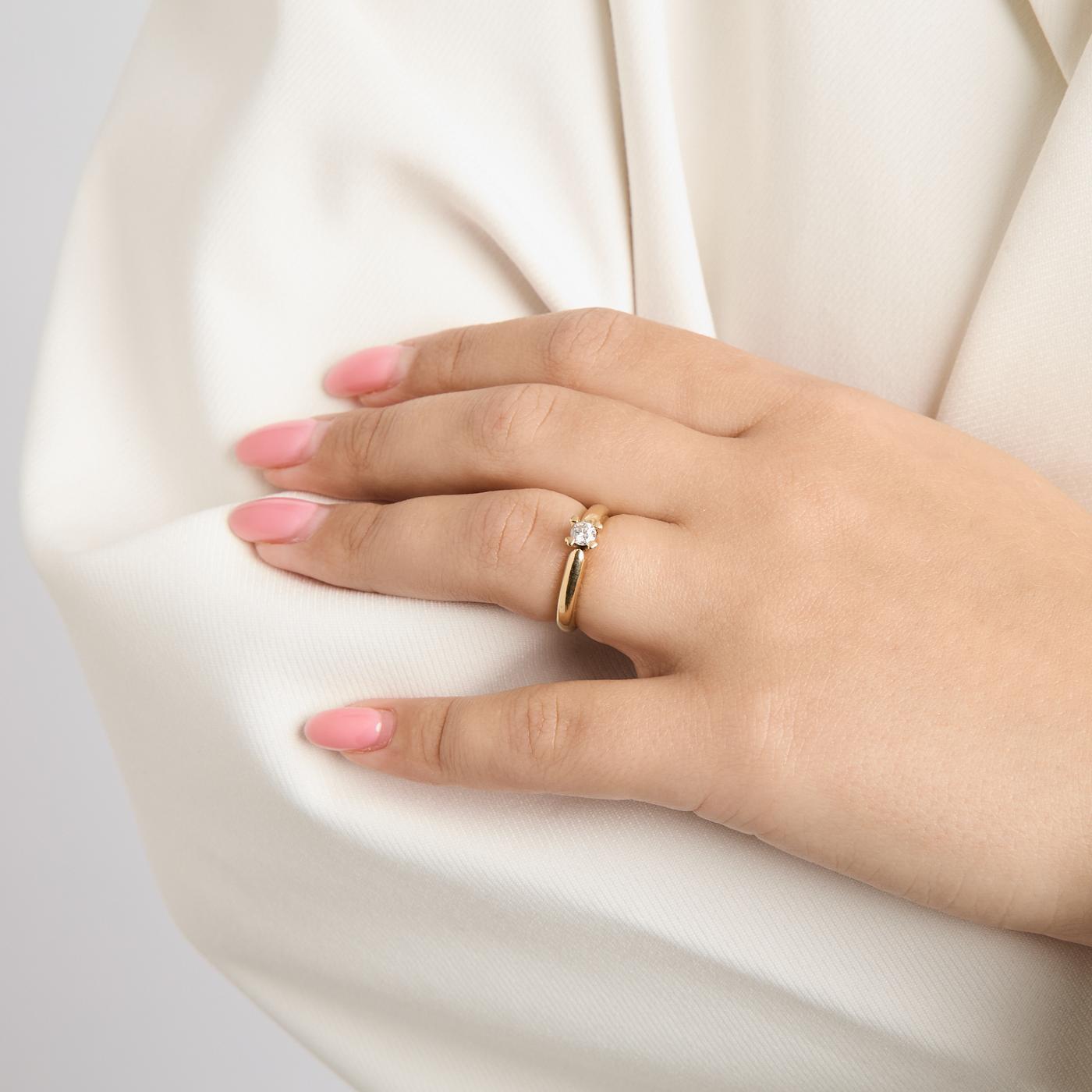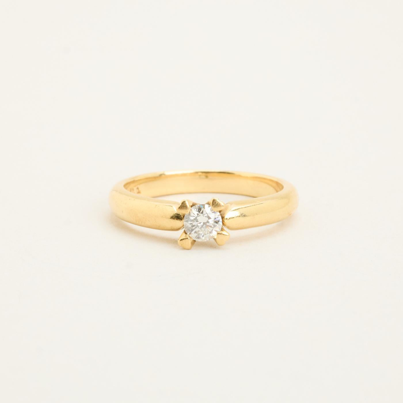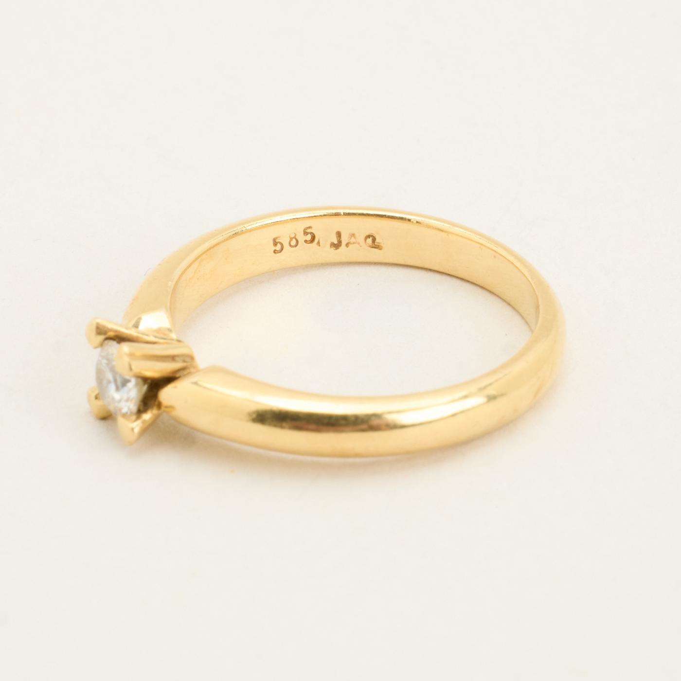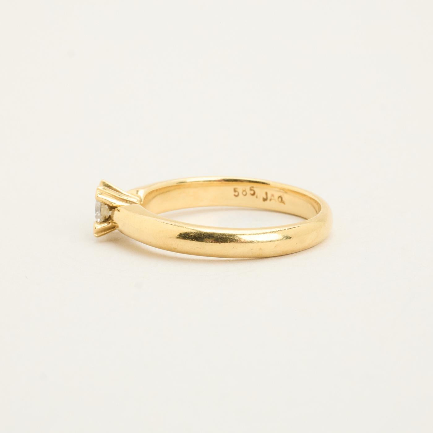 Solitairering i 14K guld med diamanter (0,21 ct), Str. 51