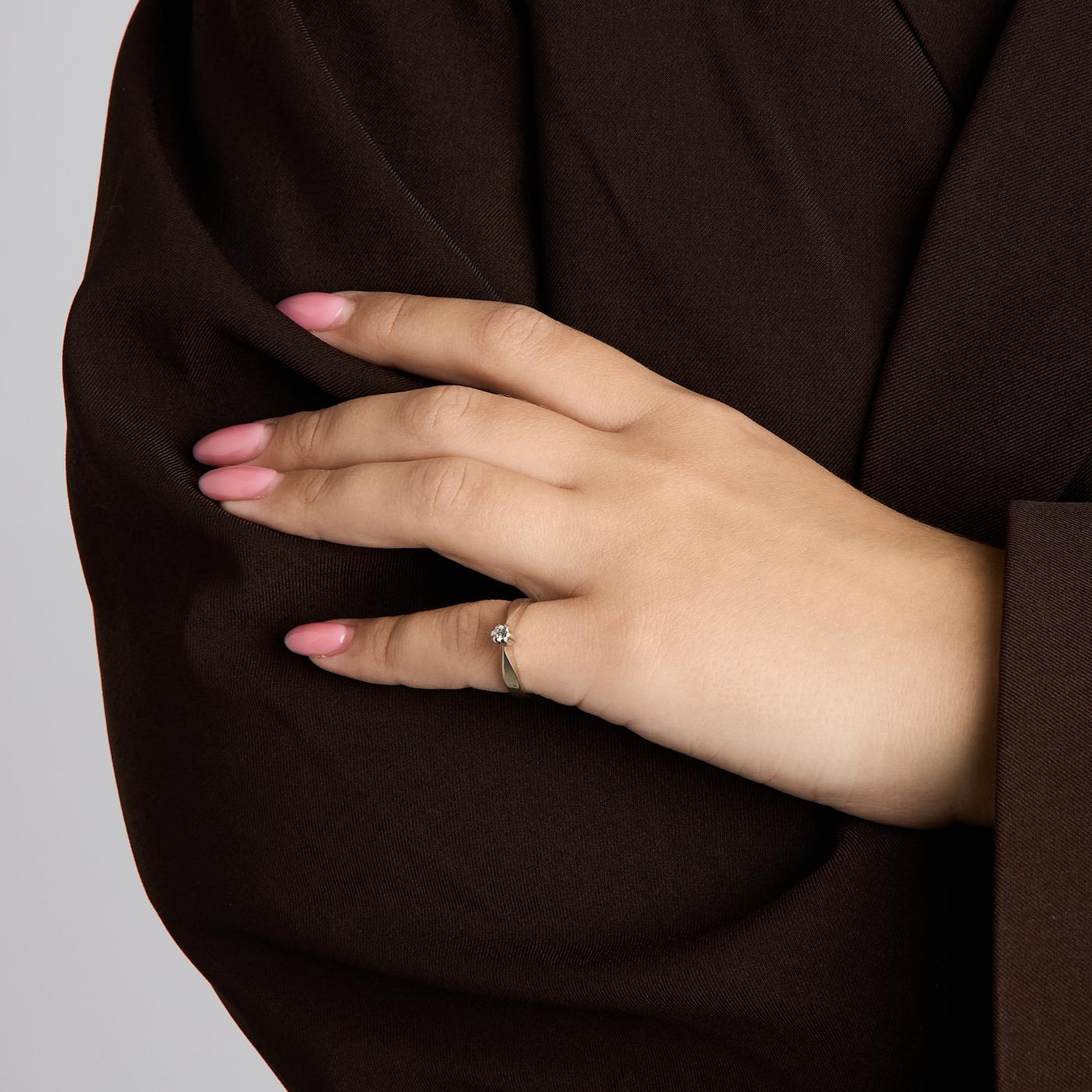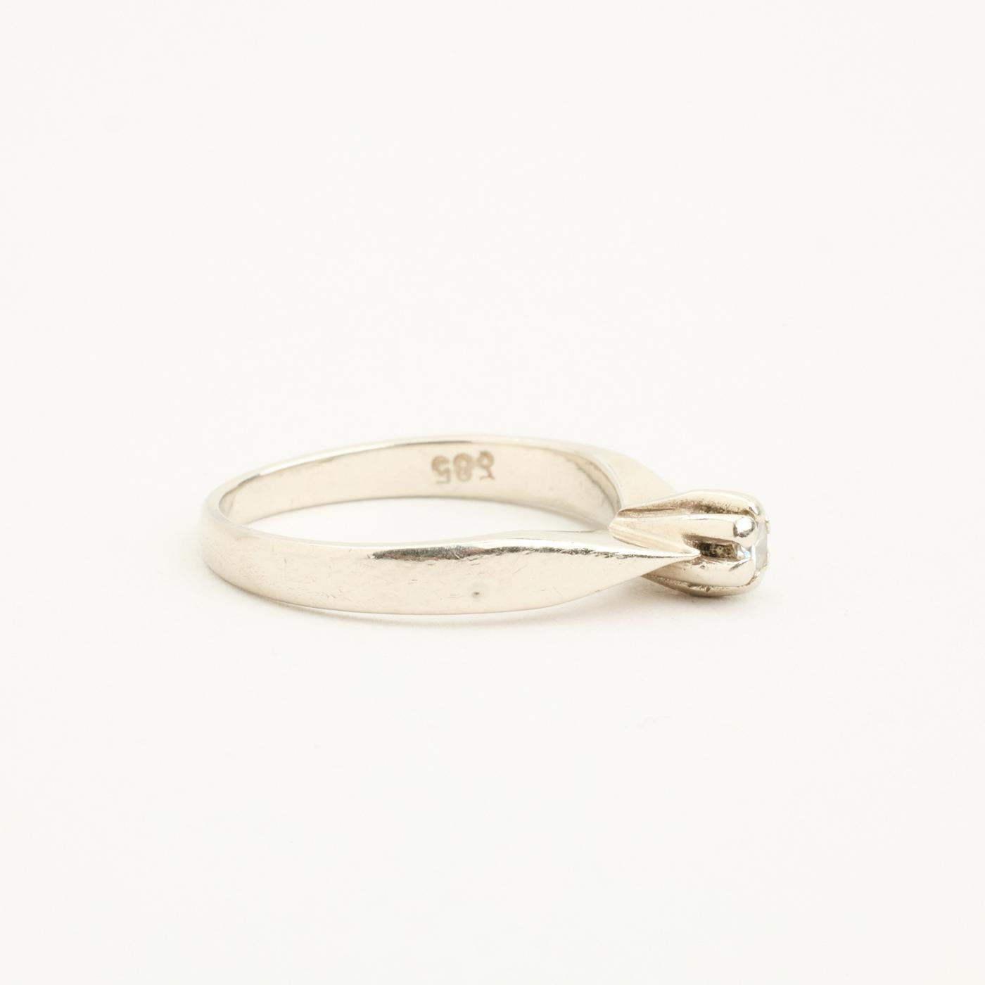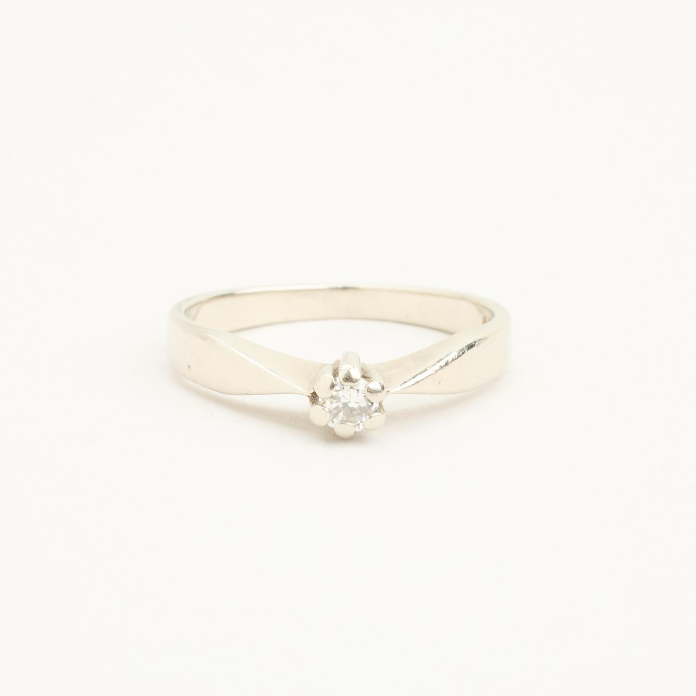 Solitairering i 14K hvidguld med diamant (0,09 ct), Str. 51