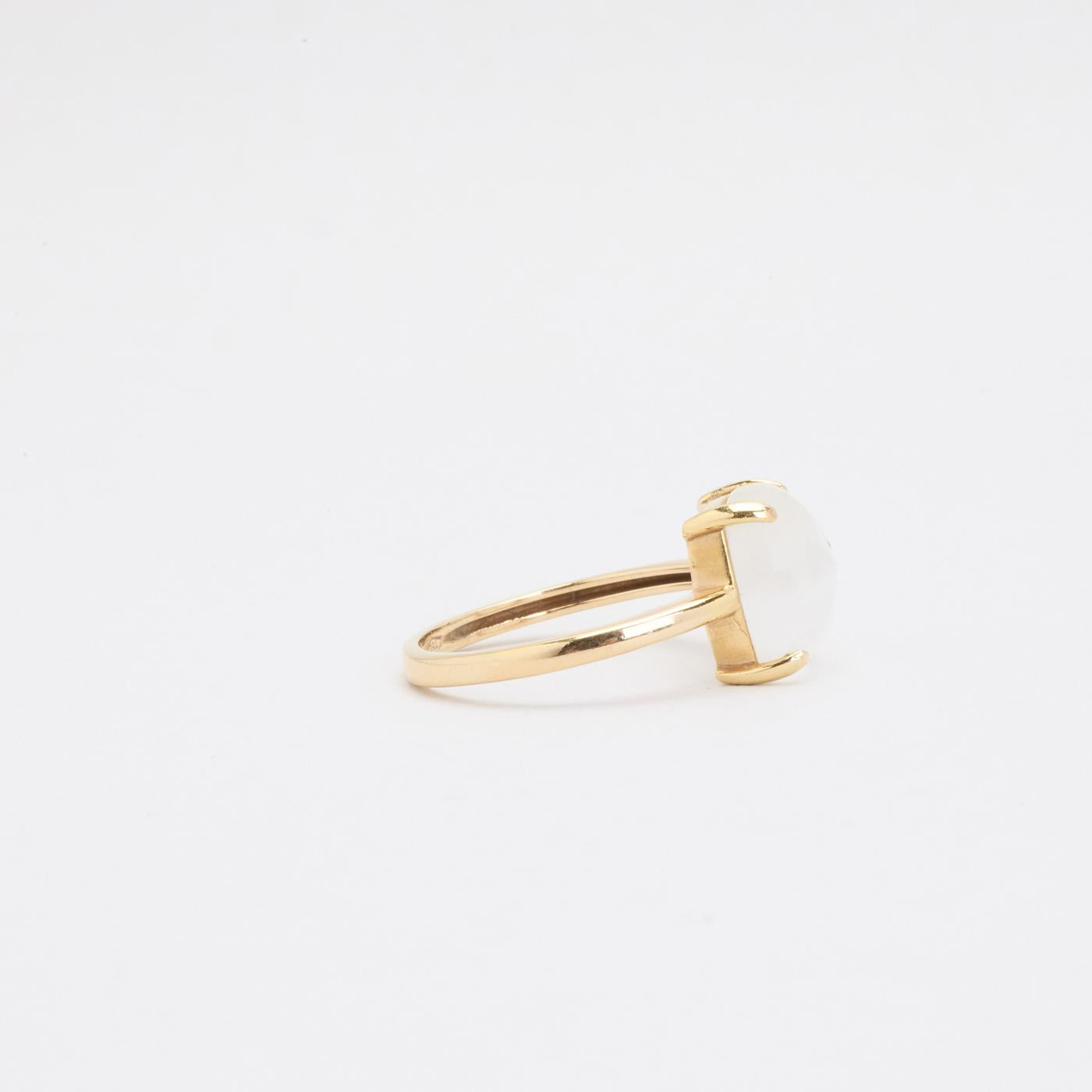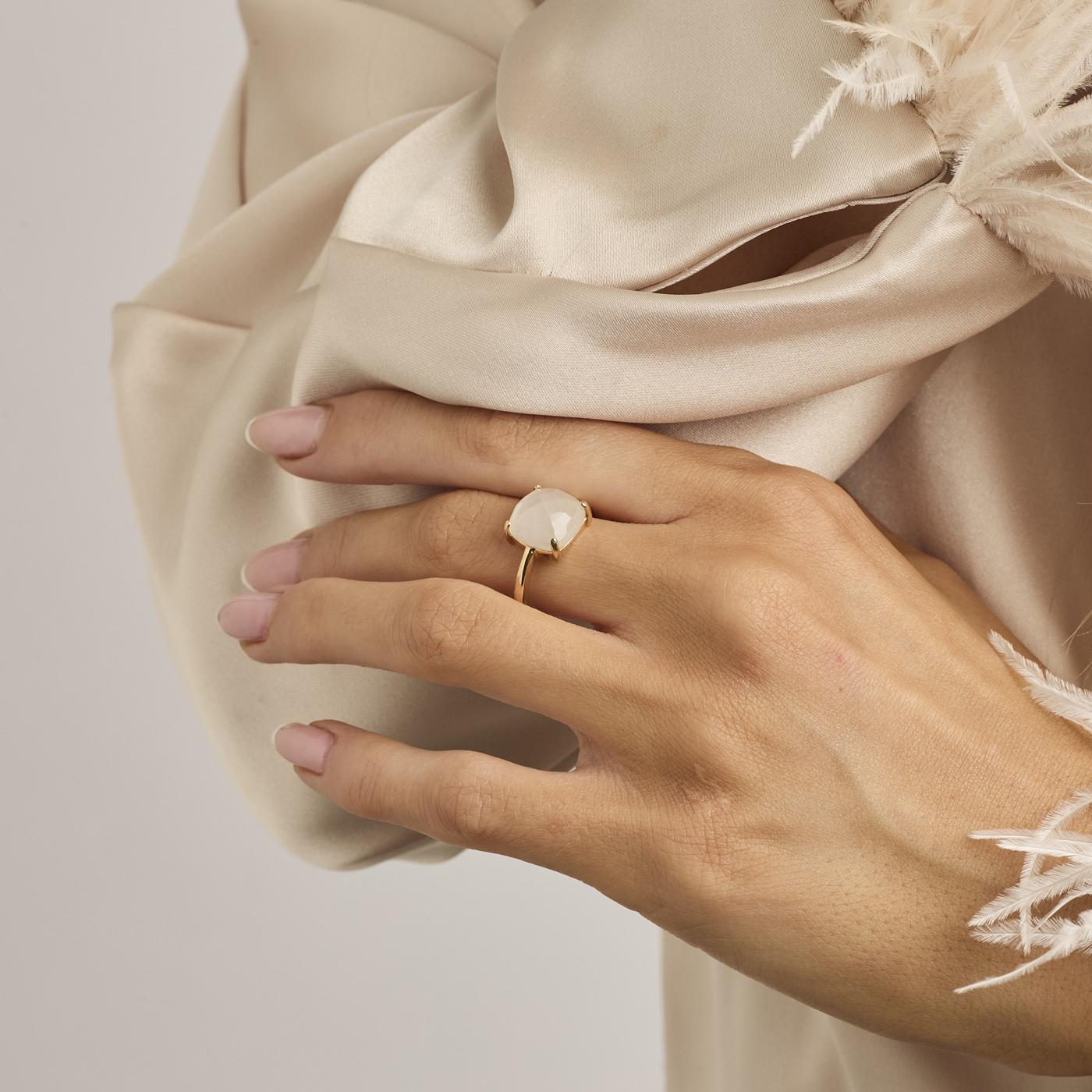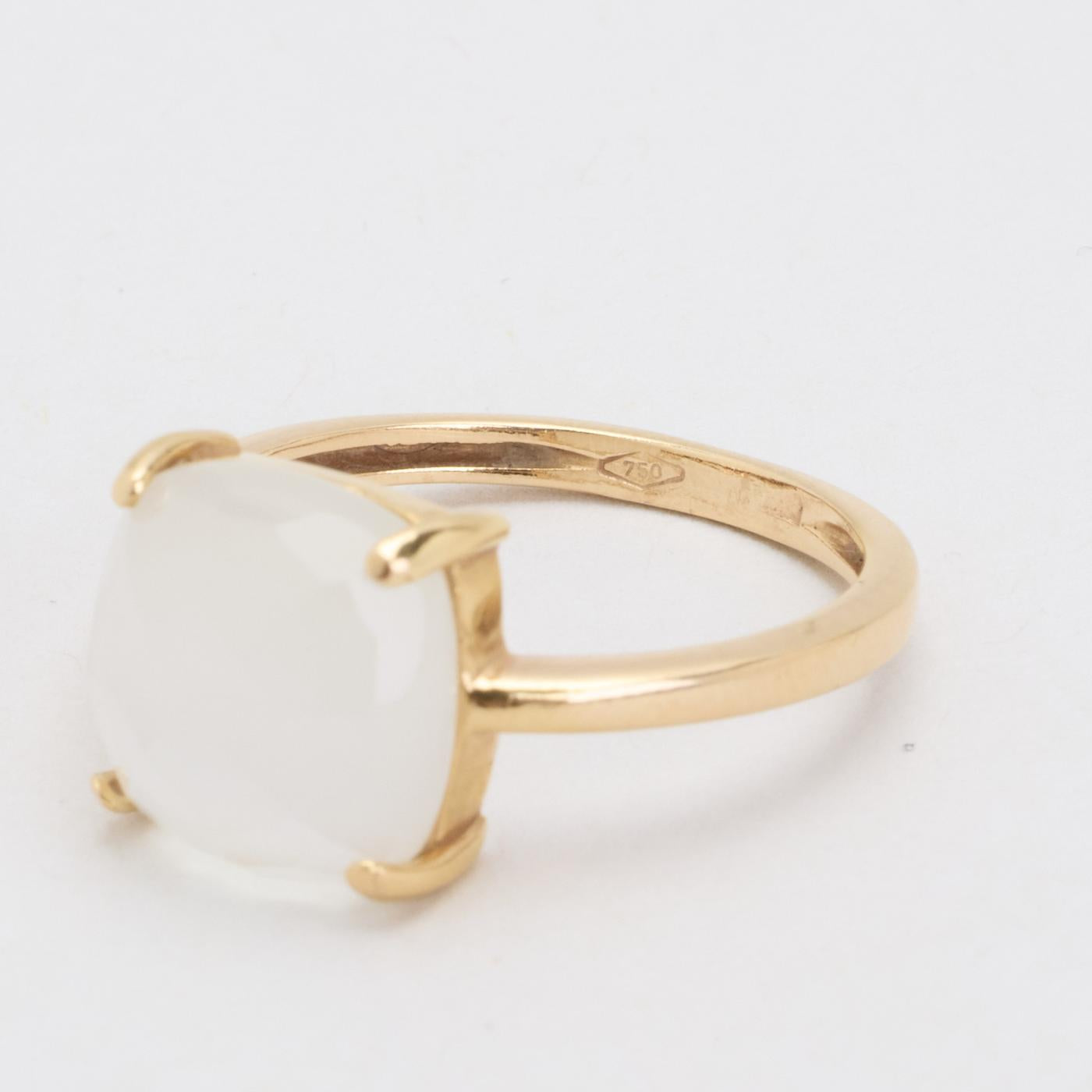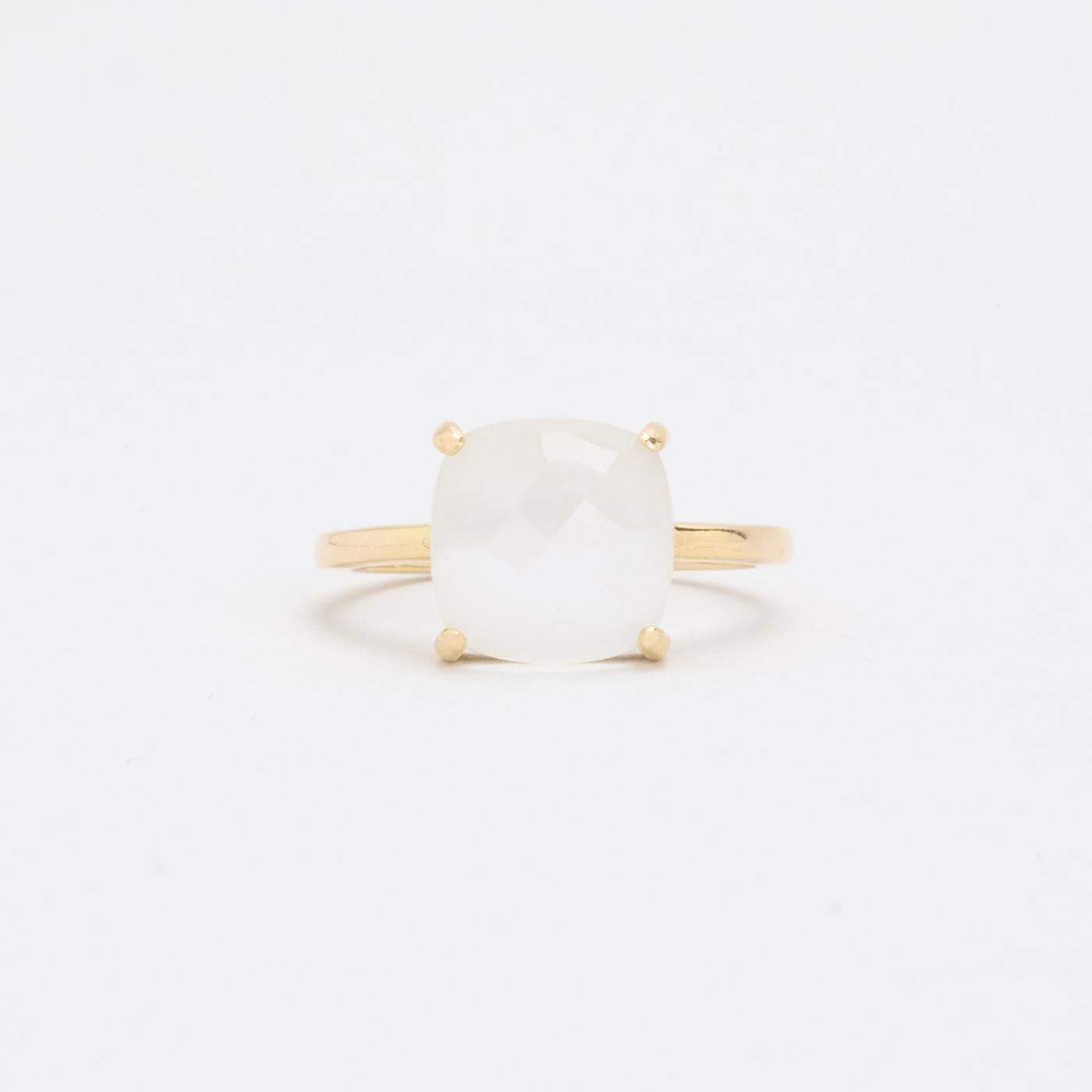 Solitairering i 18K guld med en gennemsigtig hvid sten i pudeformet checkerboard-slibning, Str. 54