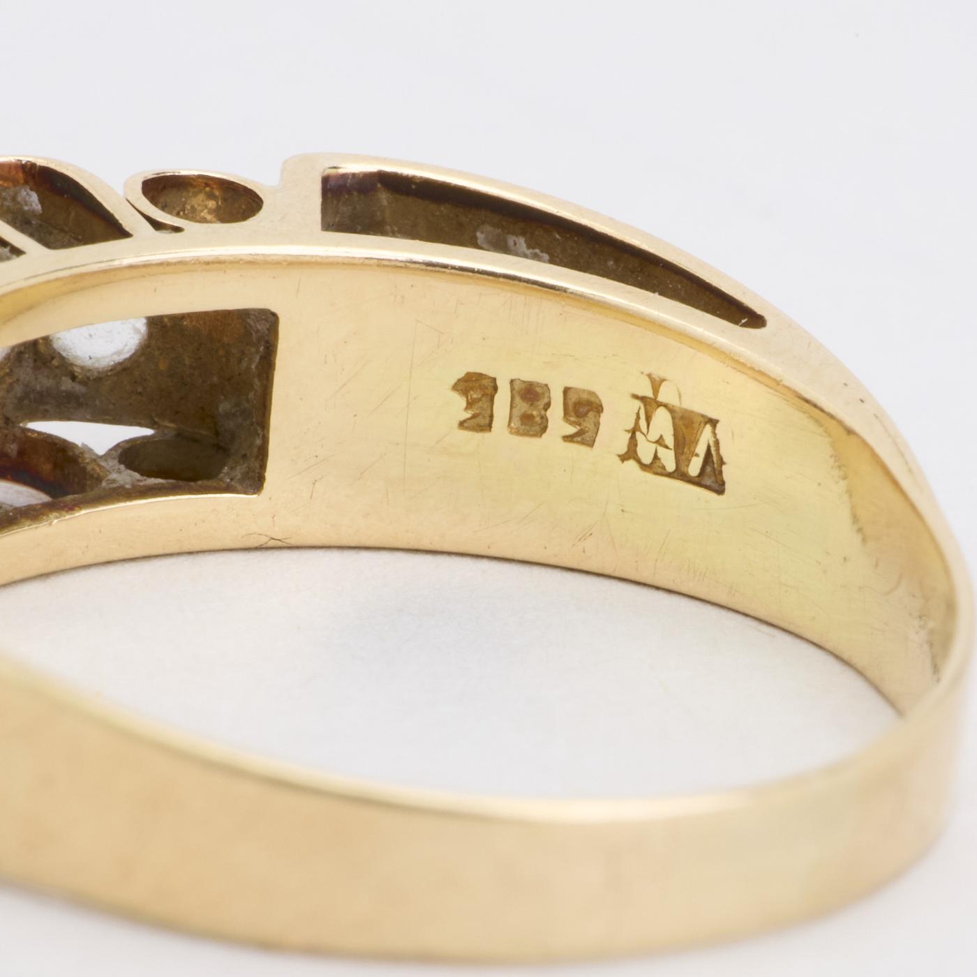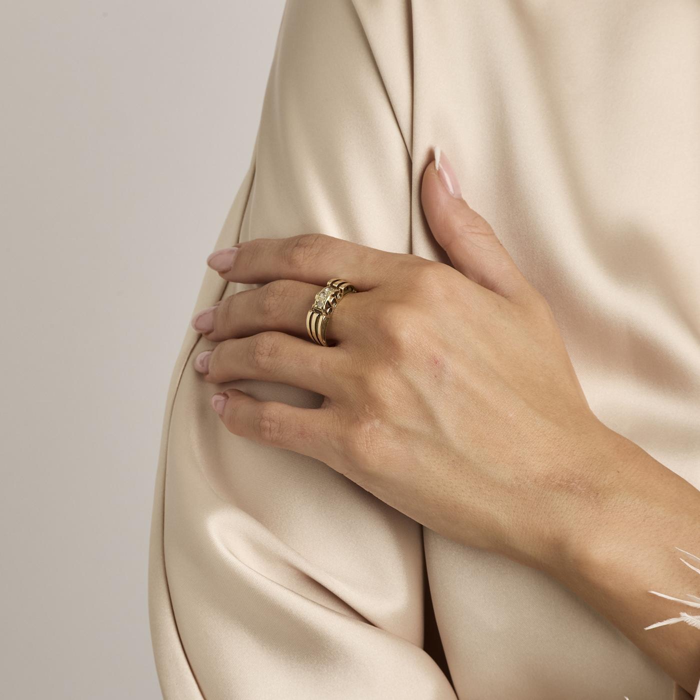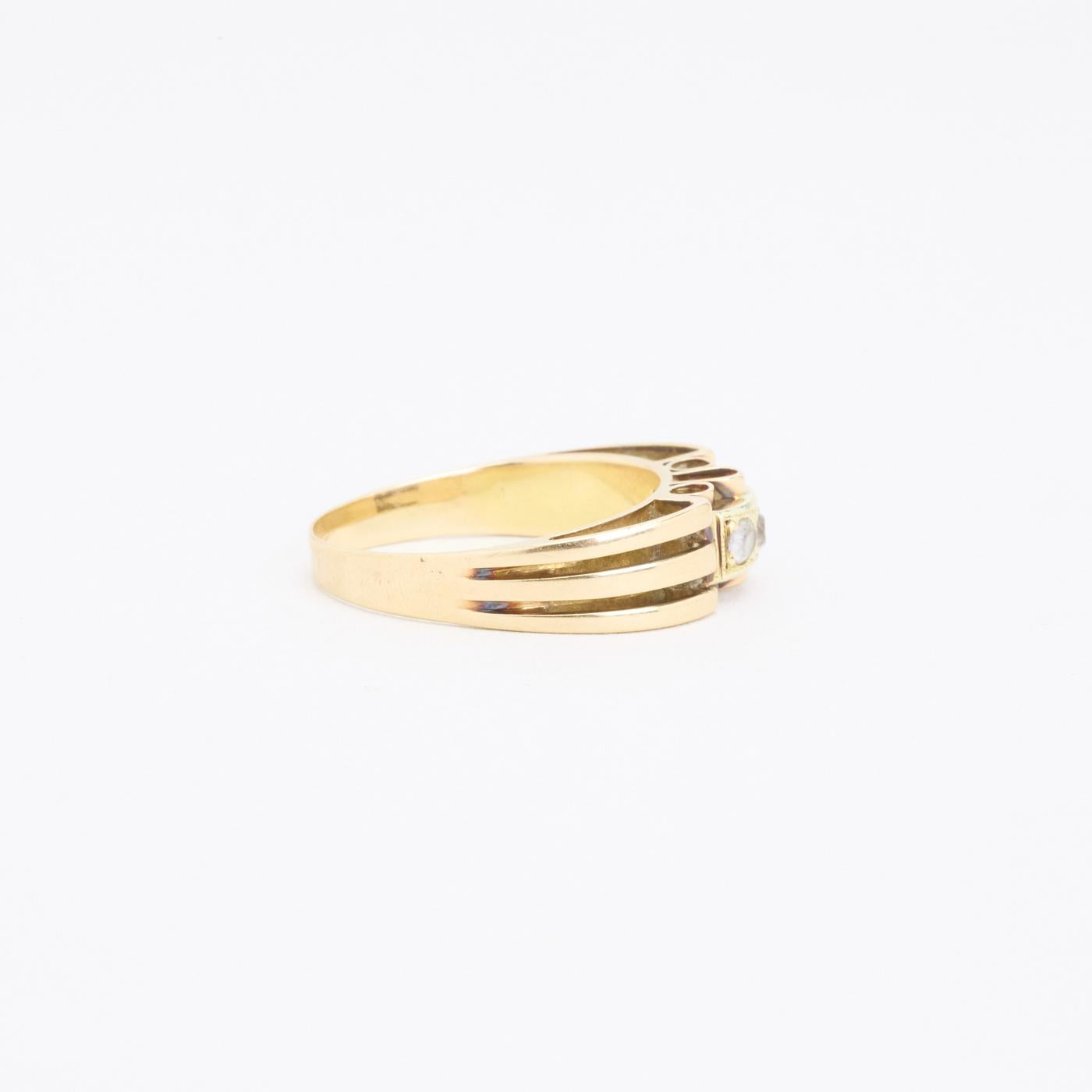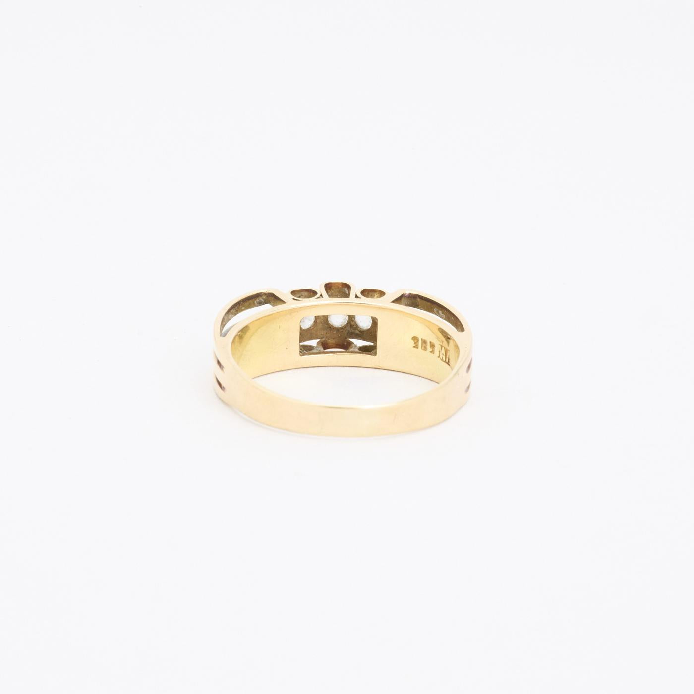 Three-stone ring i 14K guld, med tre hvide sten, Str. 56
