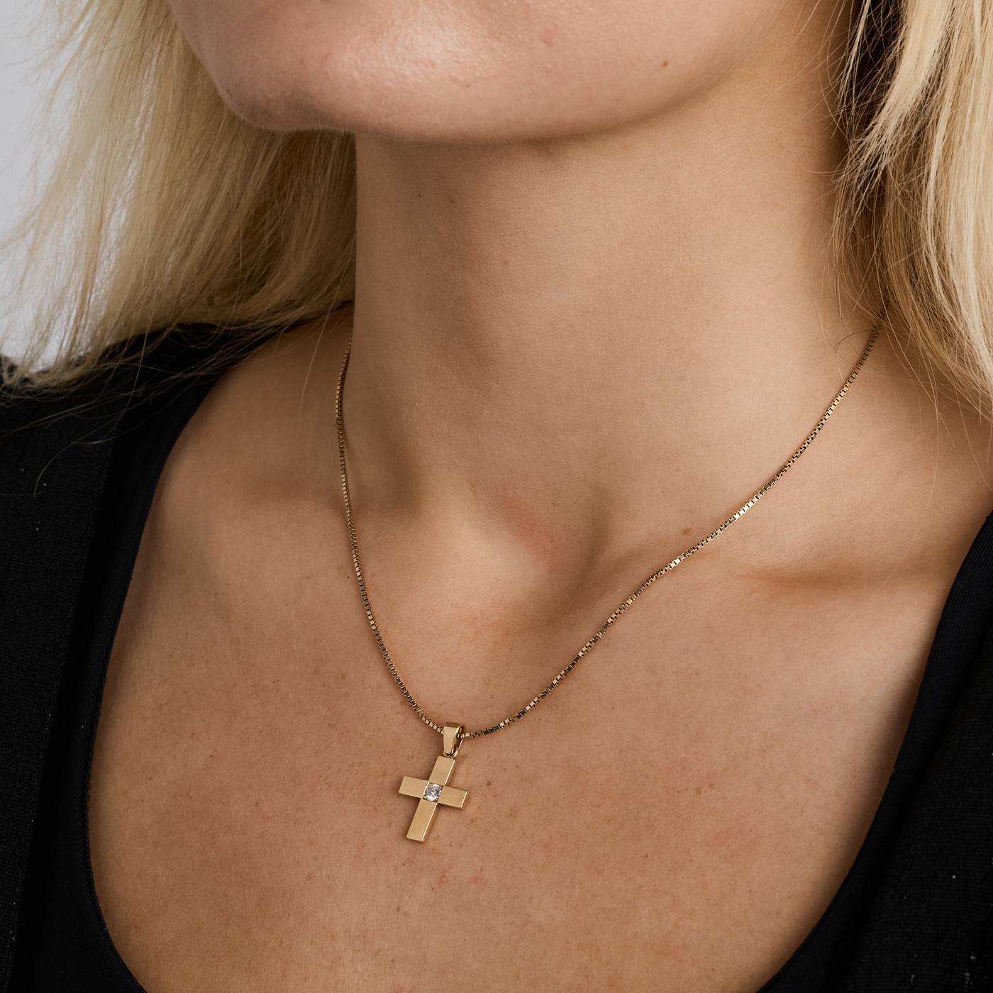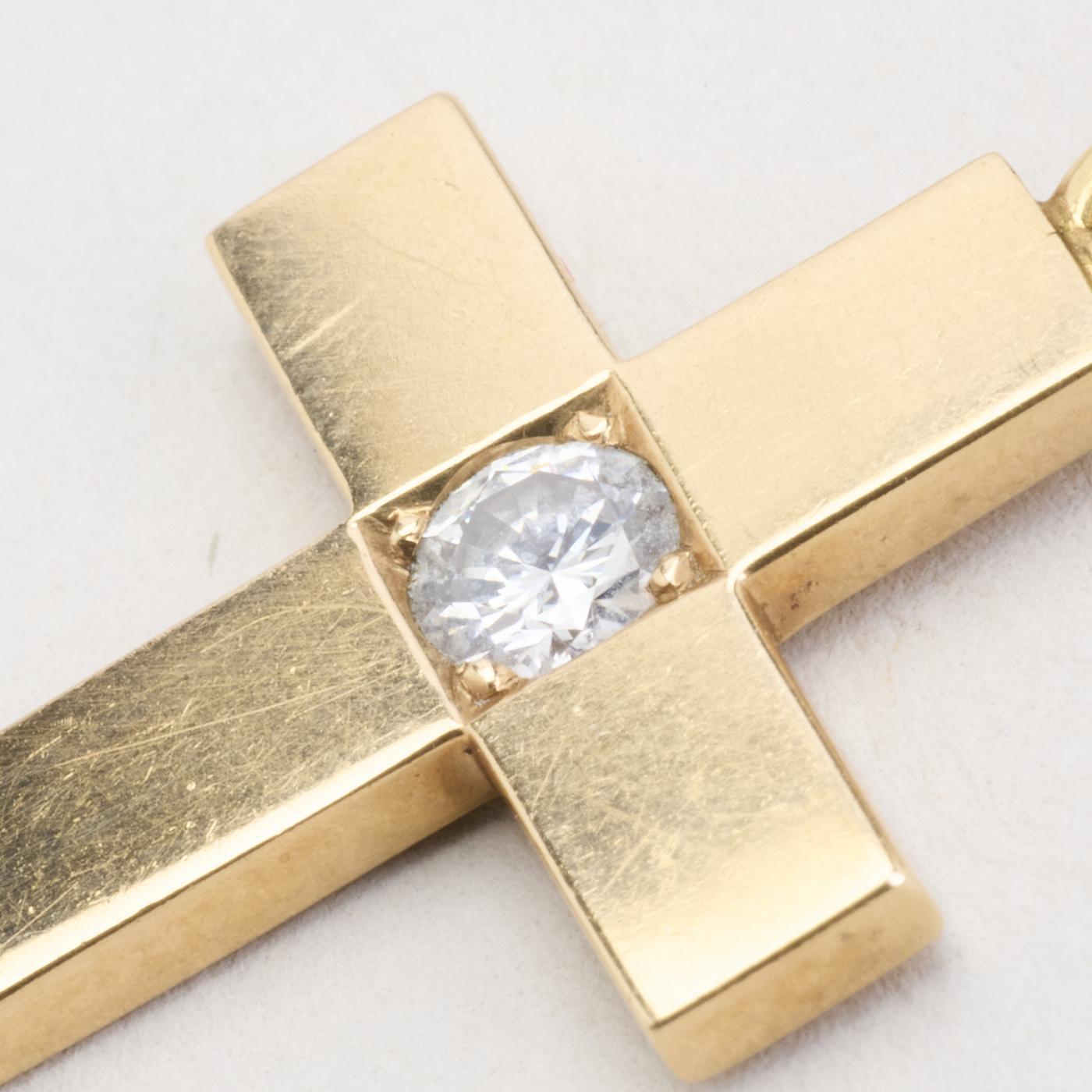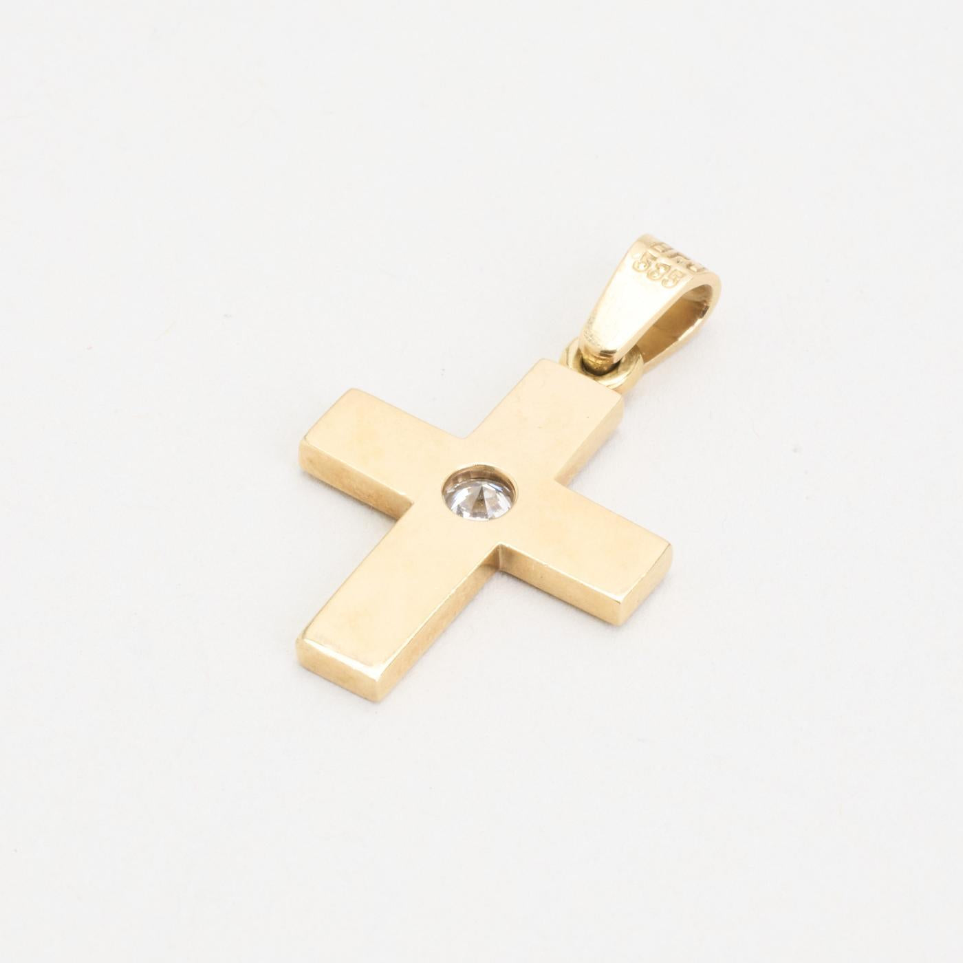 Kors med diamant (0.19 ct) i 14 karat, 2.5 cm