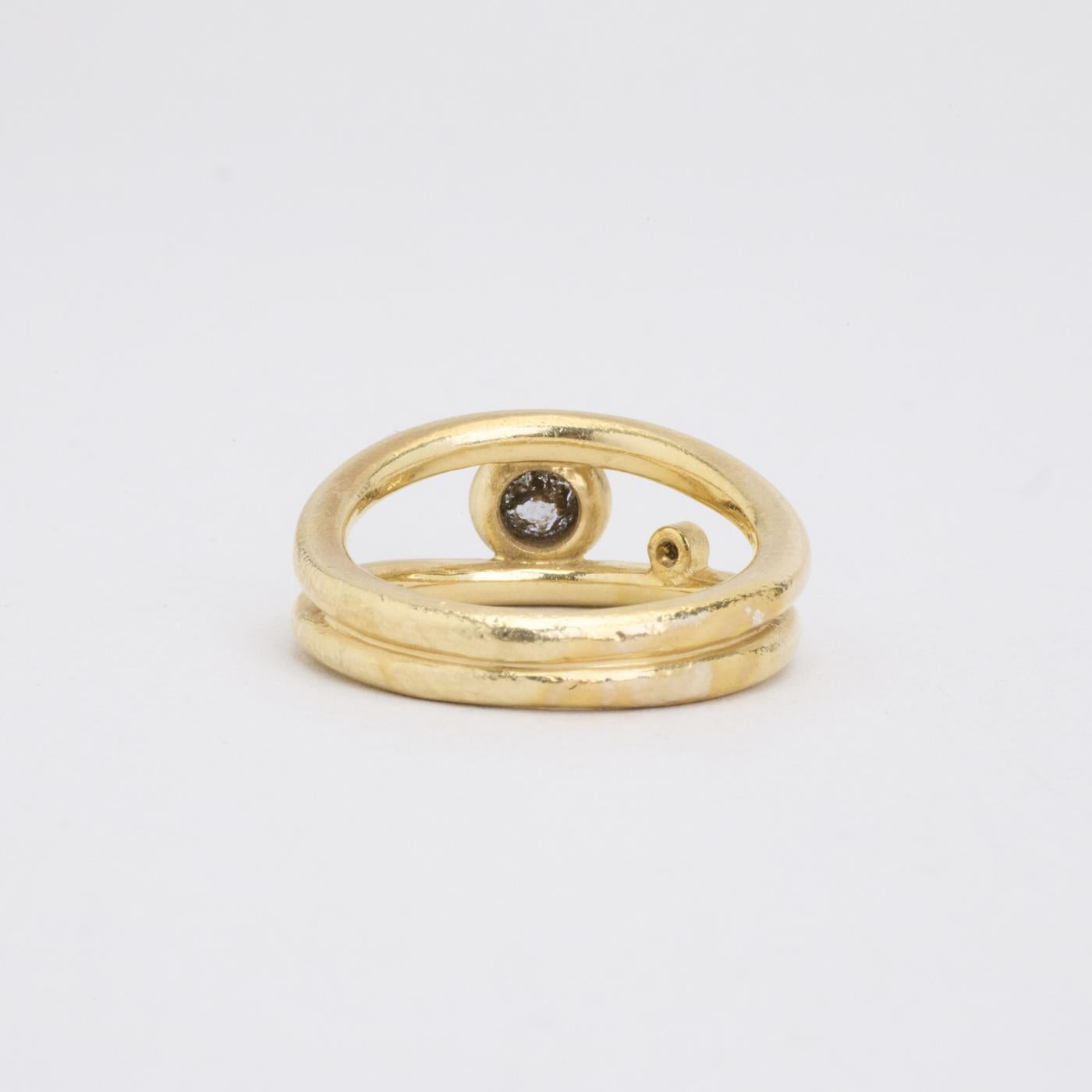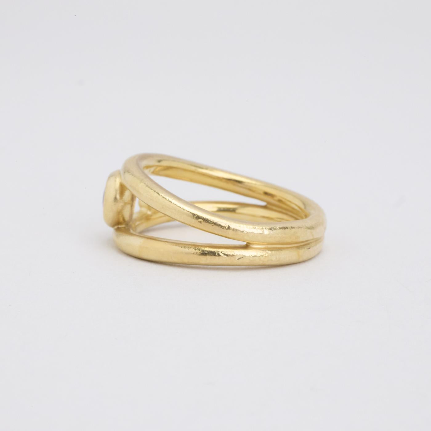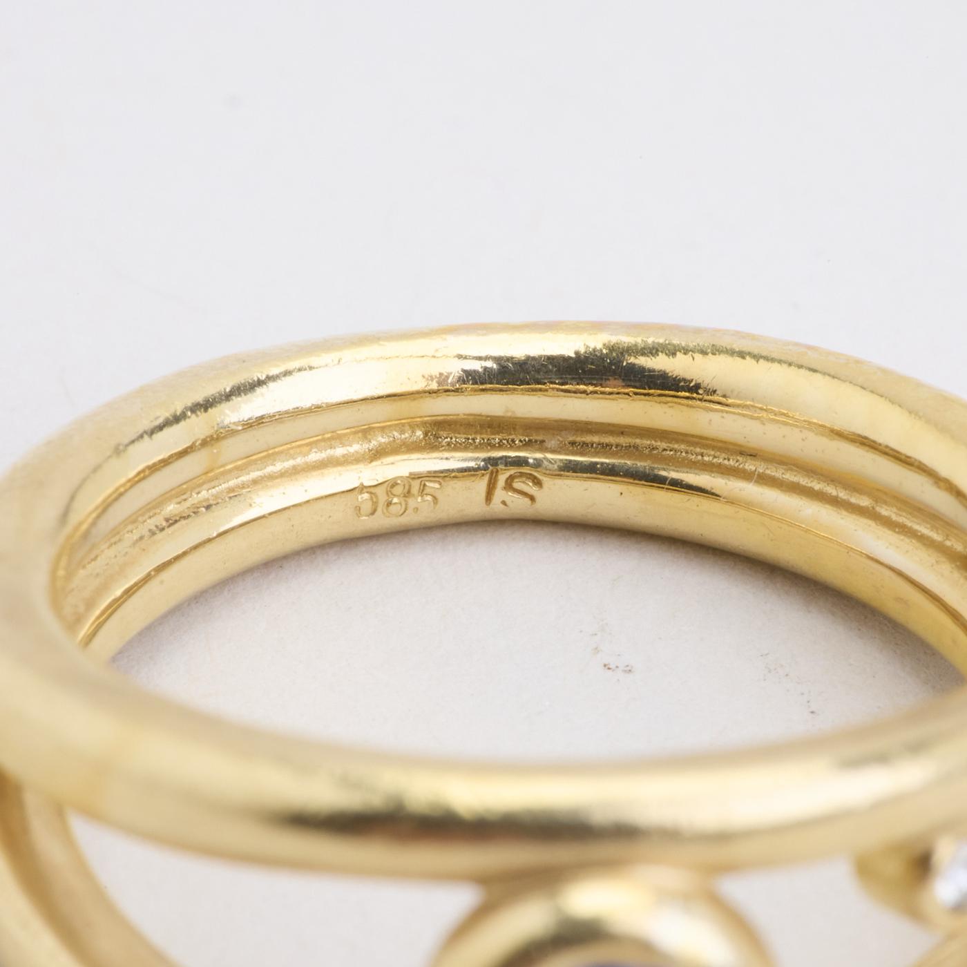 Statement ring i 14K guld, med diamant (0.02 ct) og blåviolette sten, Str. 53