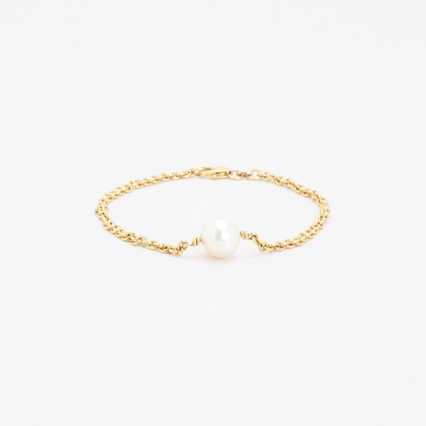 BNH Belcher armbånd i 14K guld med perle, 17,5 cm