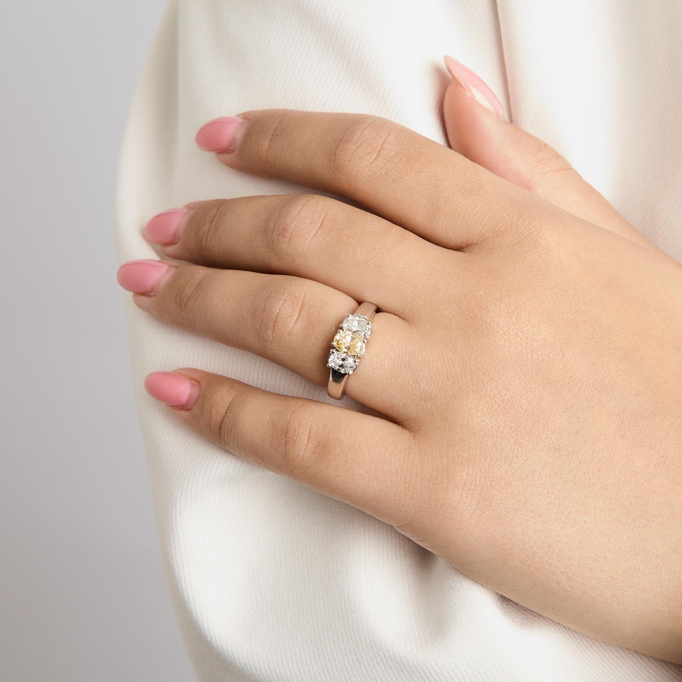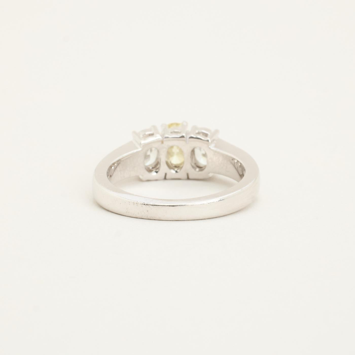 Diamanter: 1.43 ct. totalt fordelt på 3 naturlige sten. Centerstenen på 0.63 ct. oval-cut diamant og 2 x 0.4 ct.