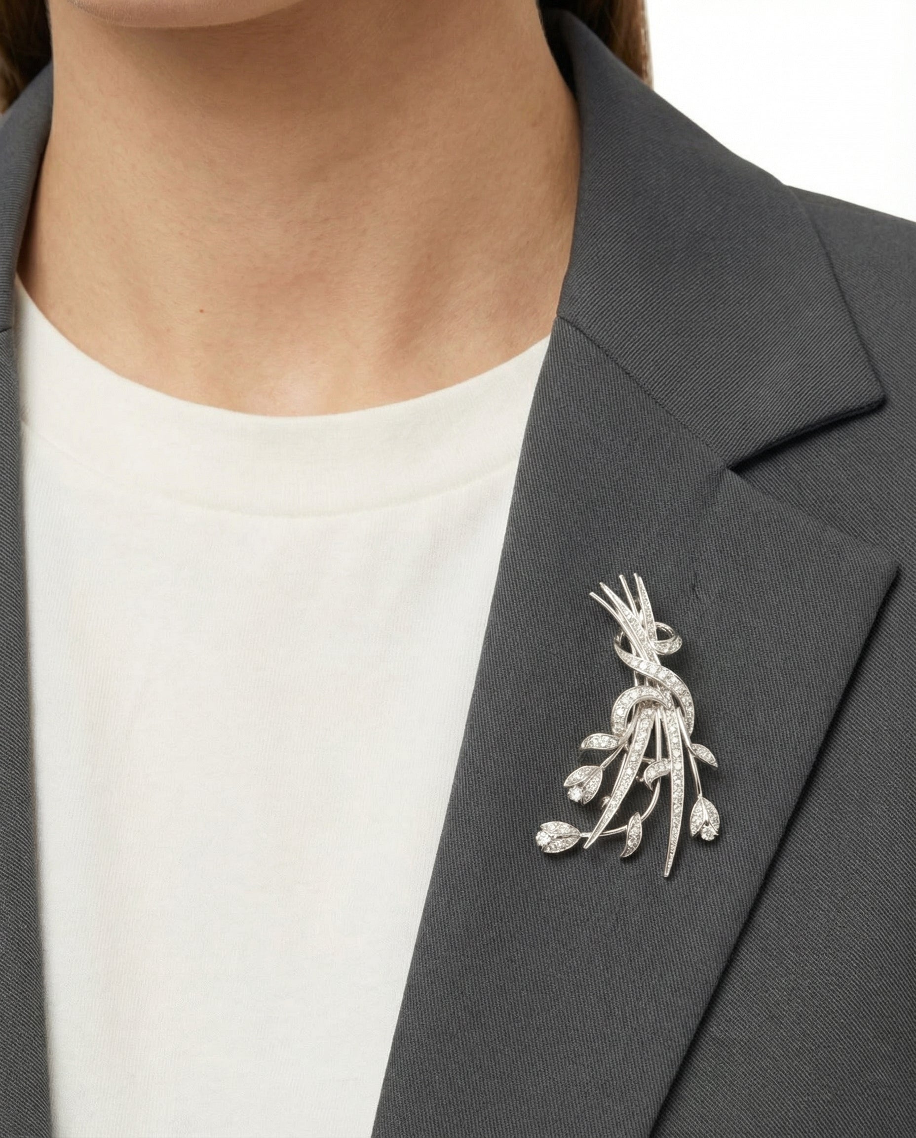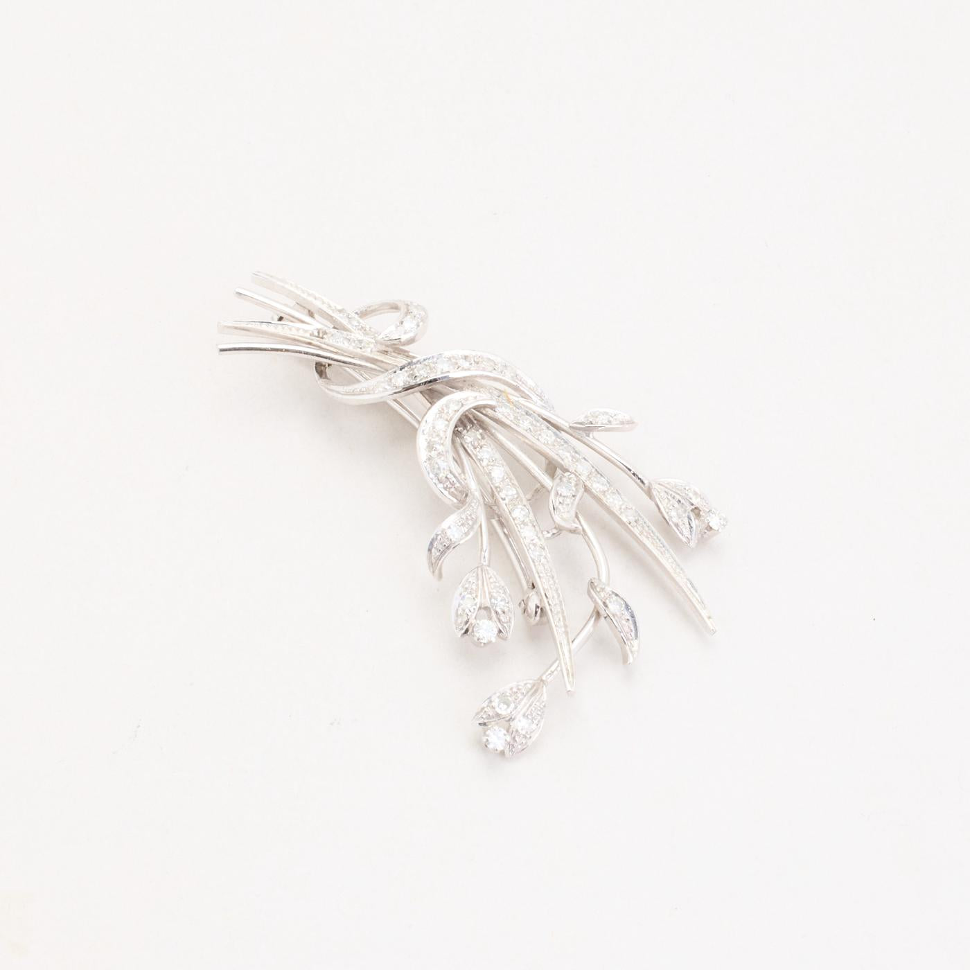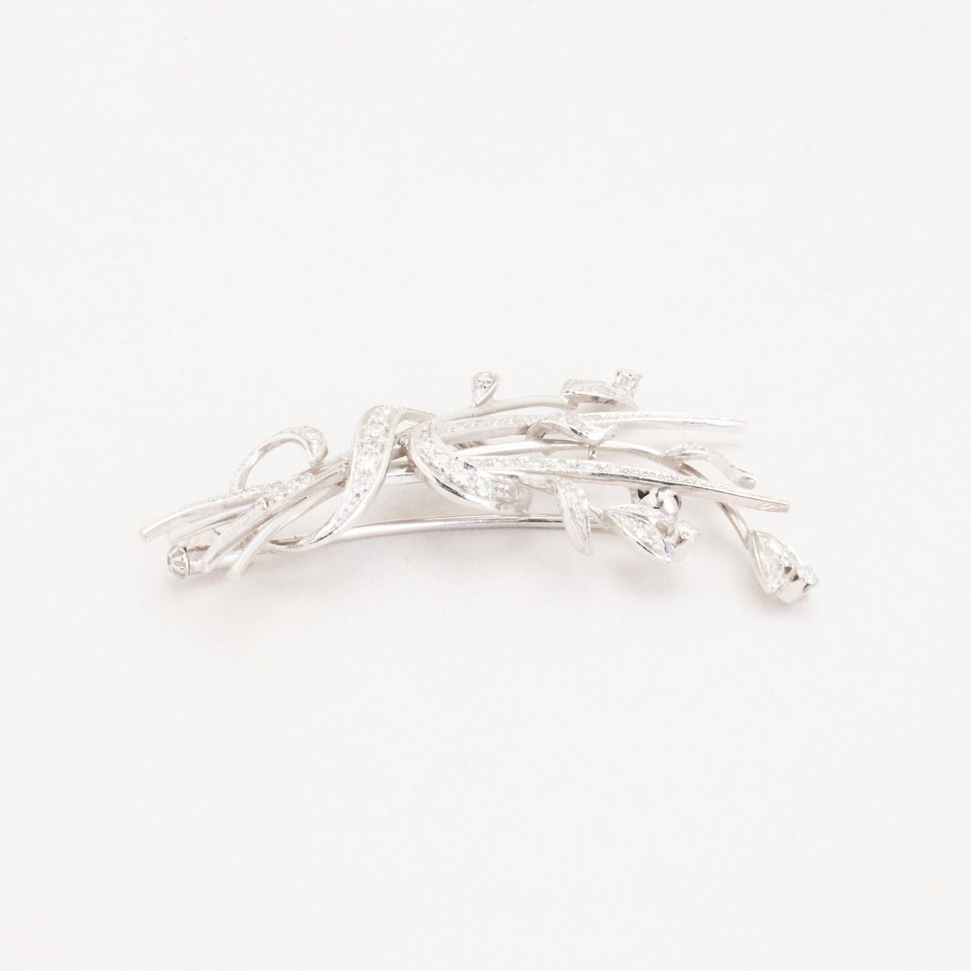 Broche i 18K hvidguld med diamanter (0.49 ct), 5 cm, 8.75 g