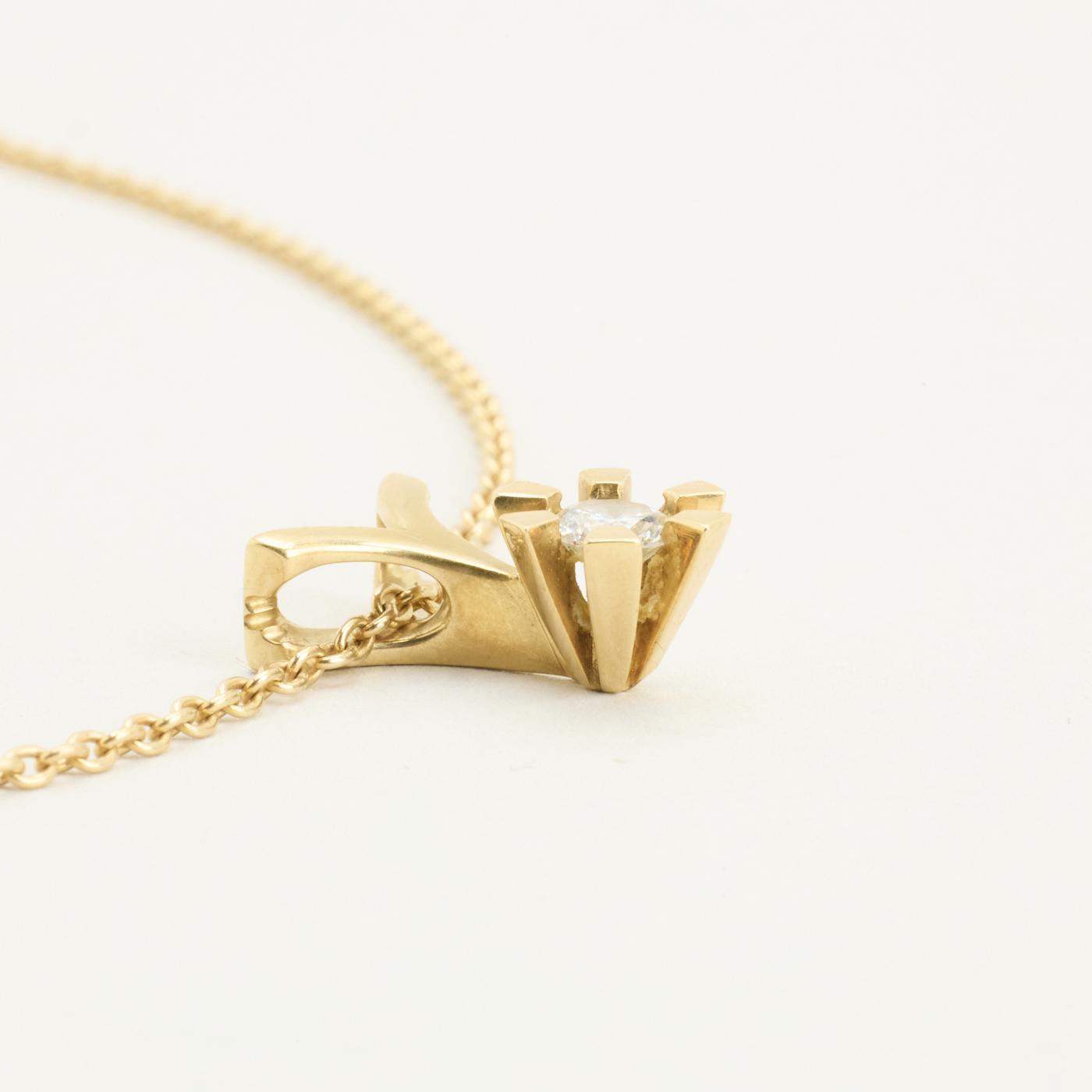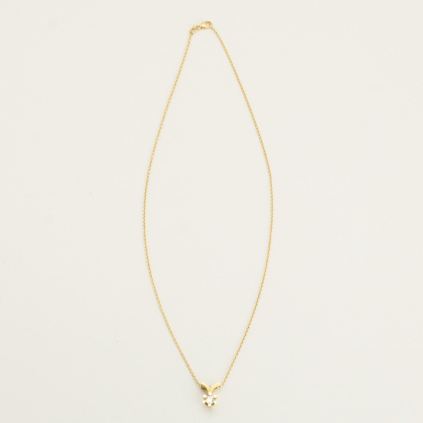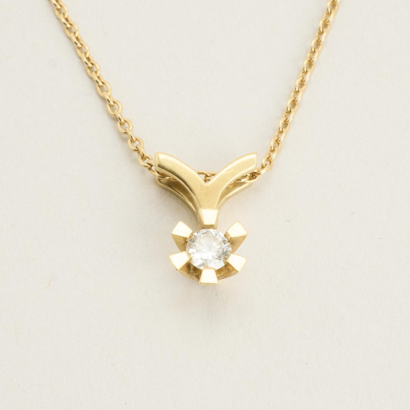 Ankerkæde halskæde i 14K guld med vedhæng og diamant (0,24 ct), 50 cm, karabinhage