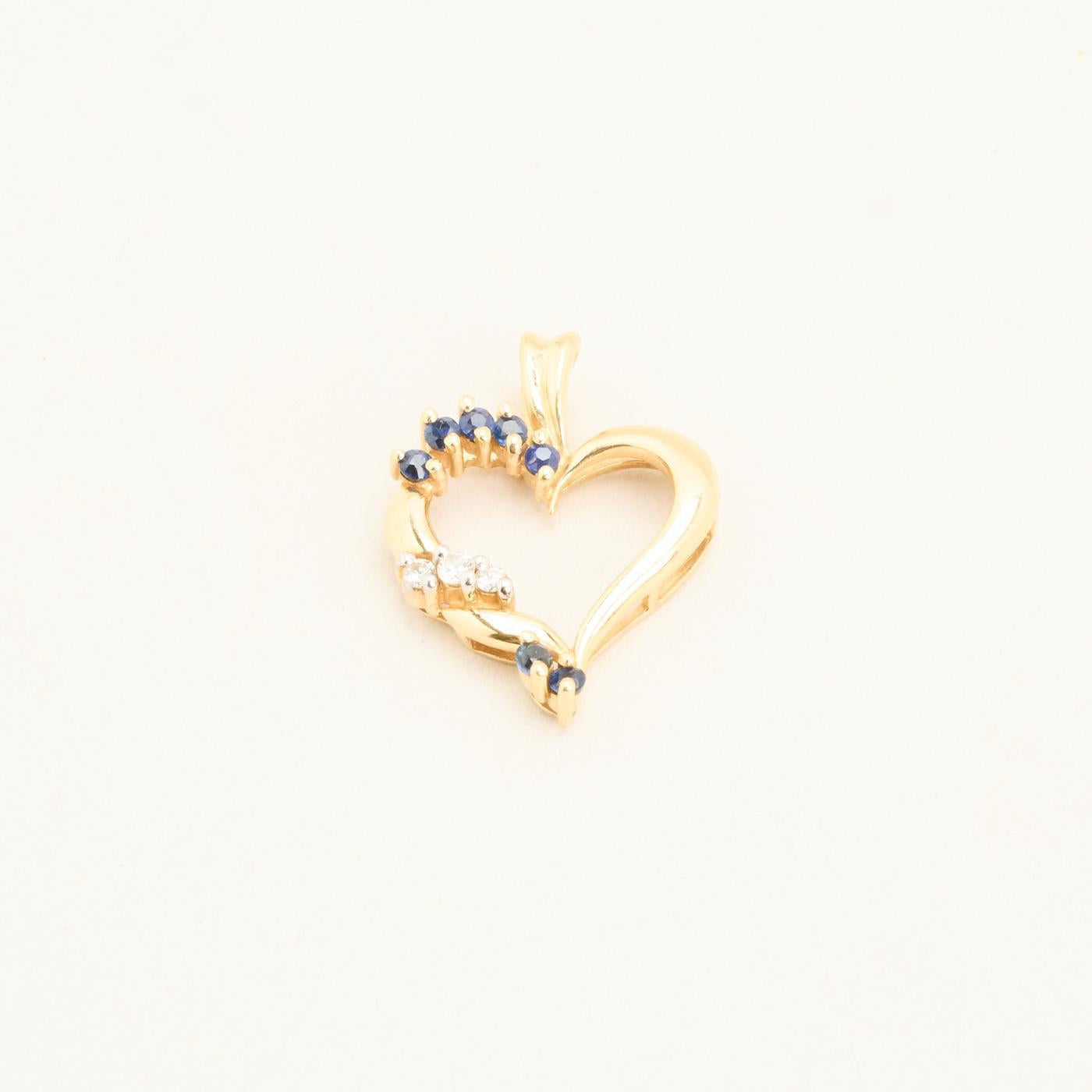 Hjerte vedhæng med diamant (0.13 ct) i 14 karat, 2.5 cm