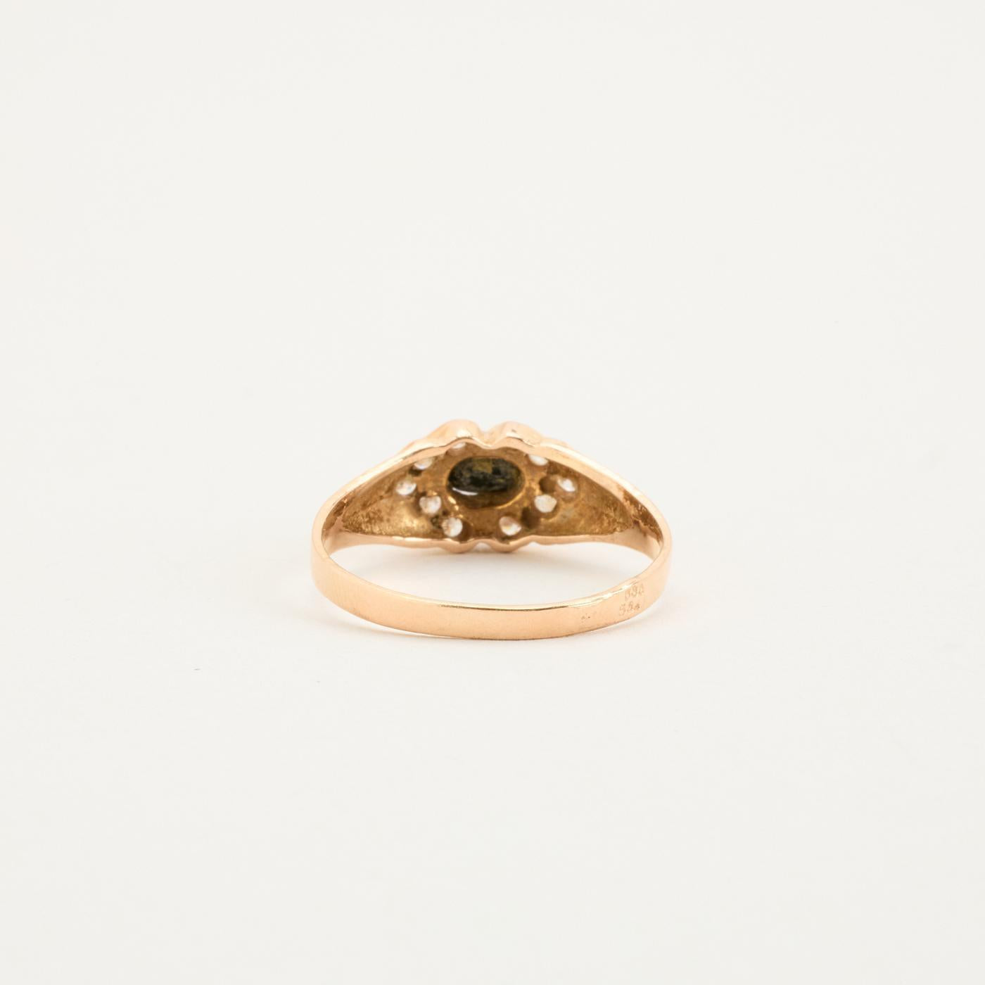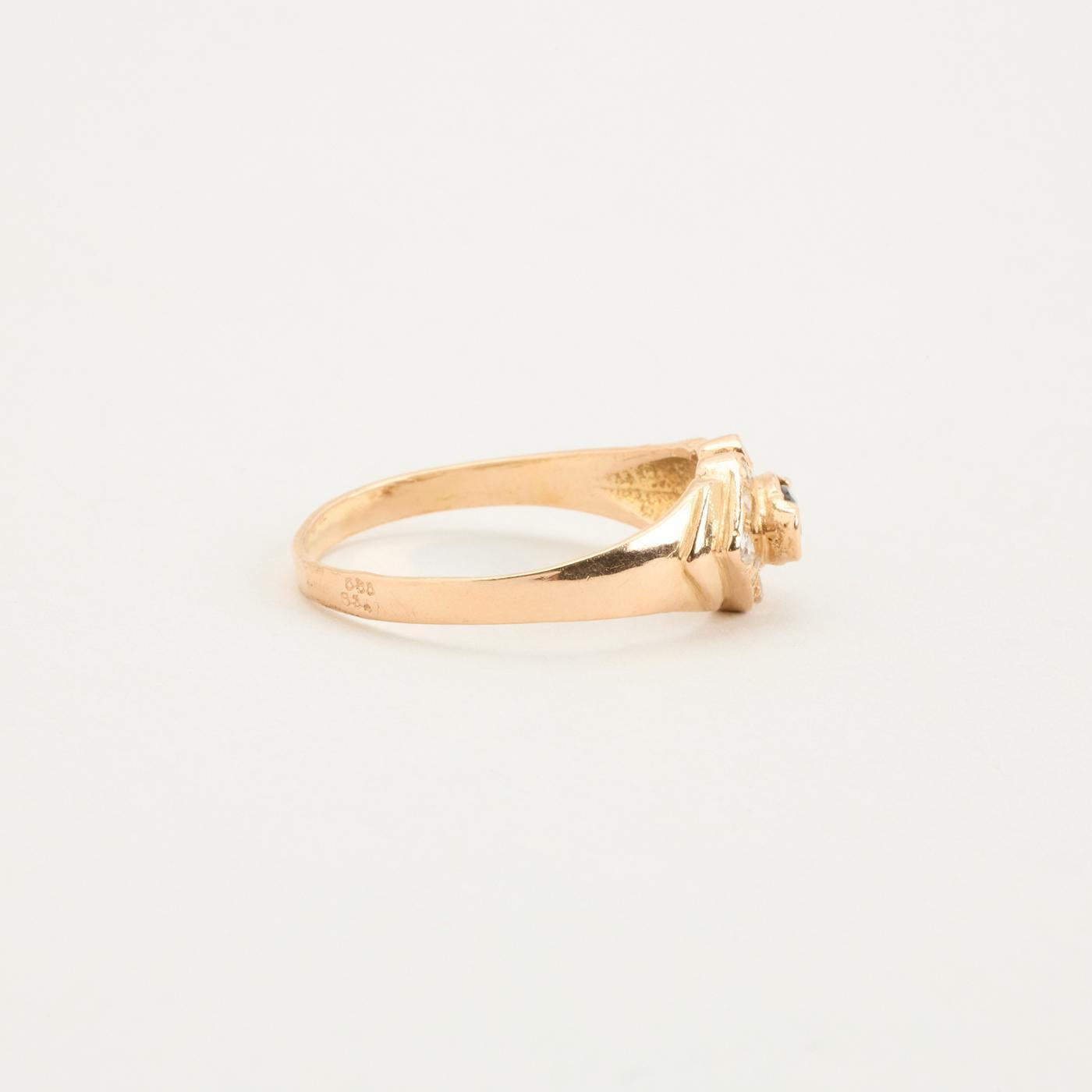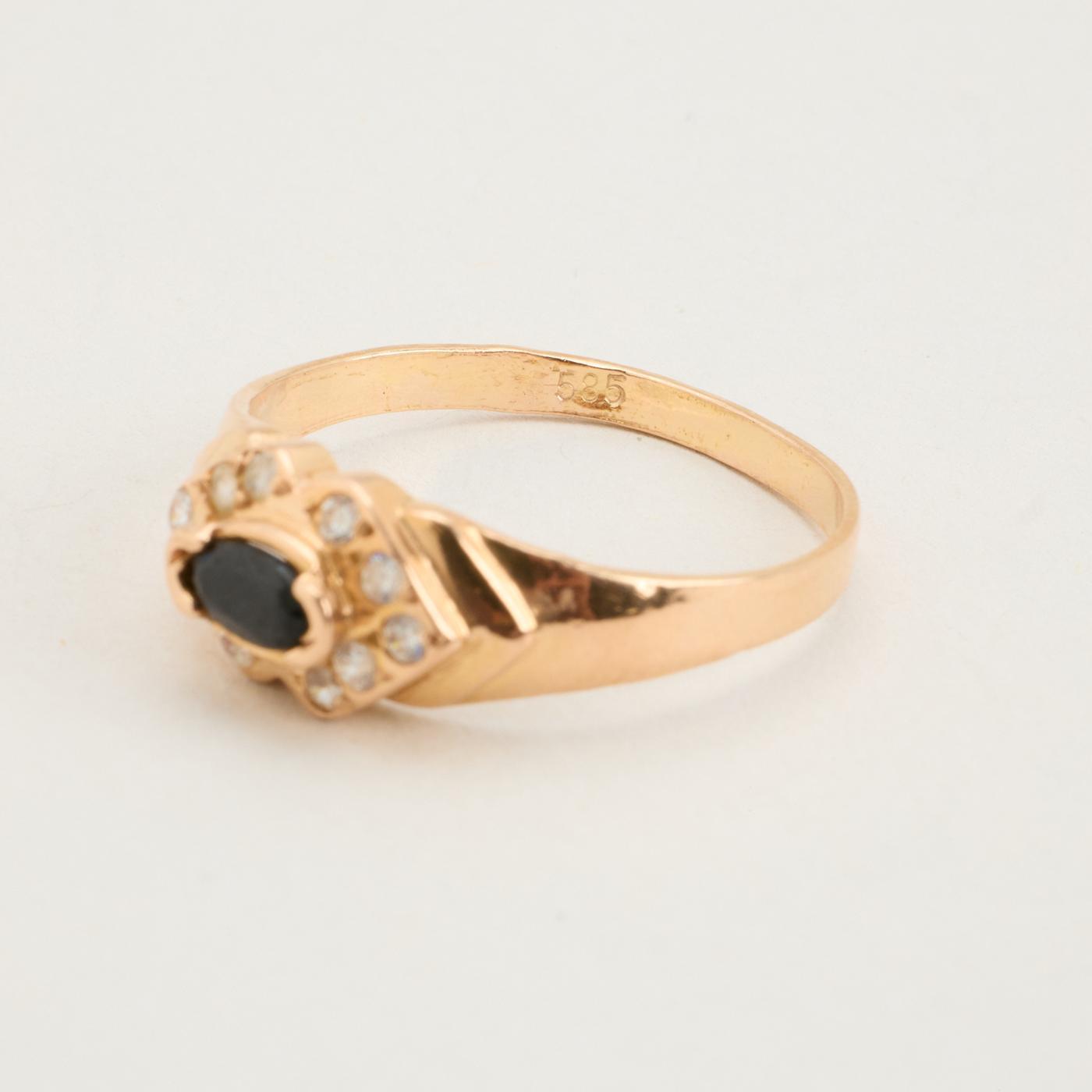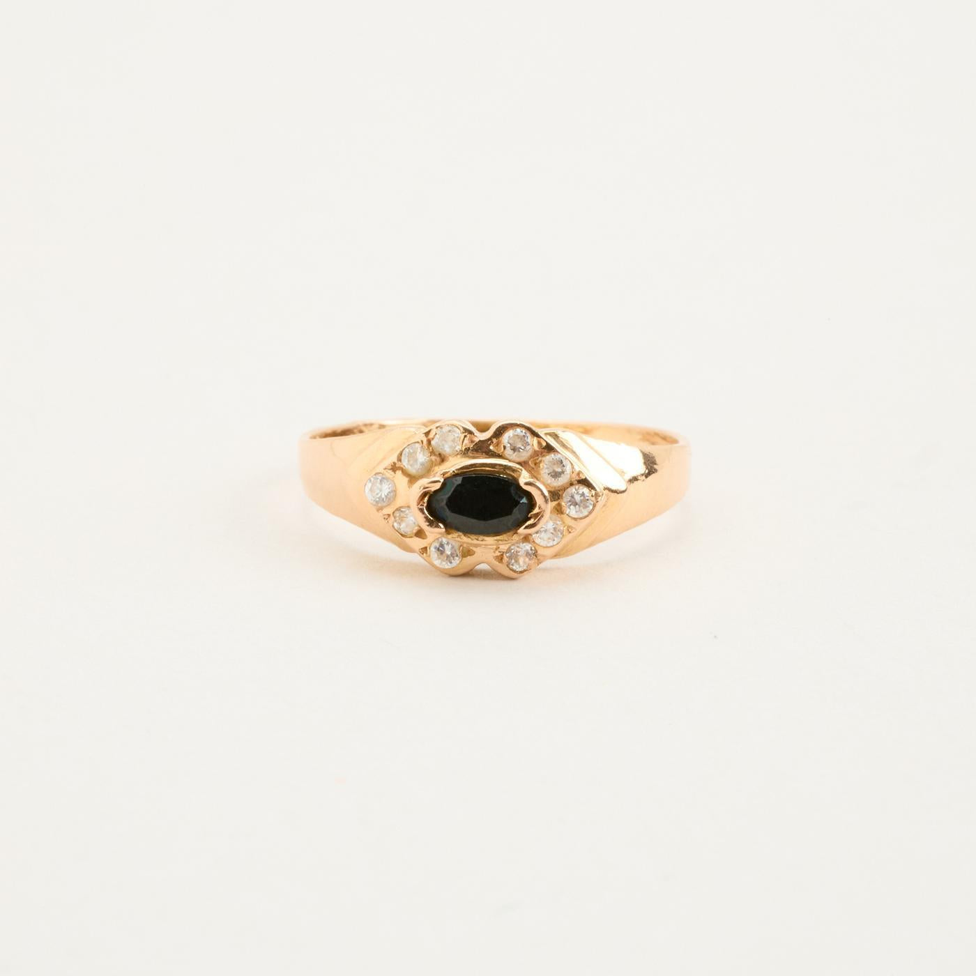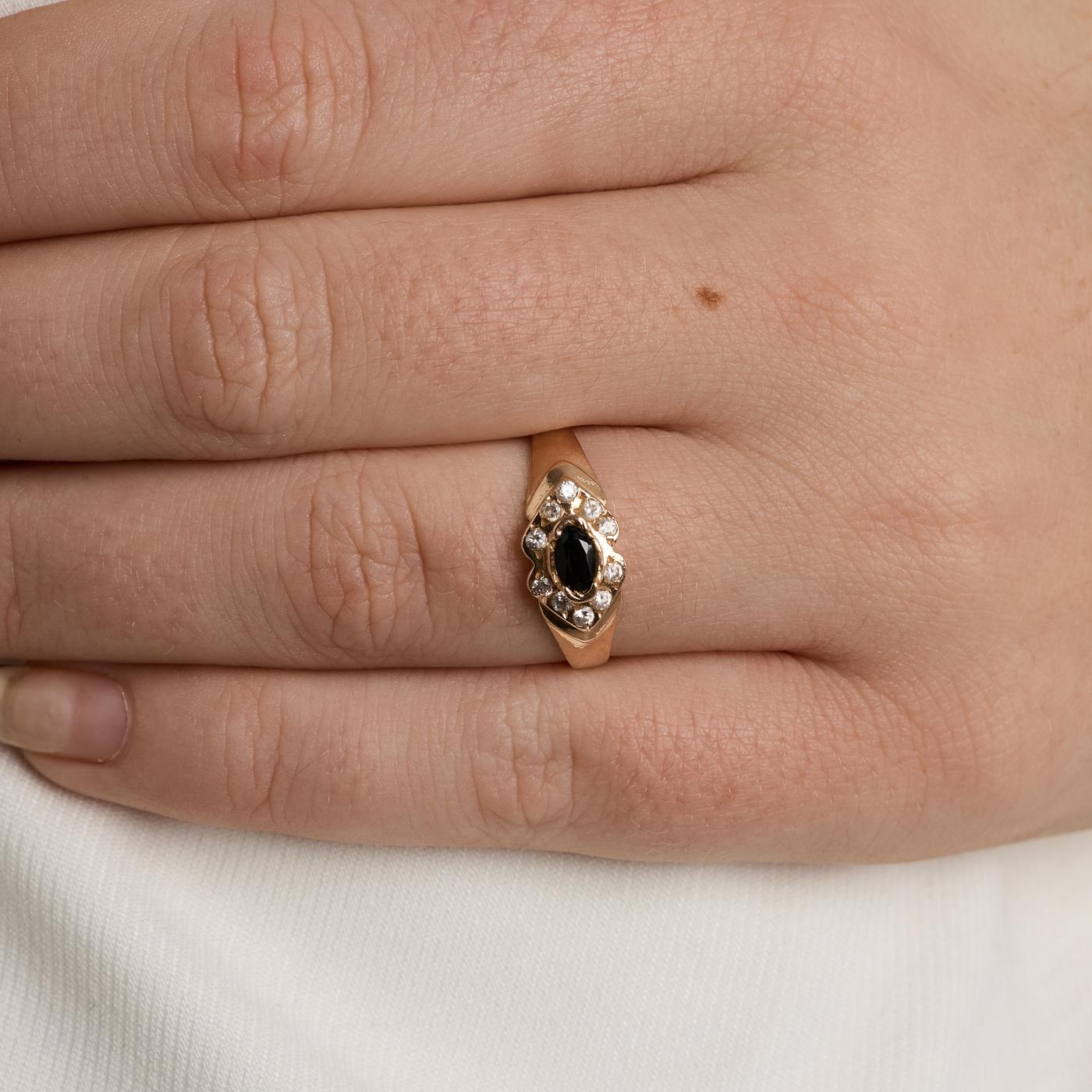 Gypsyring i 14K guld med en sort sten og hvide sten, Str. 57