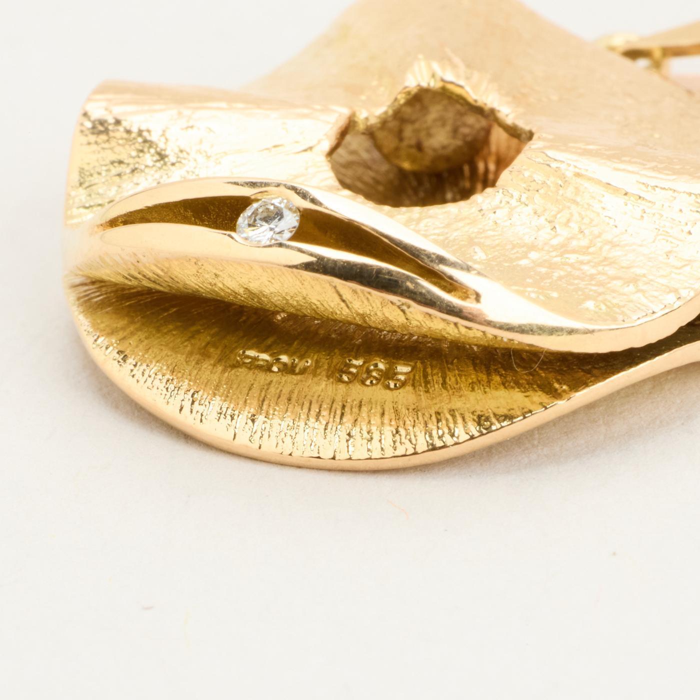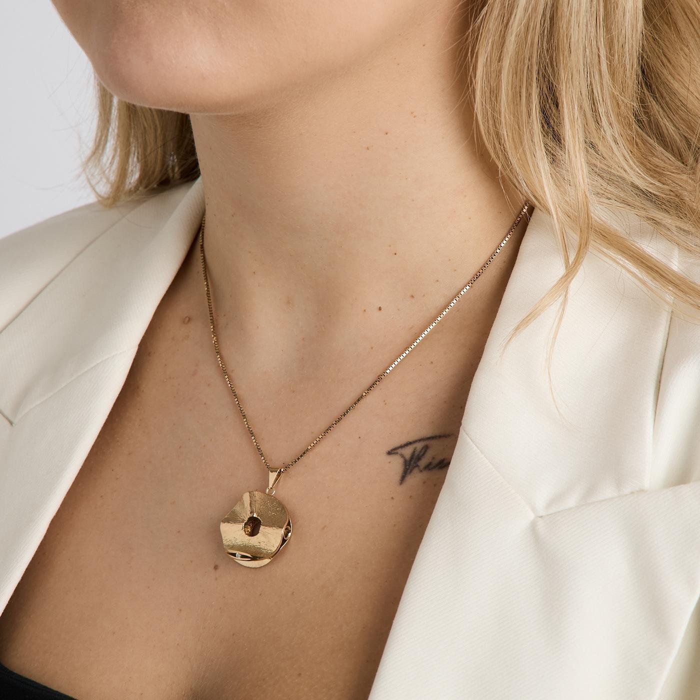 Vedhæng i 14K guld med en diamant (0.03 ct), 3.1 cm