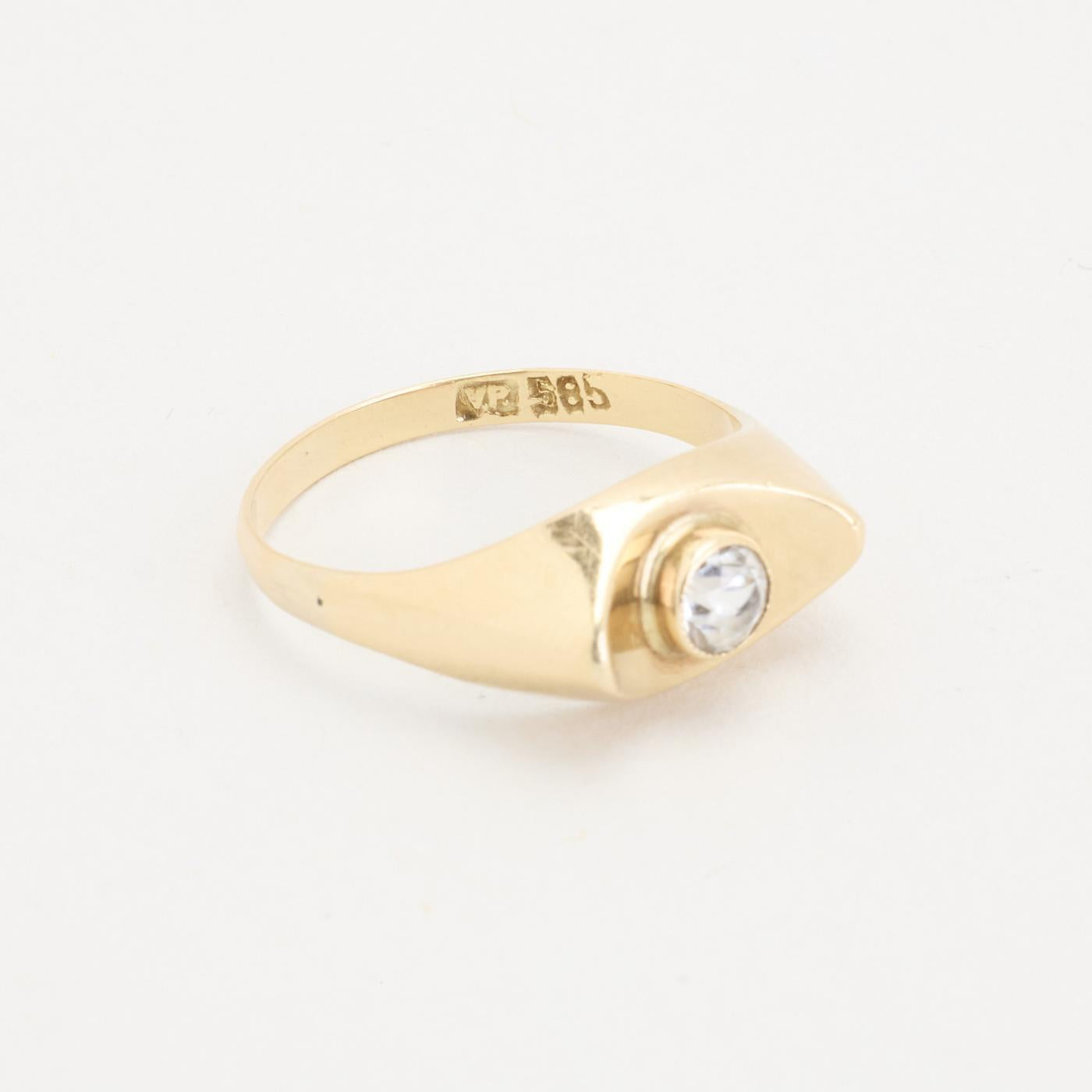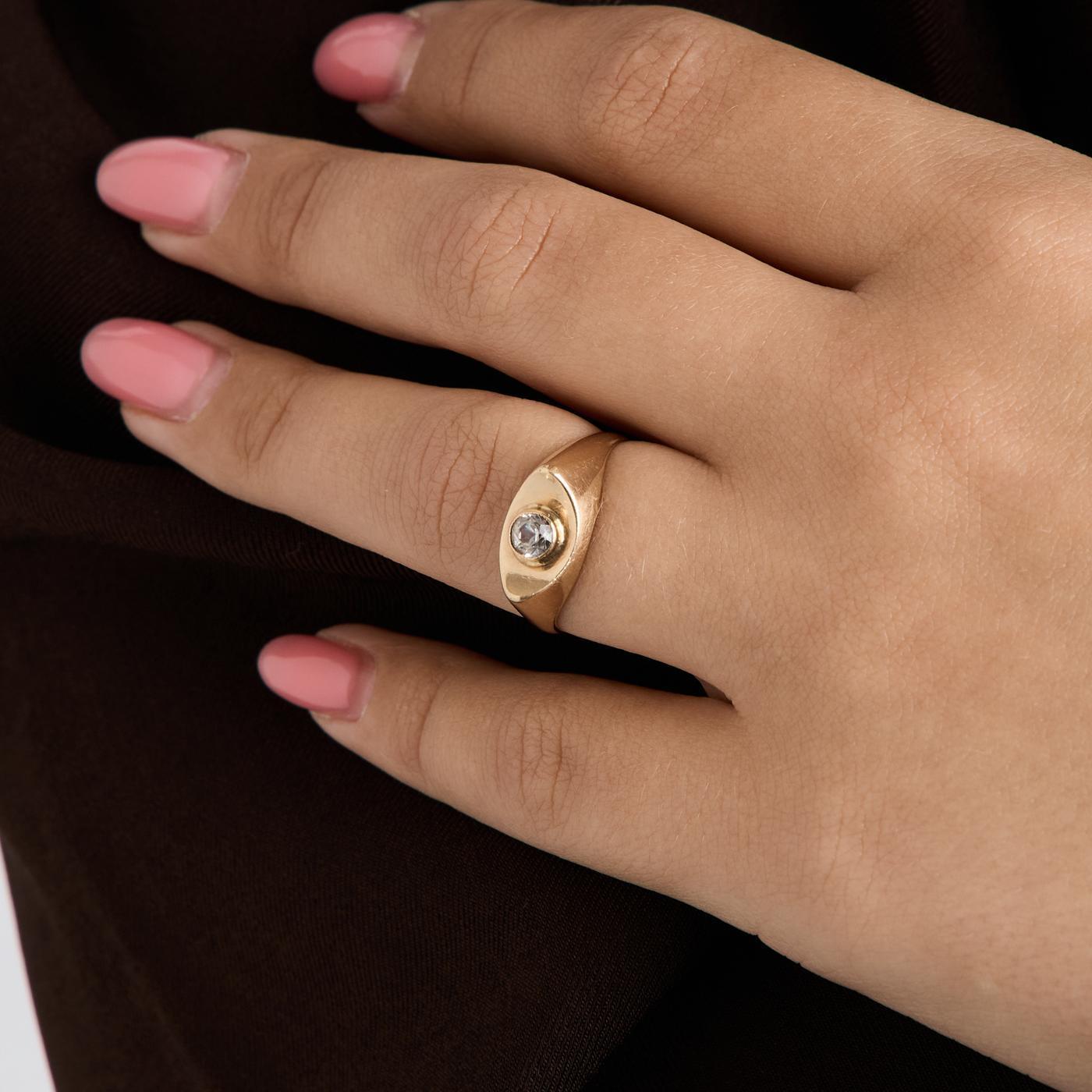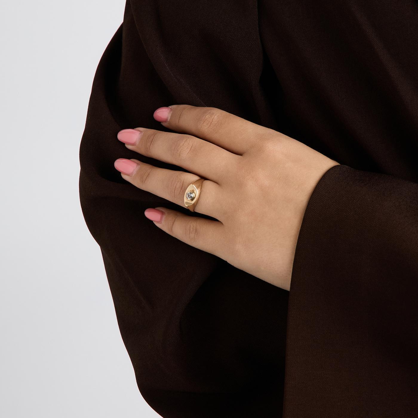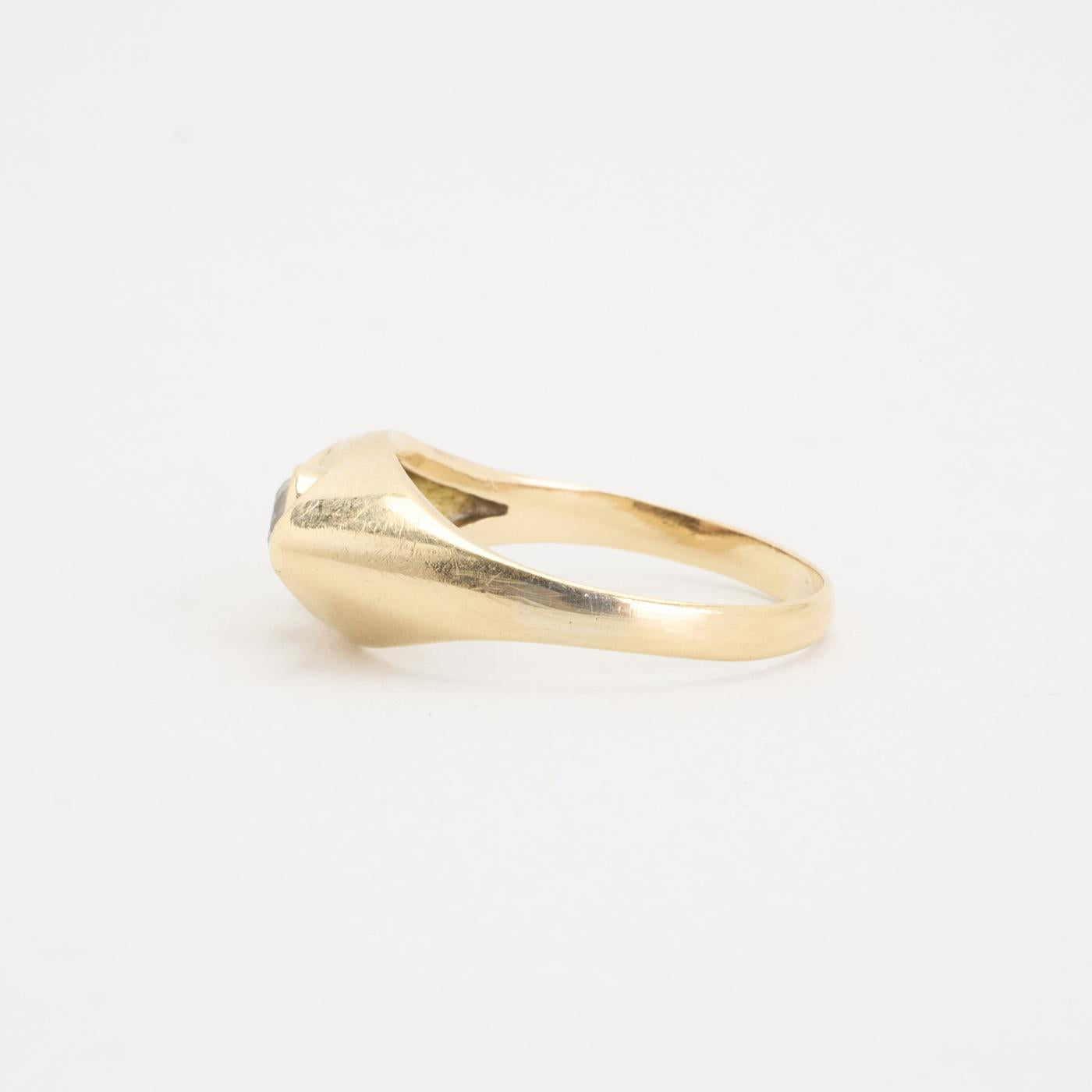 Signet ring i 14K guld med syntetisk spinel, Str. 55