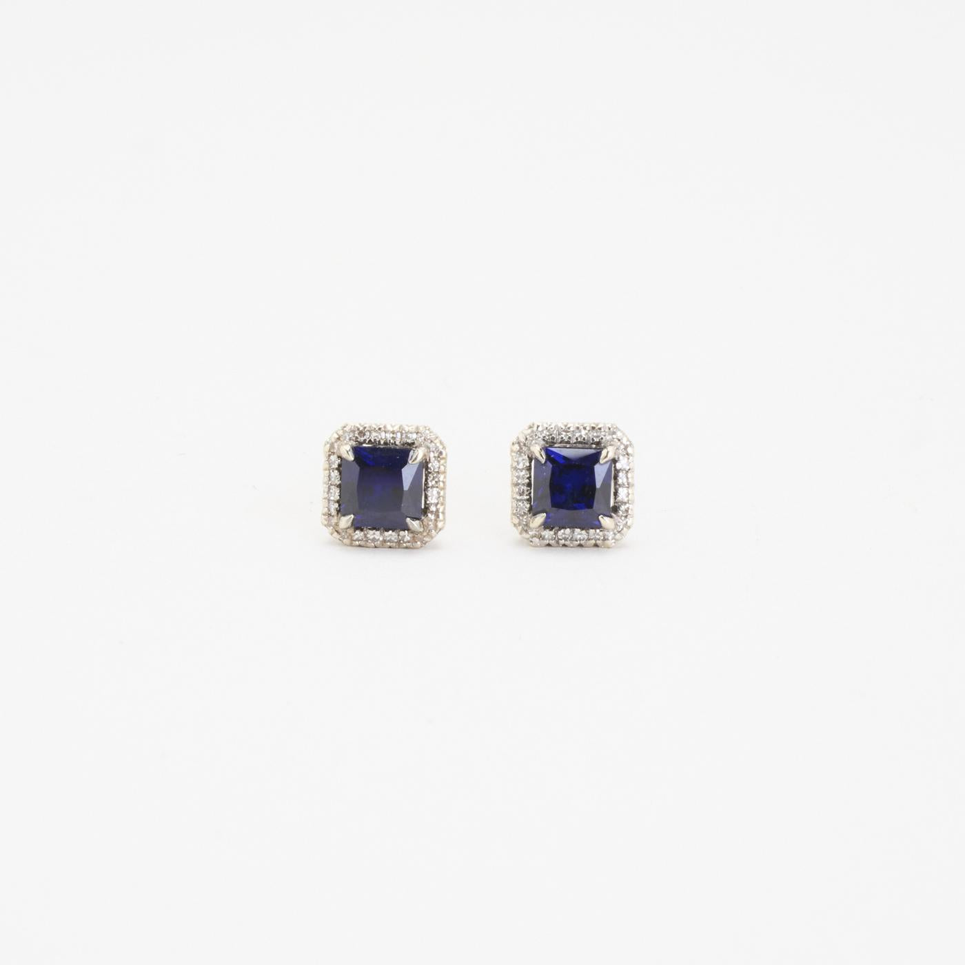 Øreringe med stik i 14 karat med en Safir, 7.03 cm