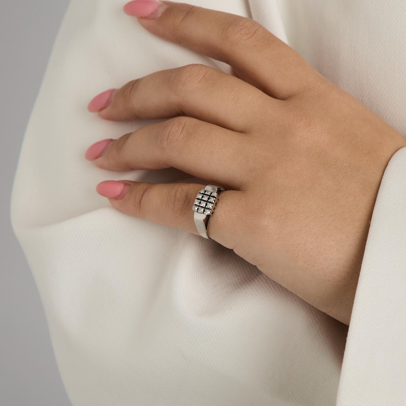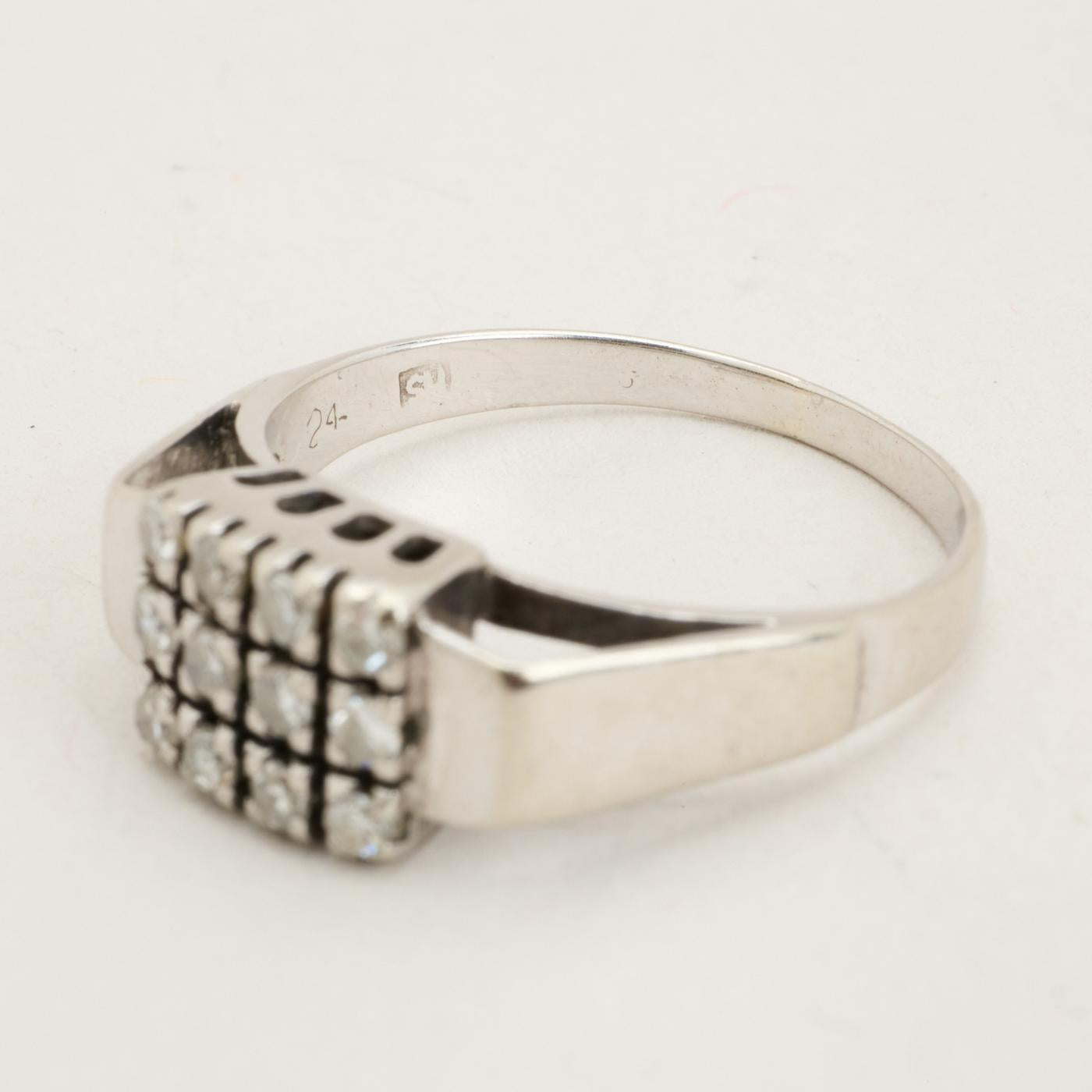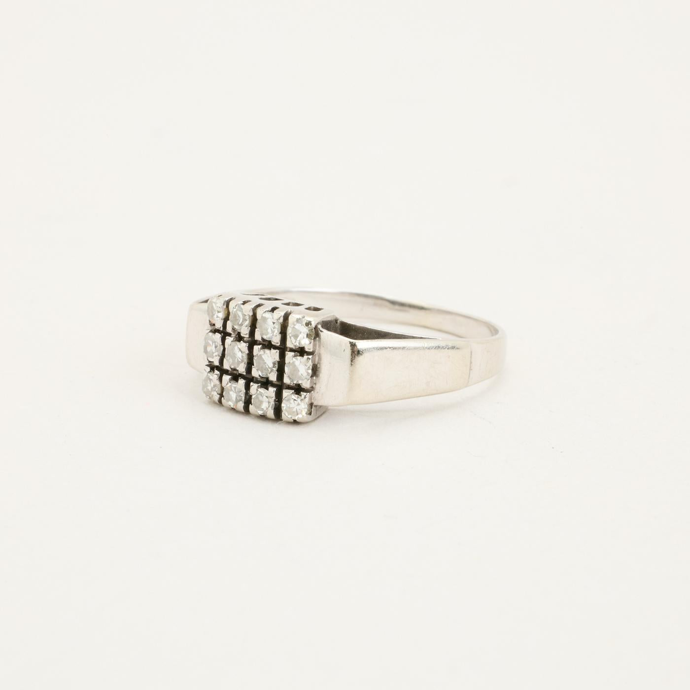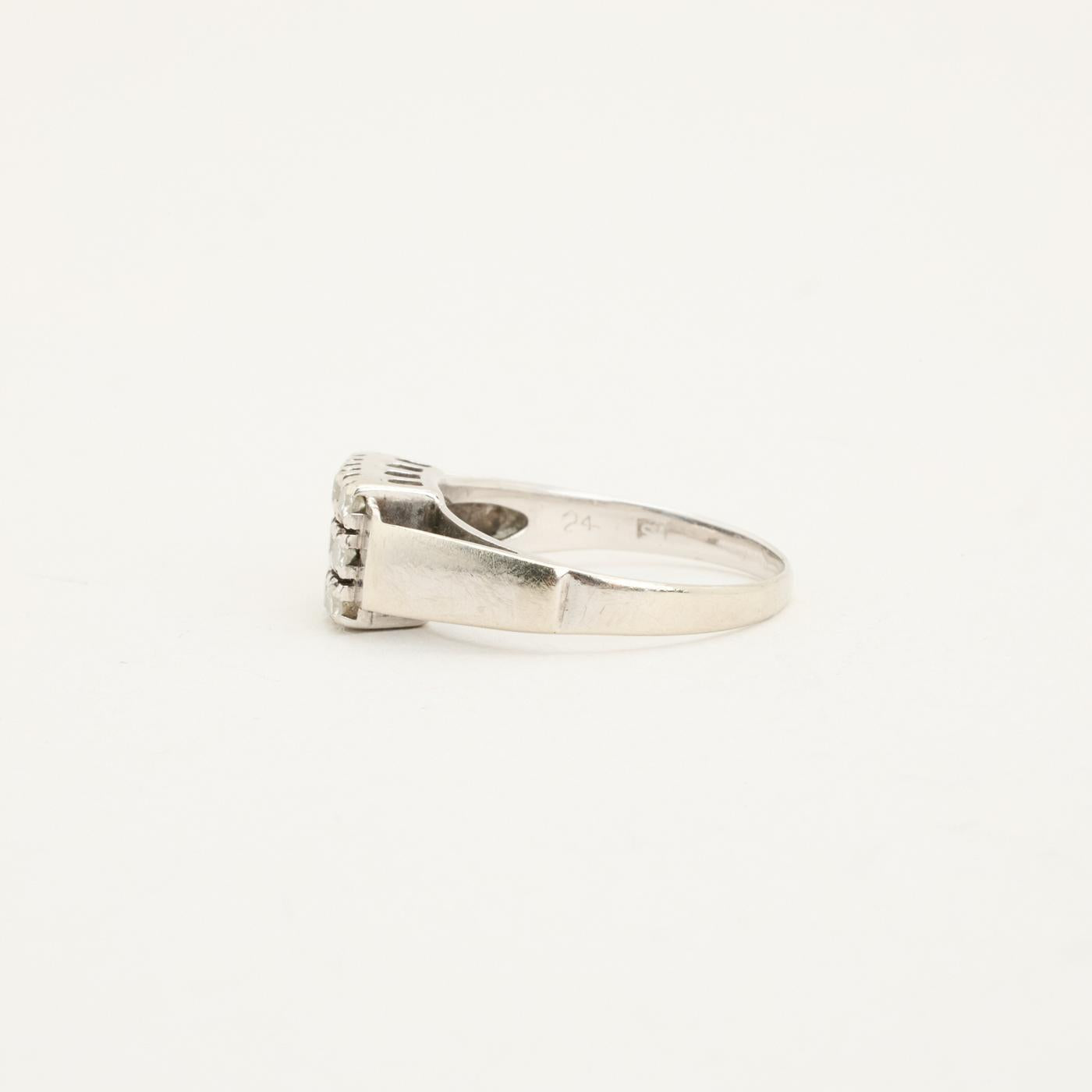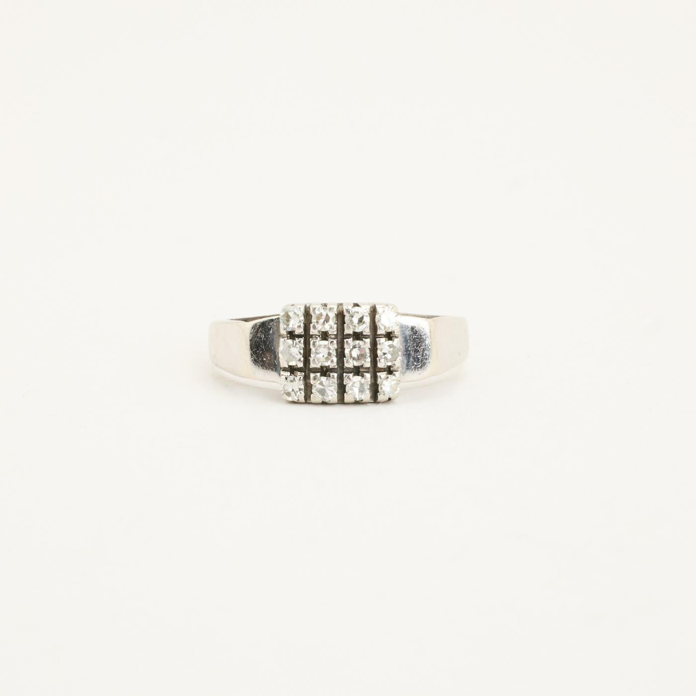 Signetring i 14K hvidguld med diamanter (0.19 ct), Str. 51