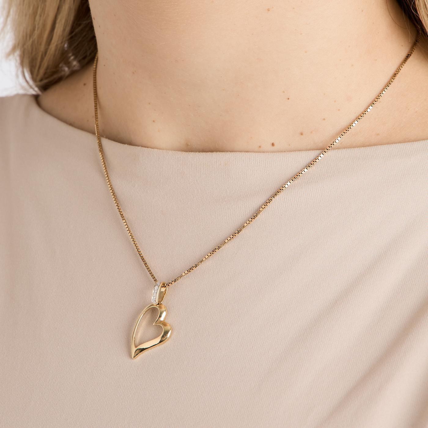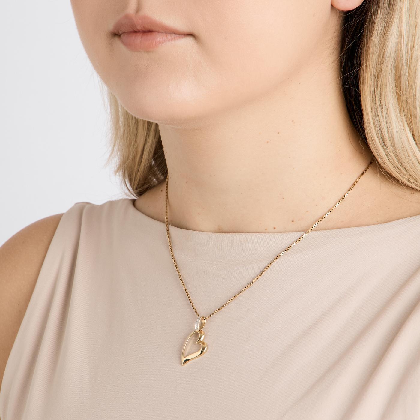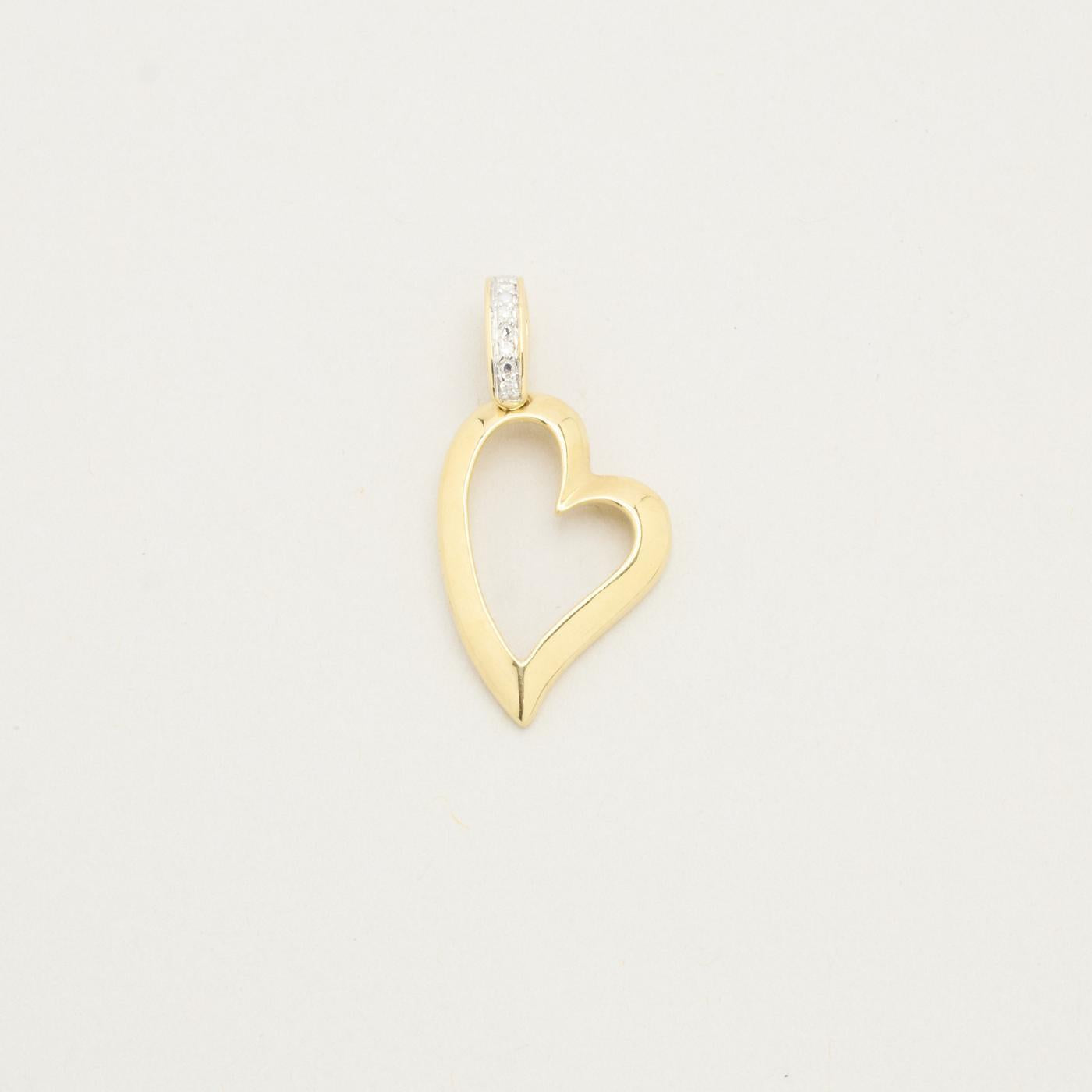 Hjerte vedhæng i 14K guld med diamanter (0,02 ct), 2,8 cm
