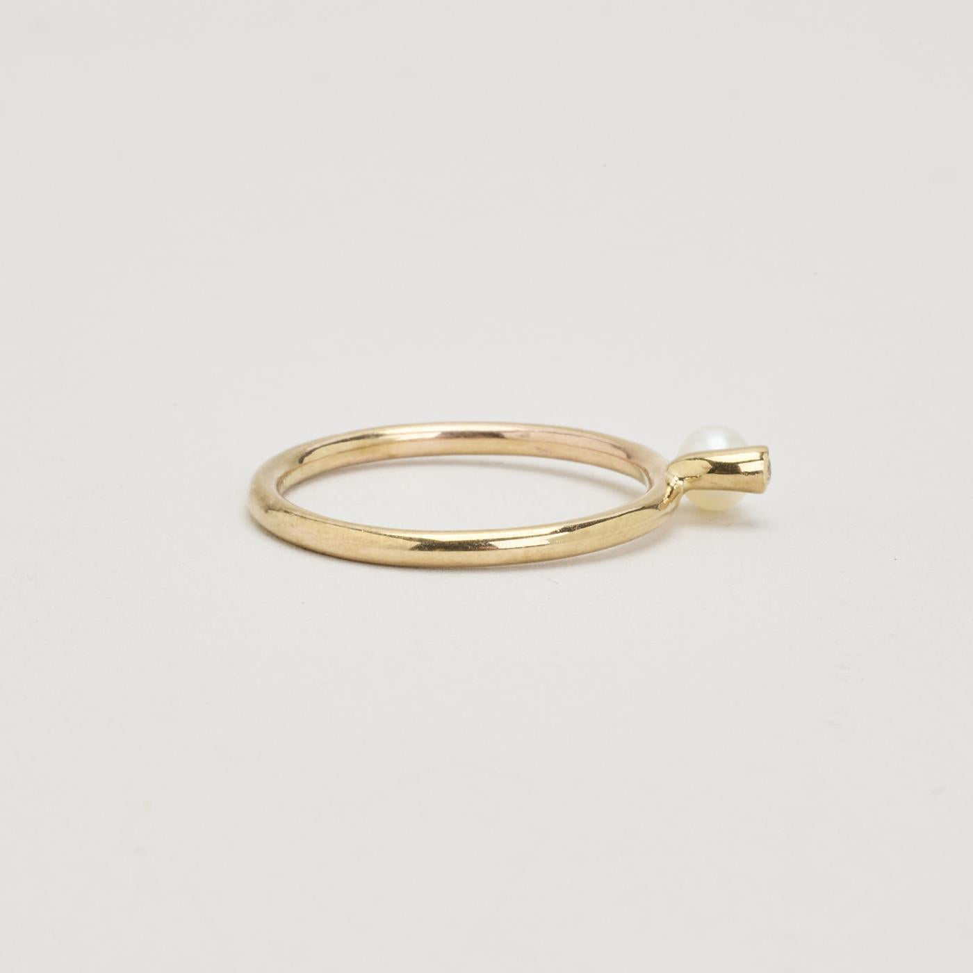 Perlering i 8 karat med Zirkonia og Perle str. 59