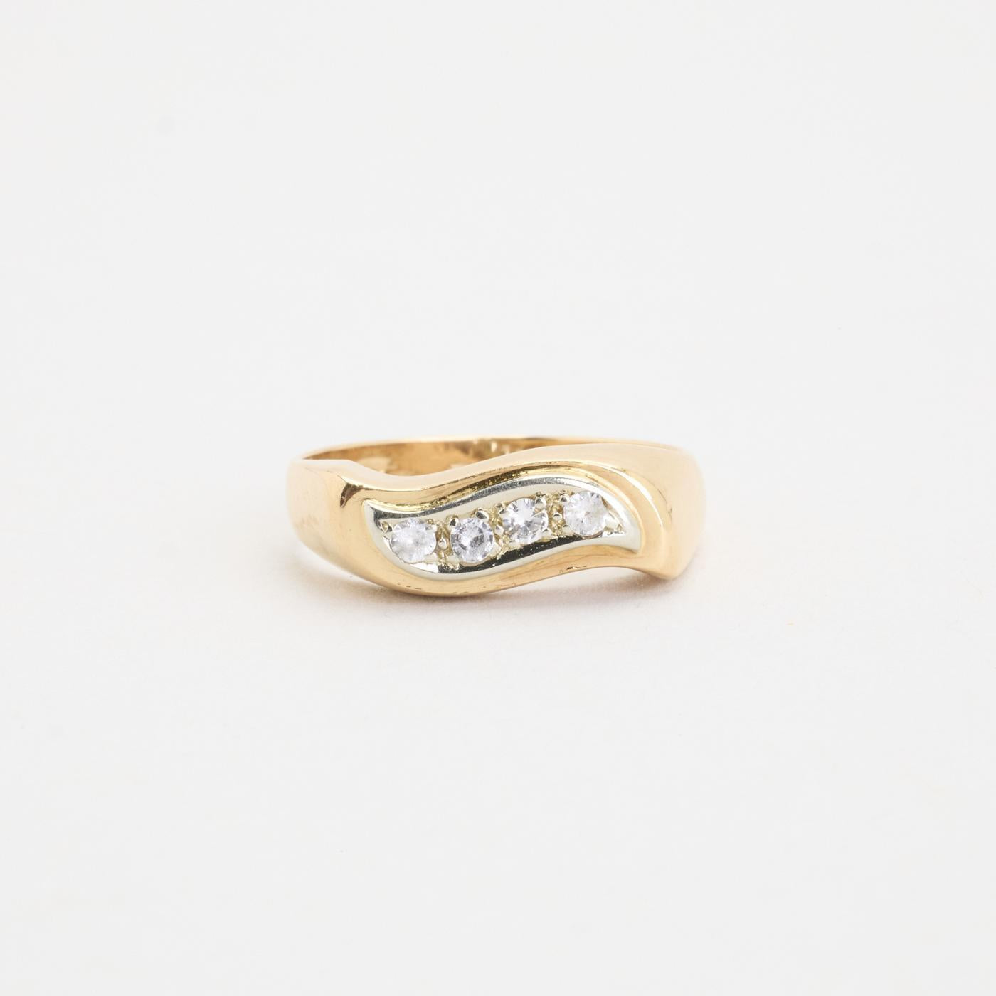 Femstensring i 18K guld med syntetiske spineller, Str. 50