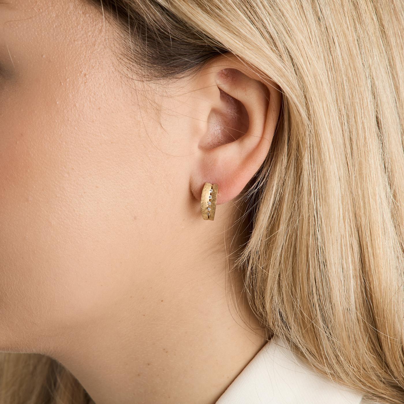 Creoler i 9K guld med hvide sten, 1.5 cm