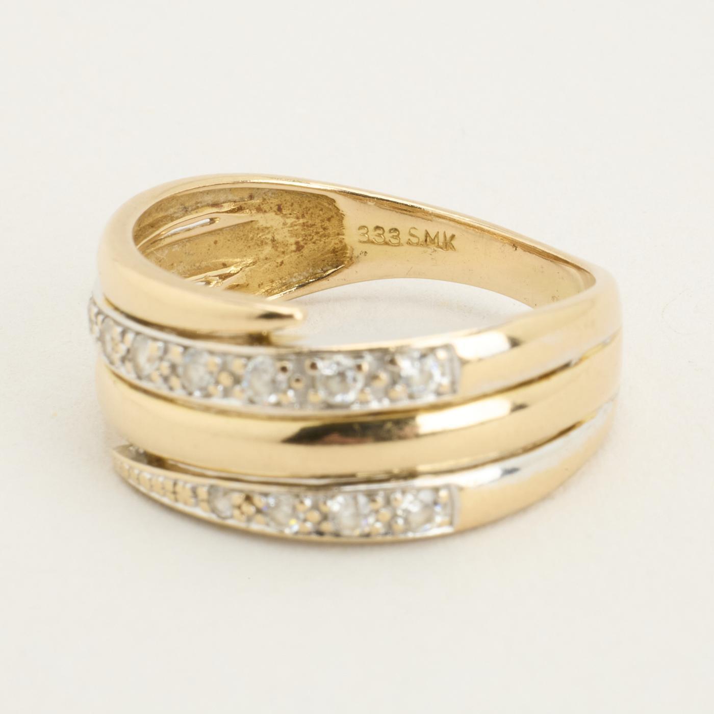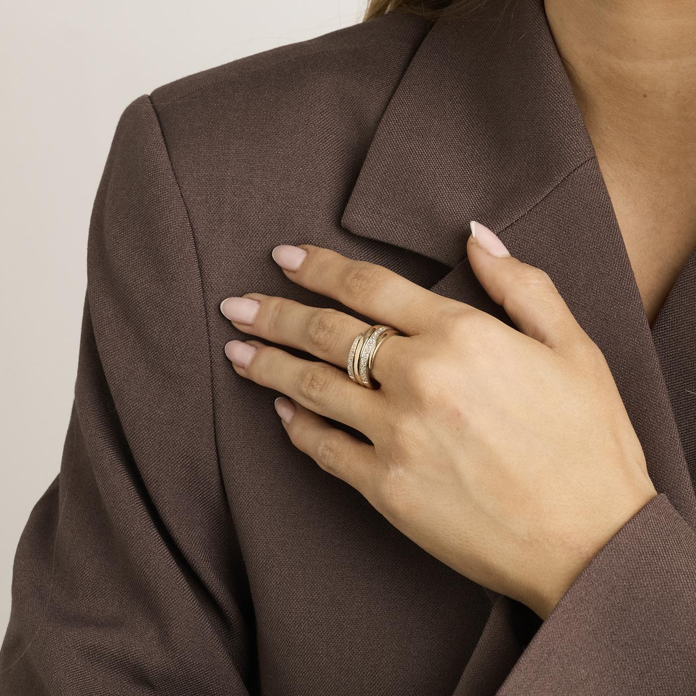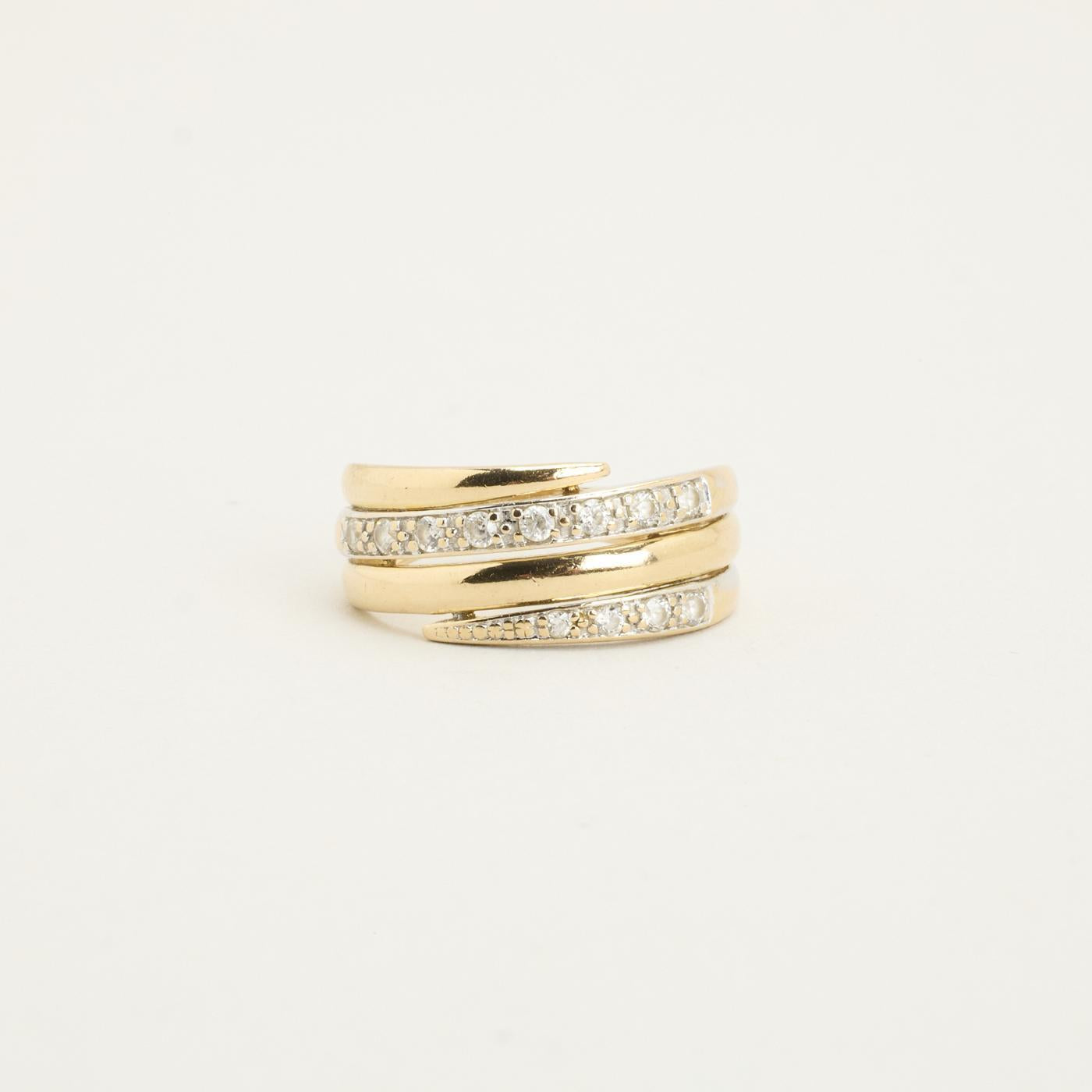 crossover-ring i 8K guld med zirkoniaer, Str. 55