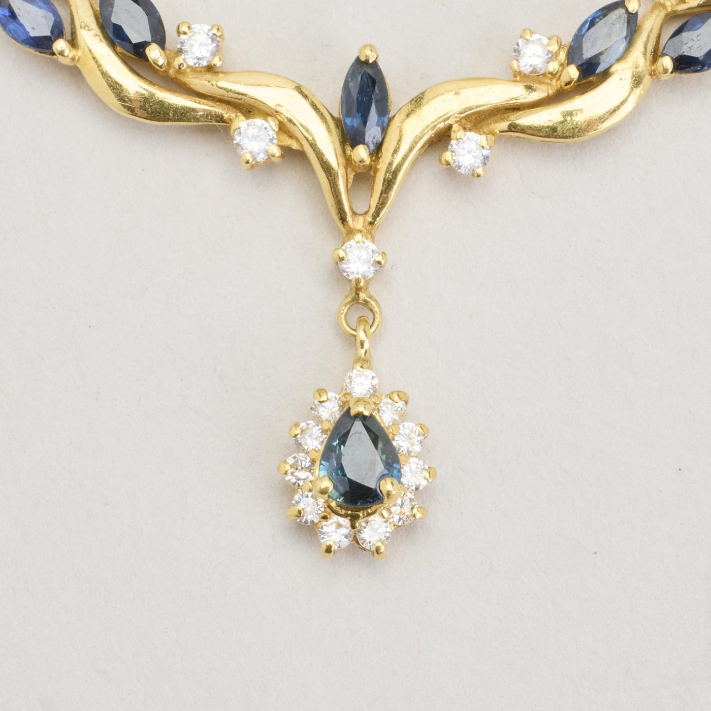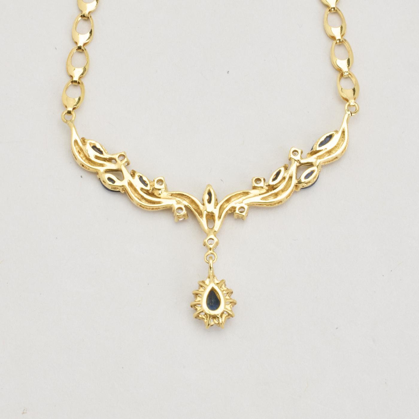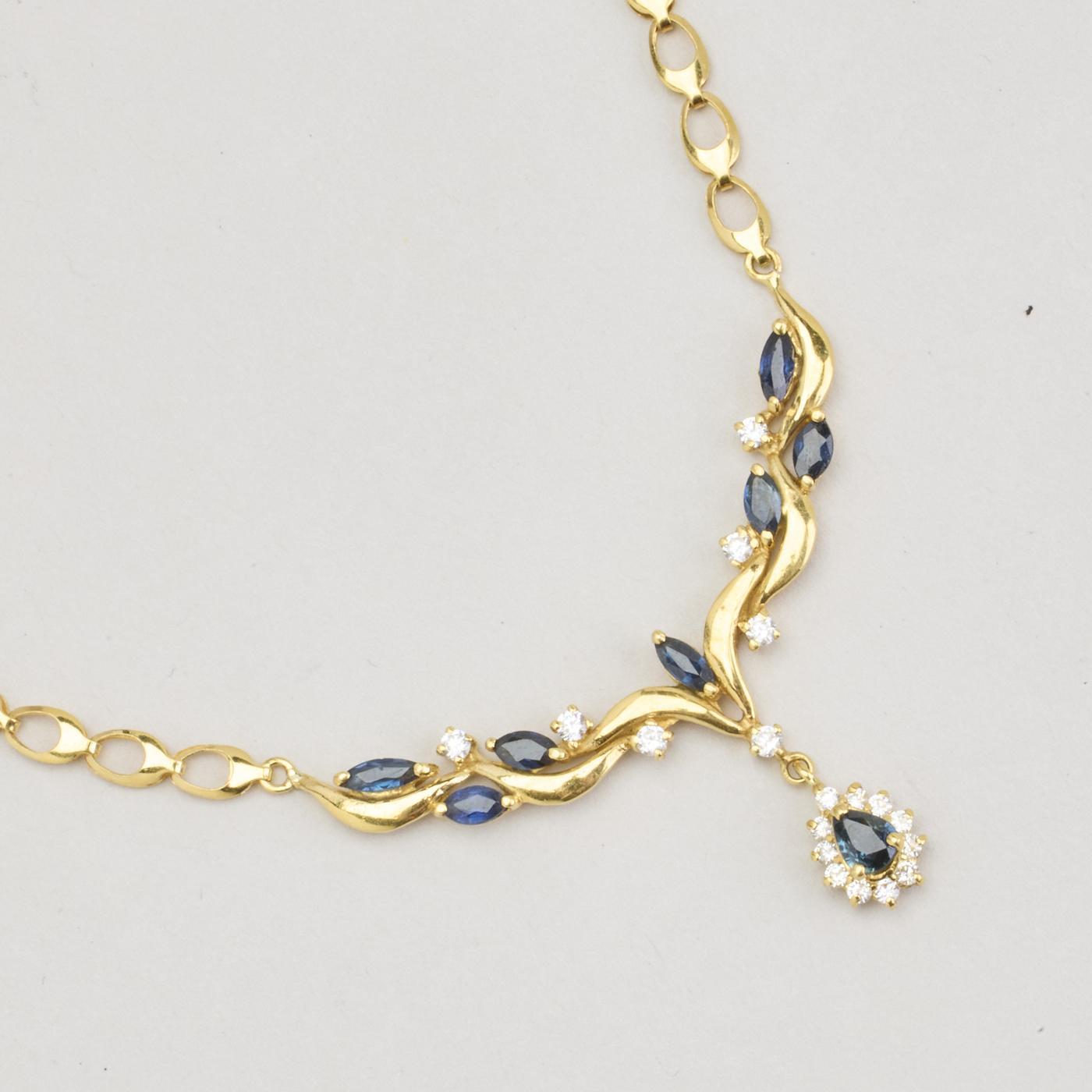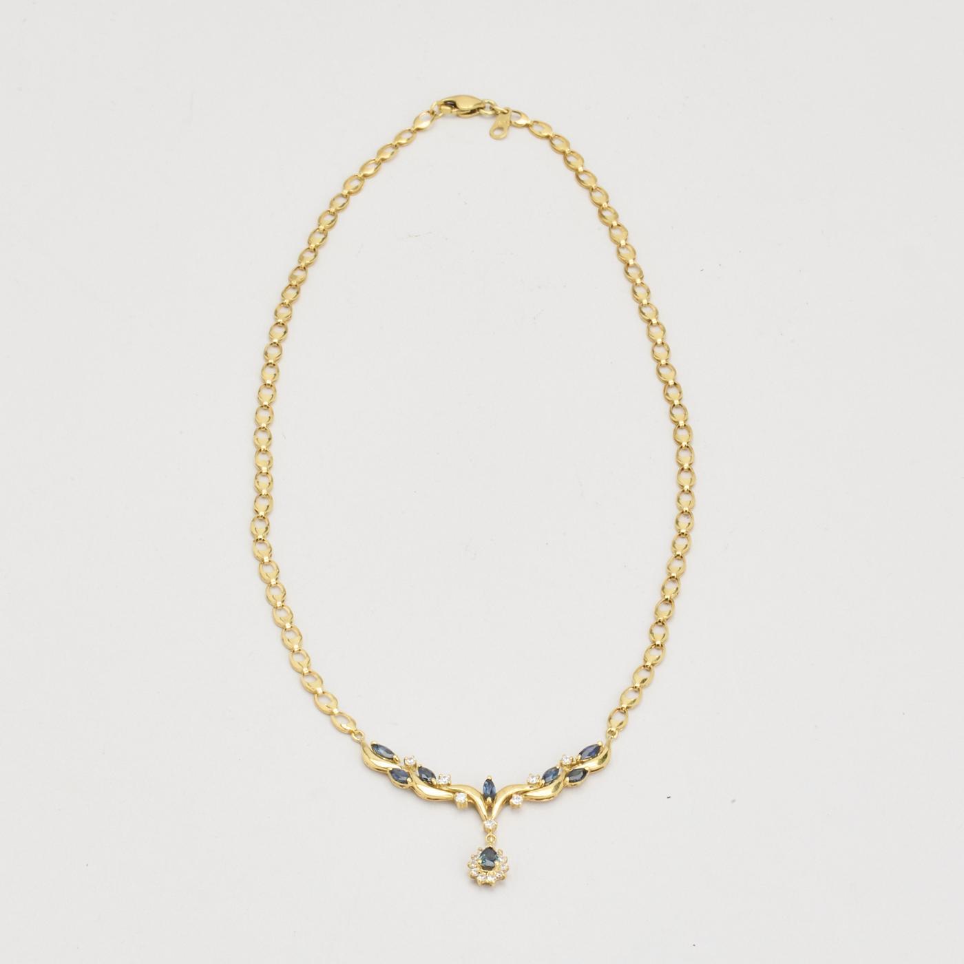 Halskæde i 18 karat med Zirkonia og Safir, 42 cm
