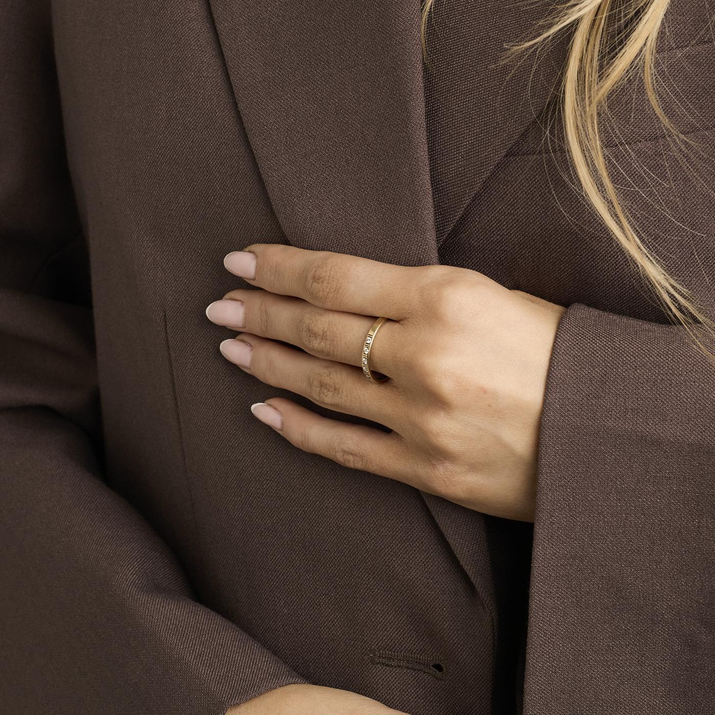 Alliancering i 14K guld med diamanter (0,13 ct), Str. 59