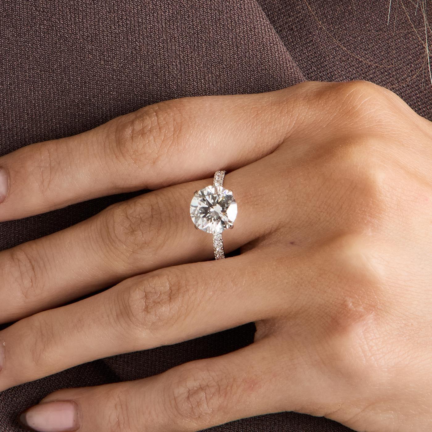 Solitaire-ring i 18K hvidguld, med diamant (3,52 ct), Str. 54