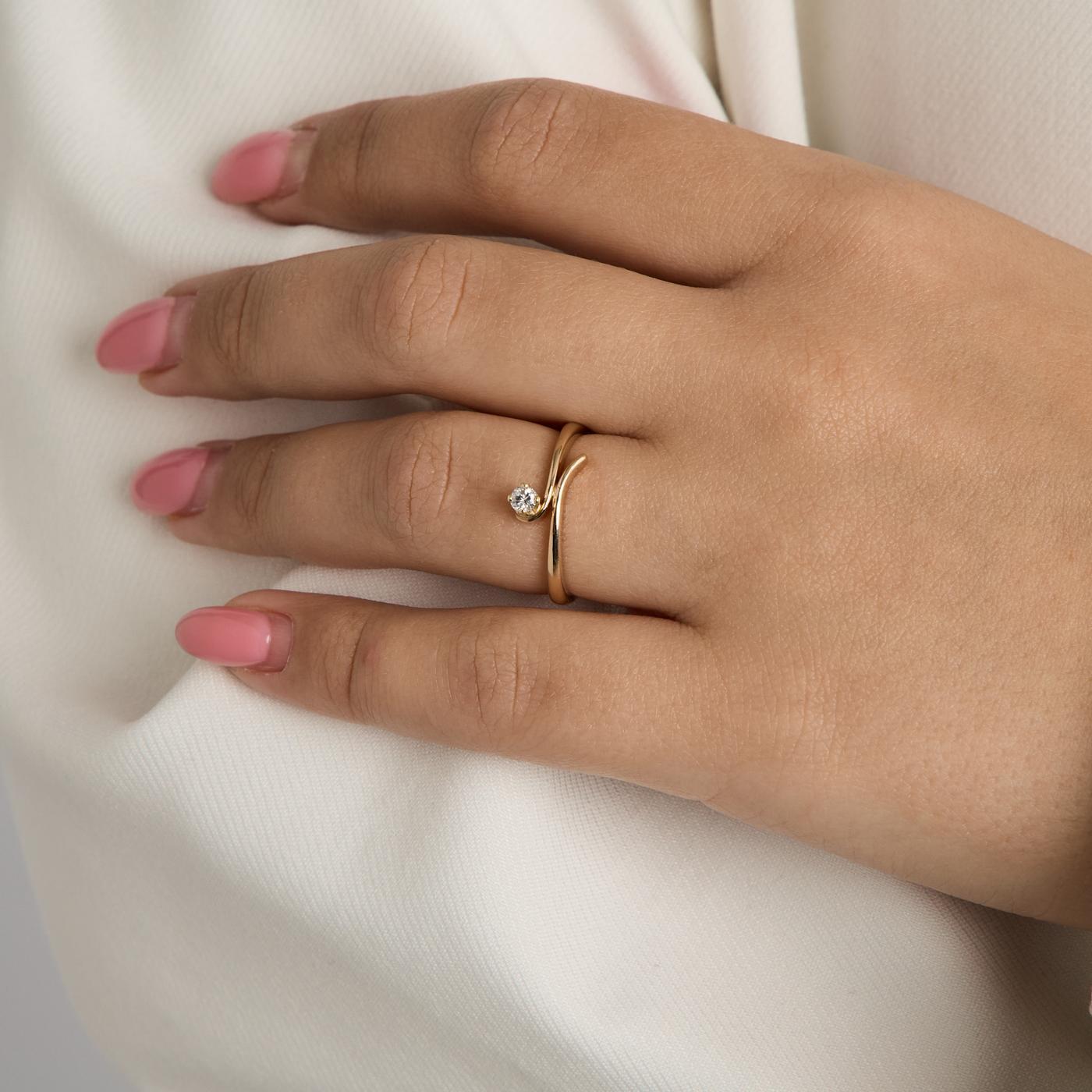 Crossover ring i 14K guld med en diamant (0.1 ct), Str. 54