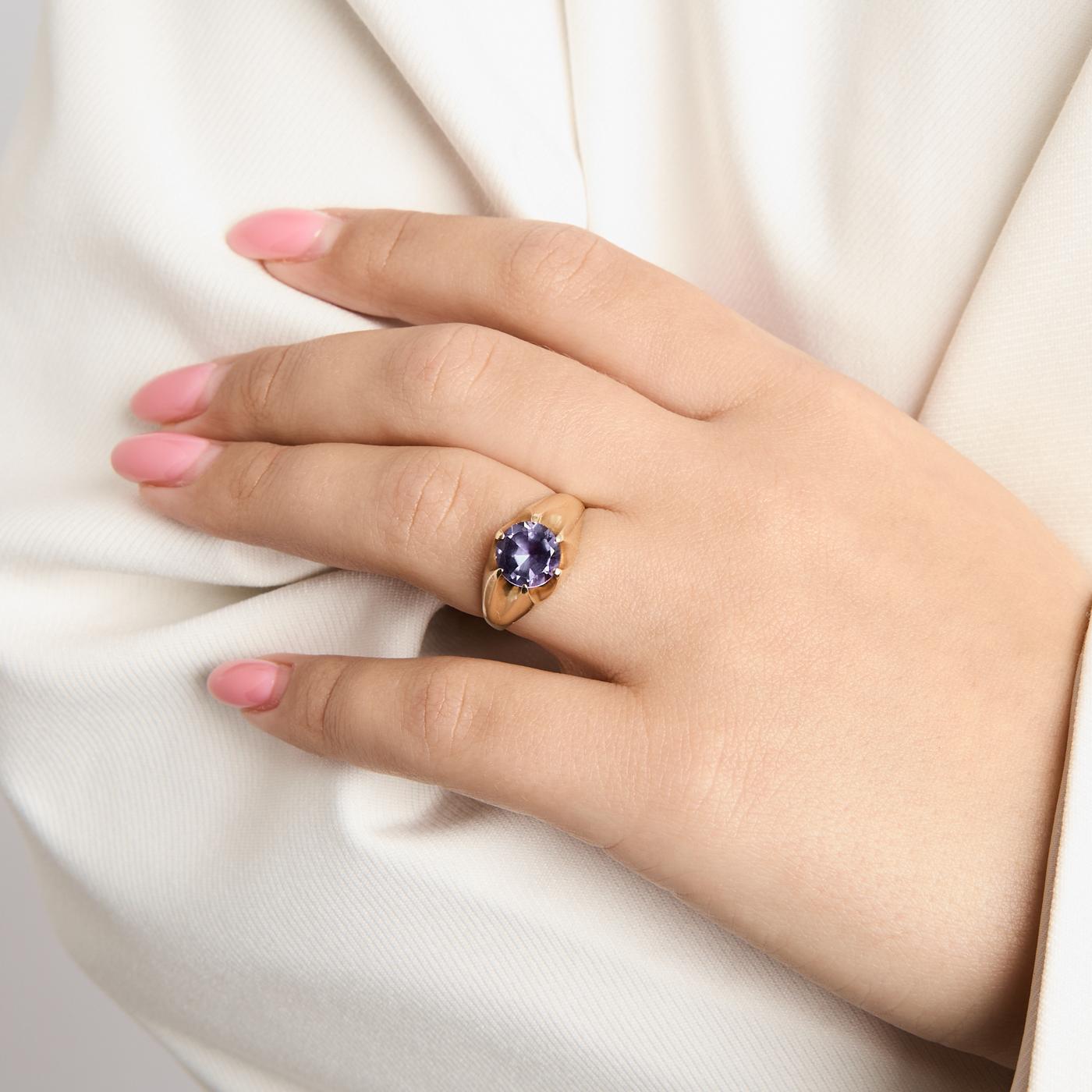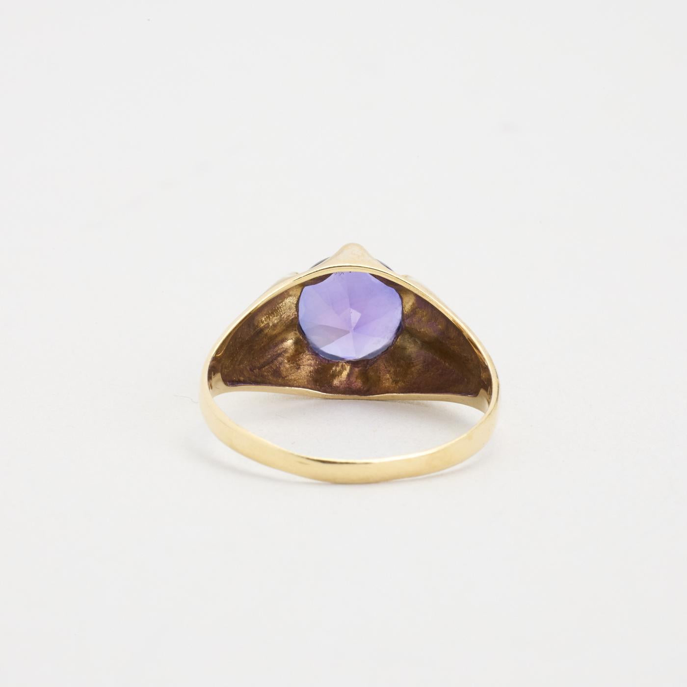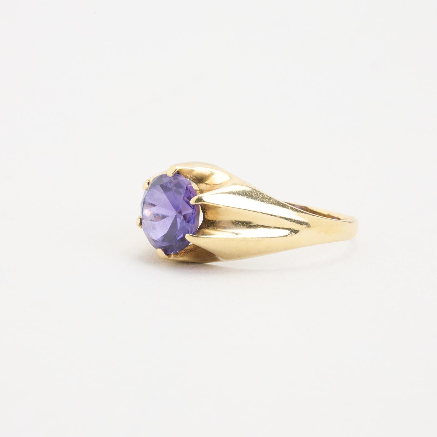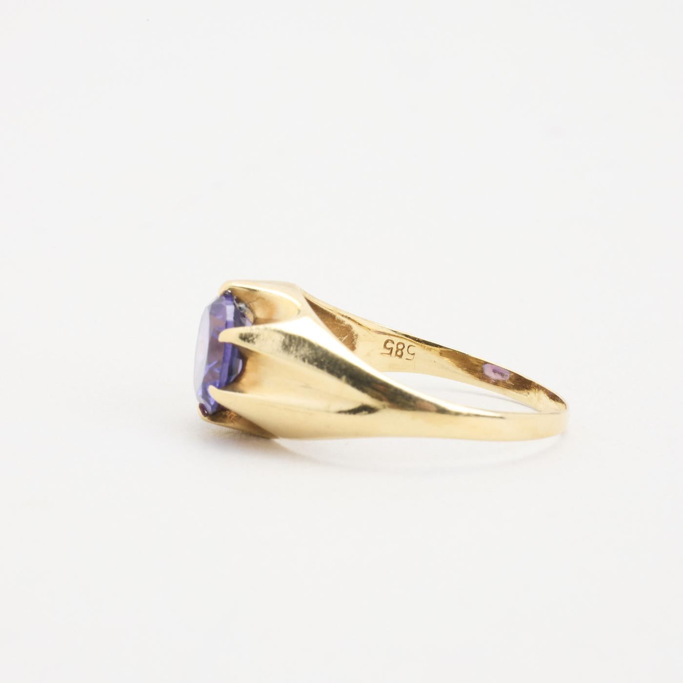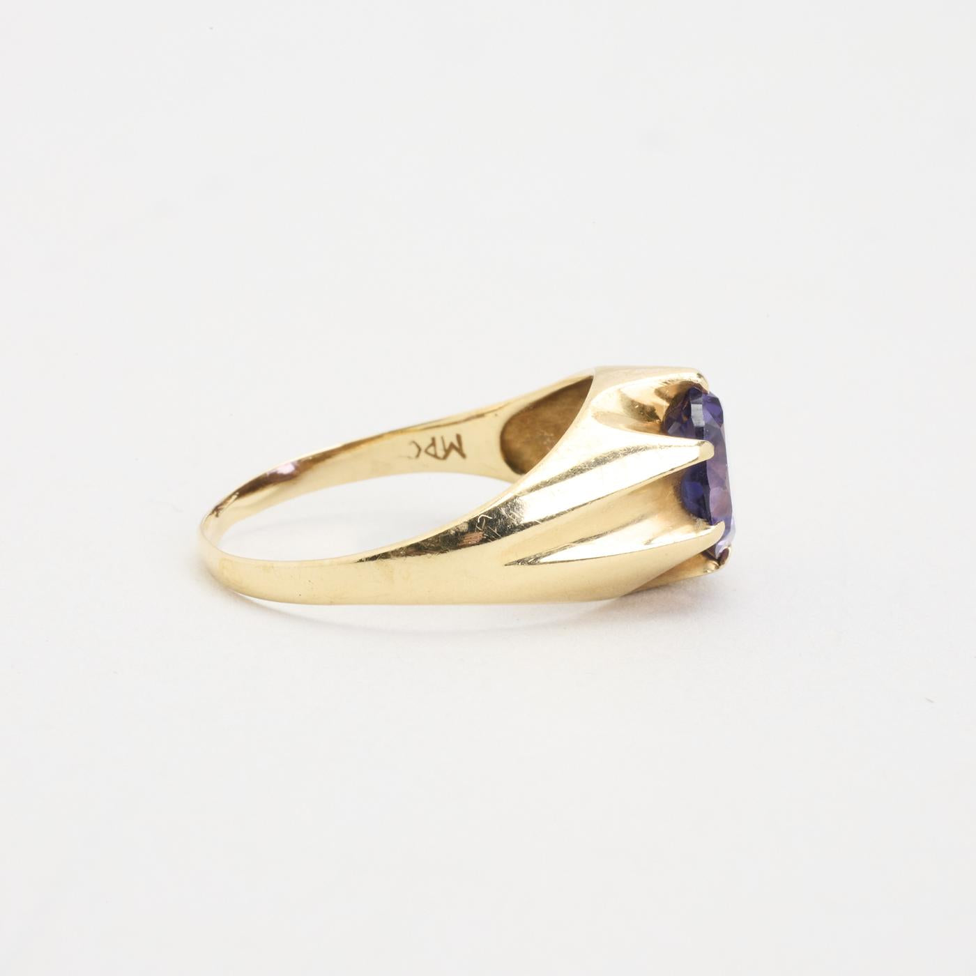 Signet ring i 14K guld med syntetisk safir, Str. 57