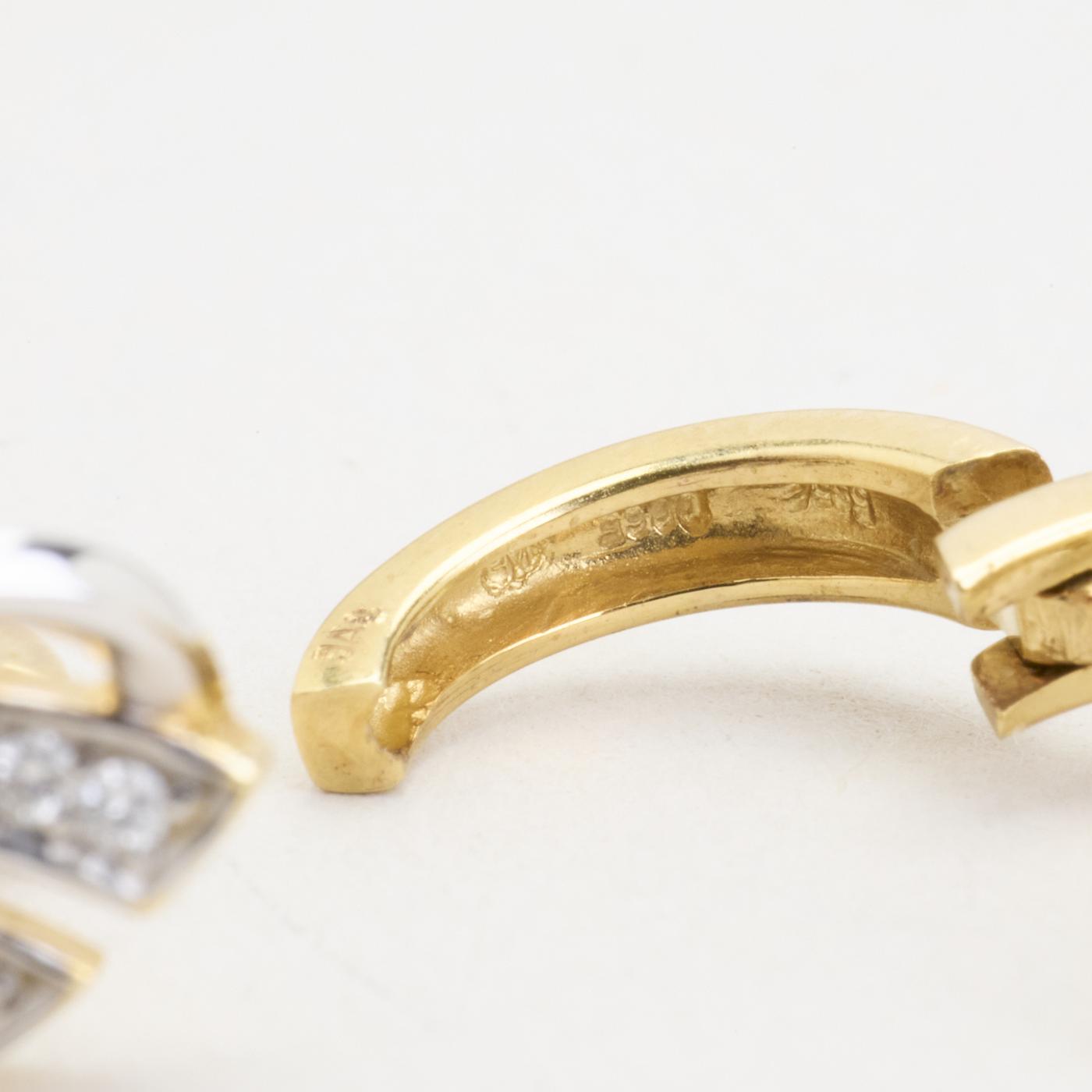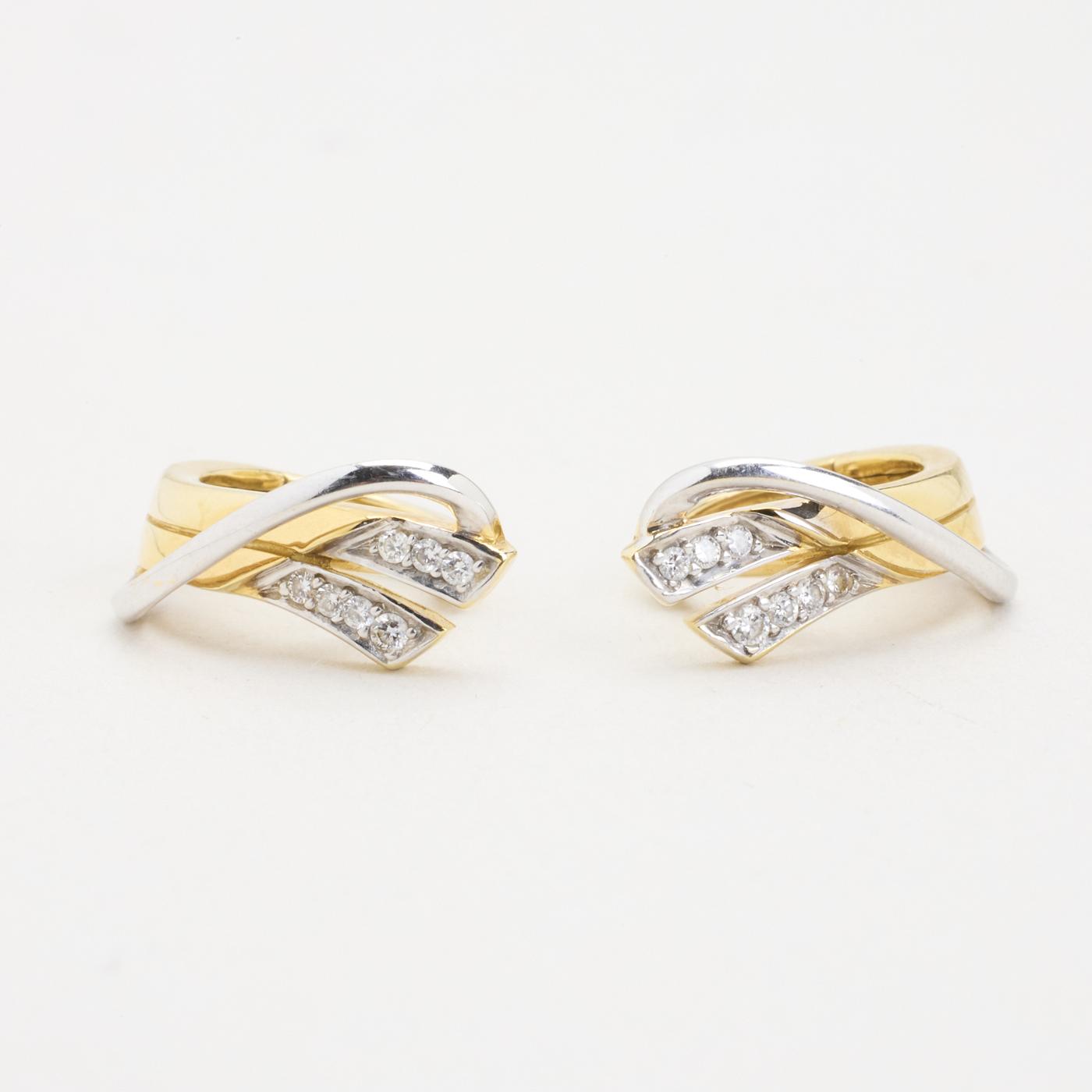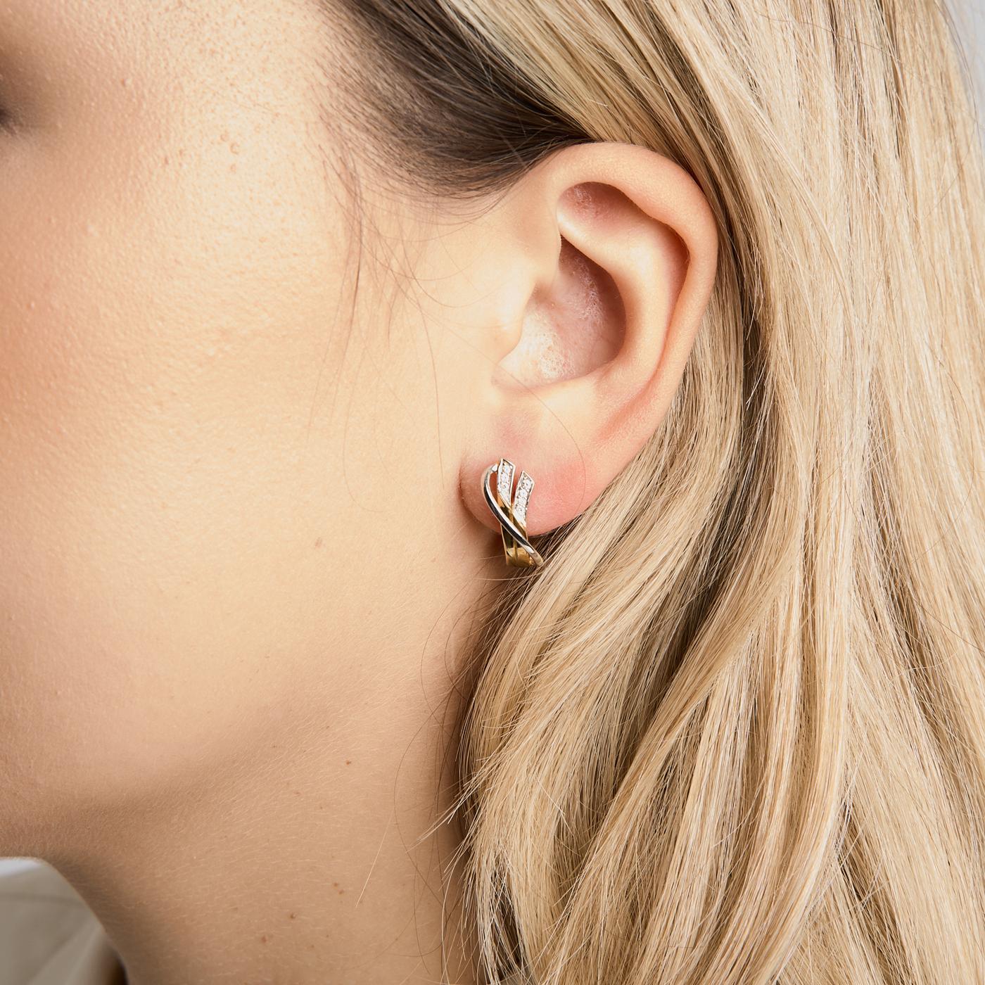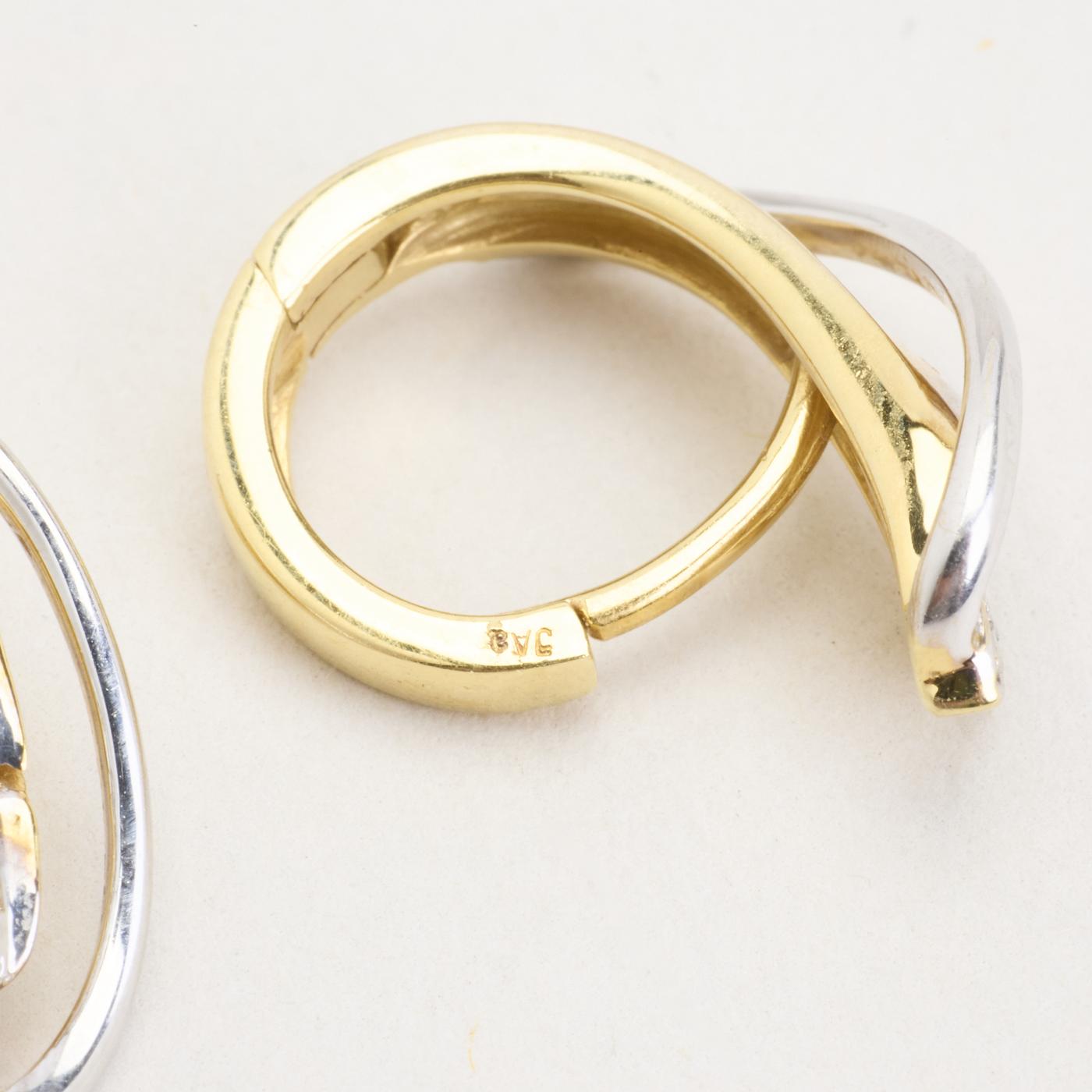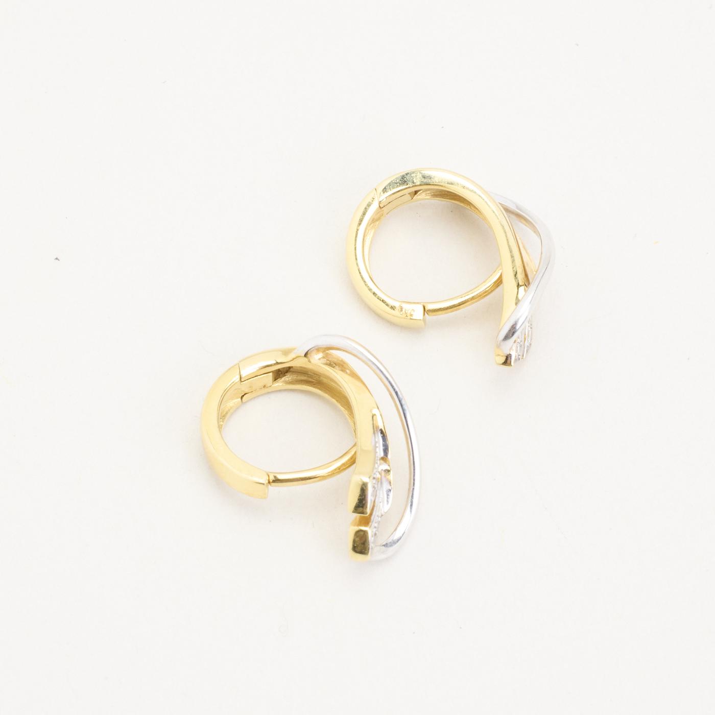 Creoler i 14K guld og hvidguld, med diamanter (0,07 ct), 1,8 cm