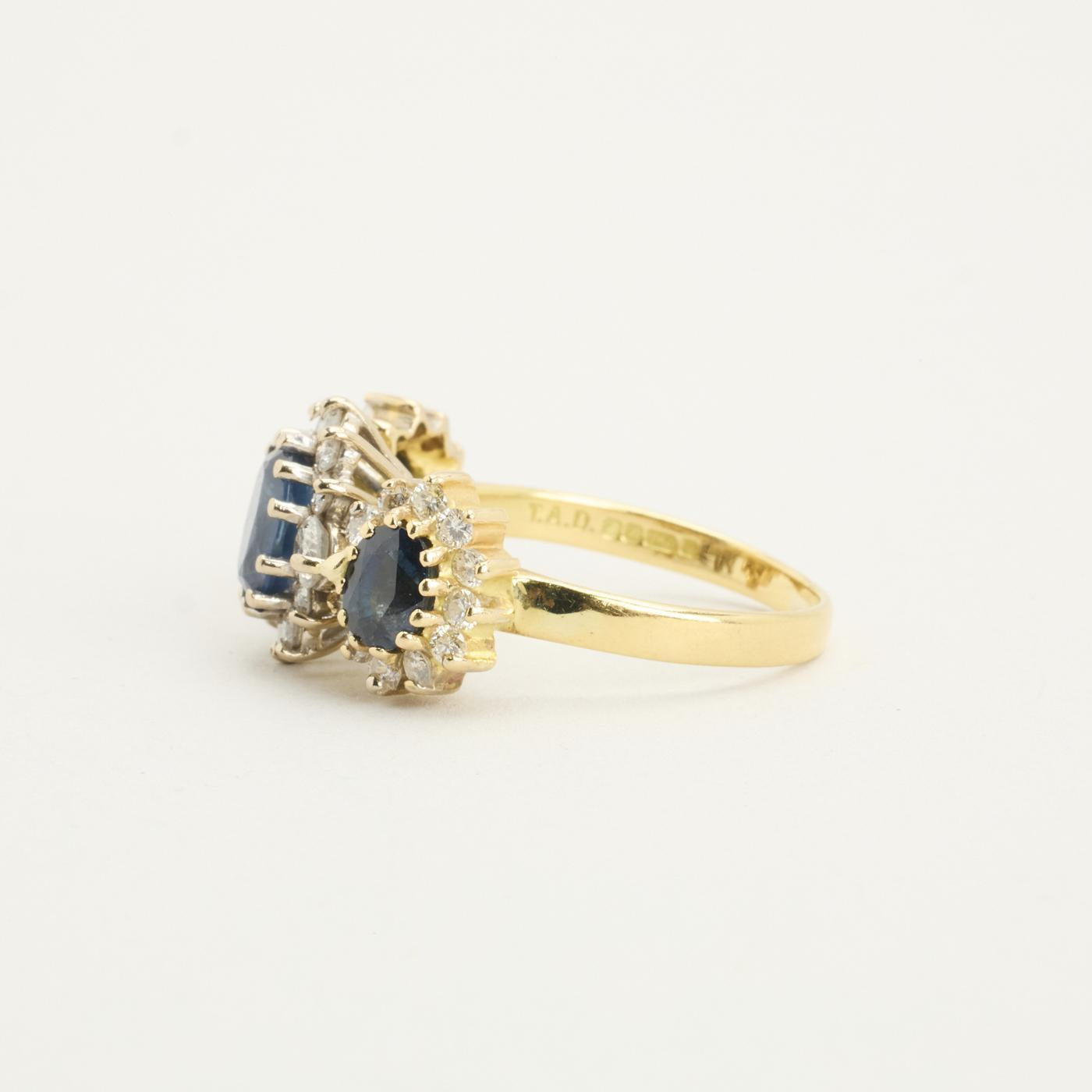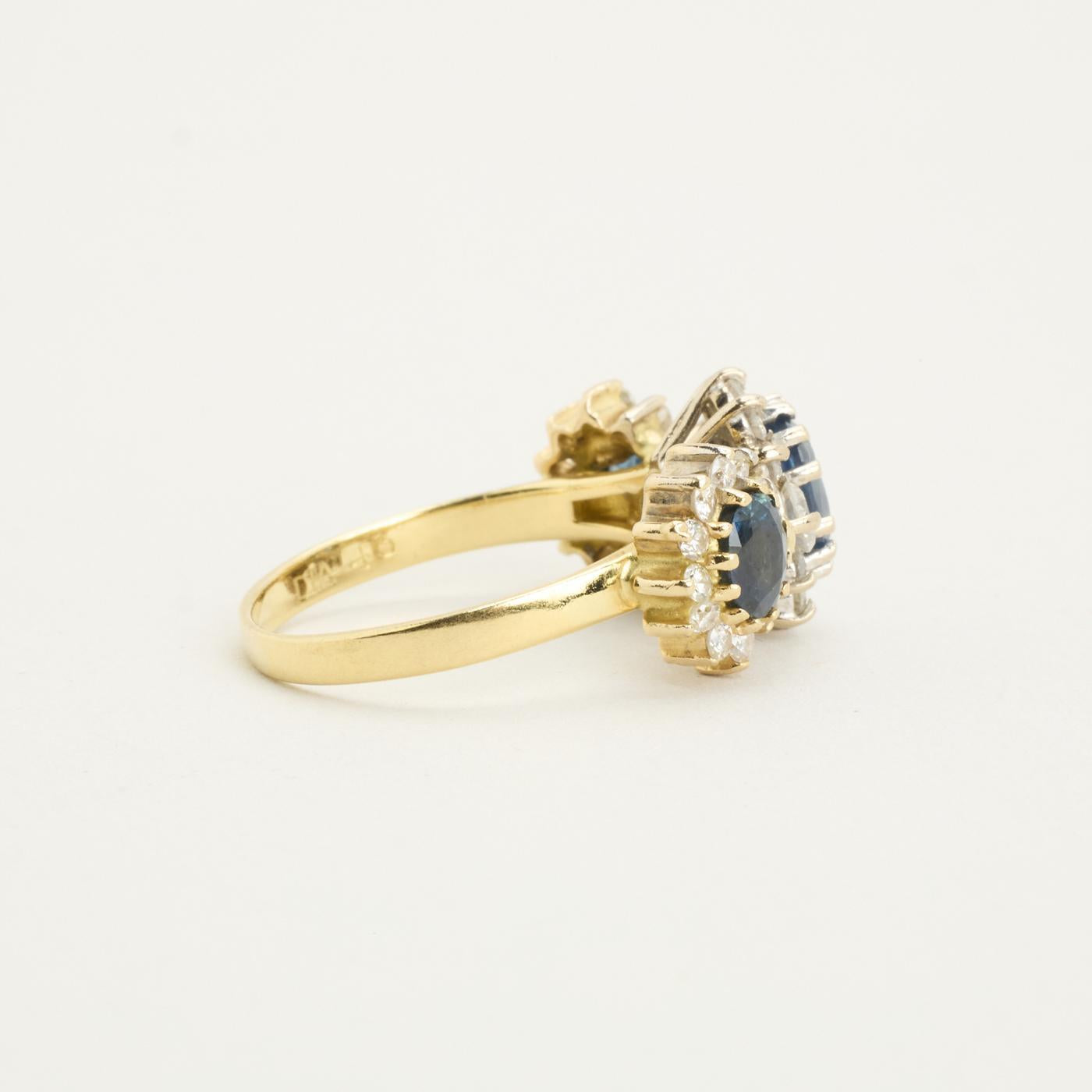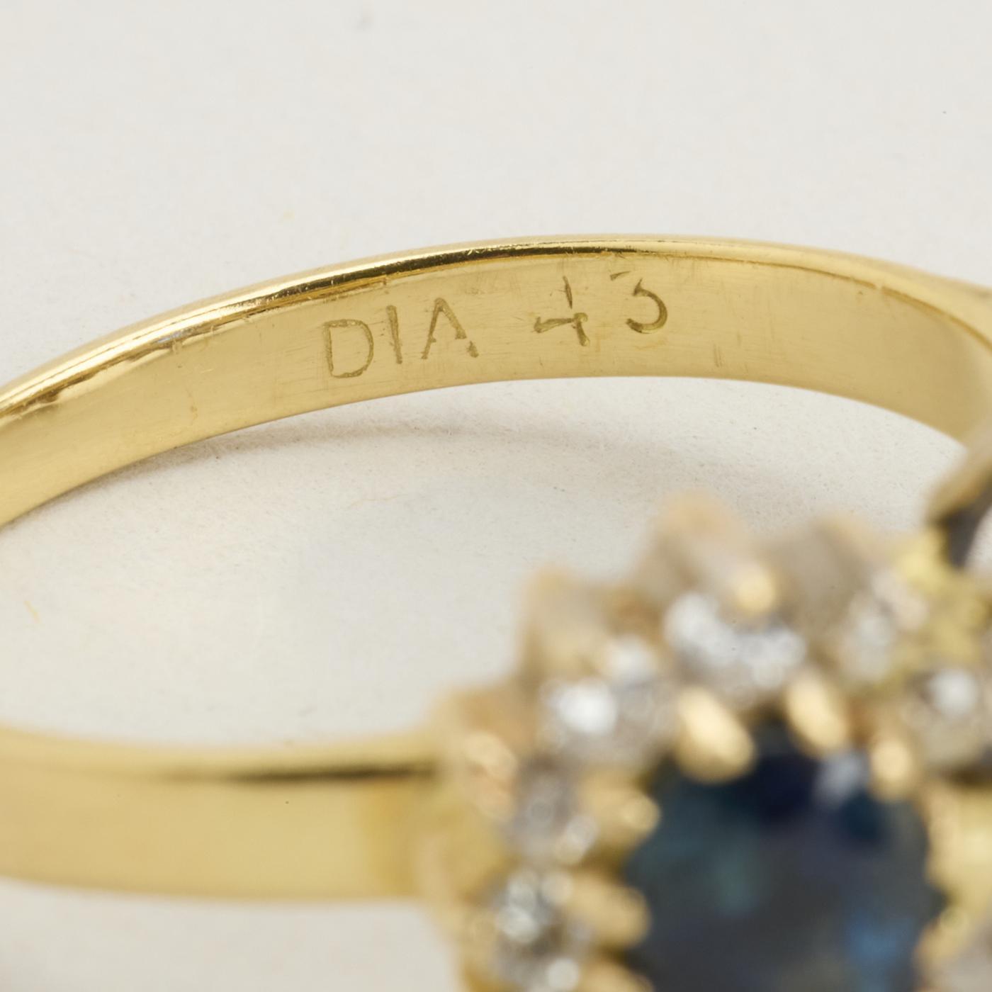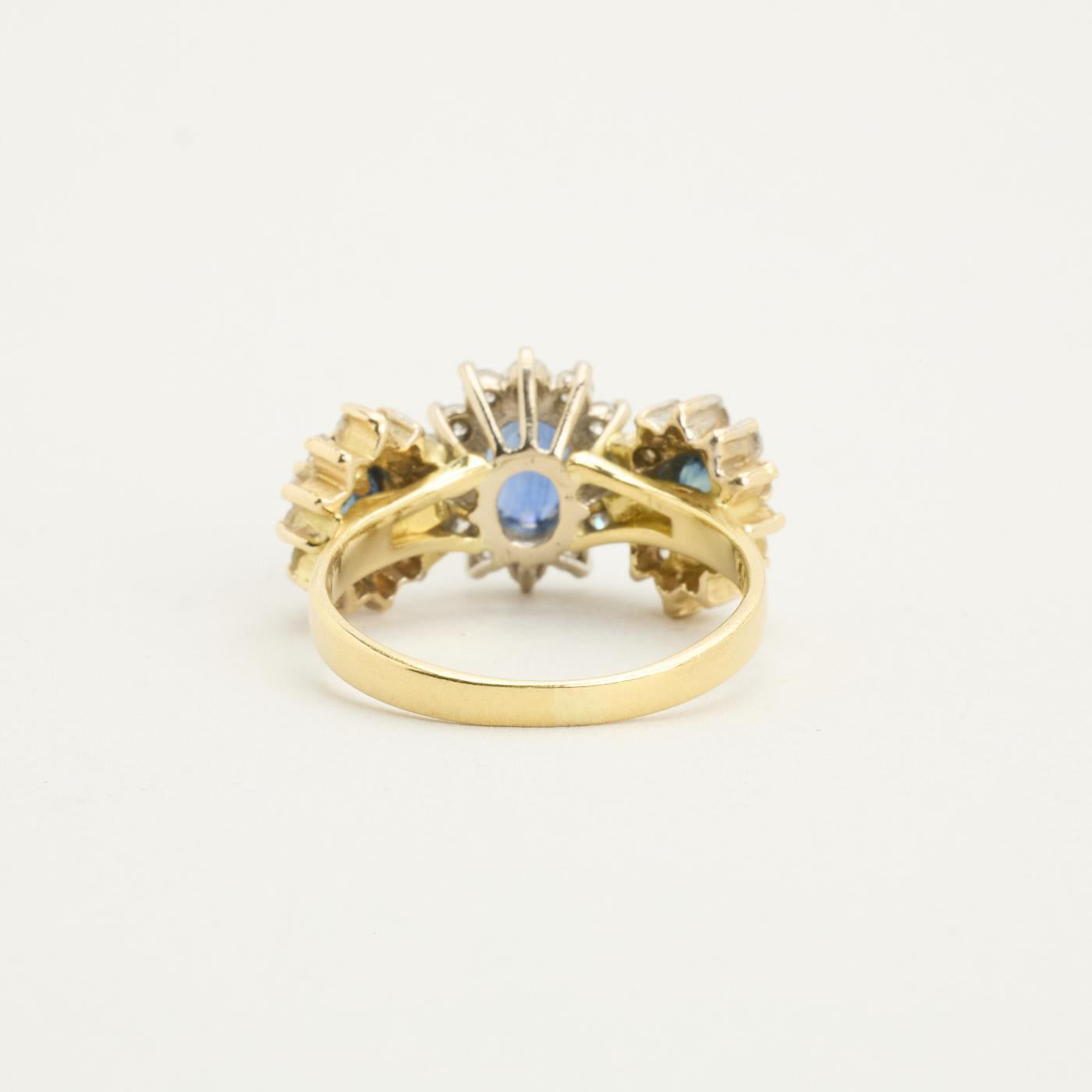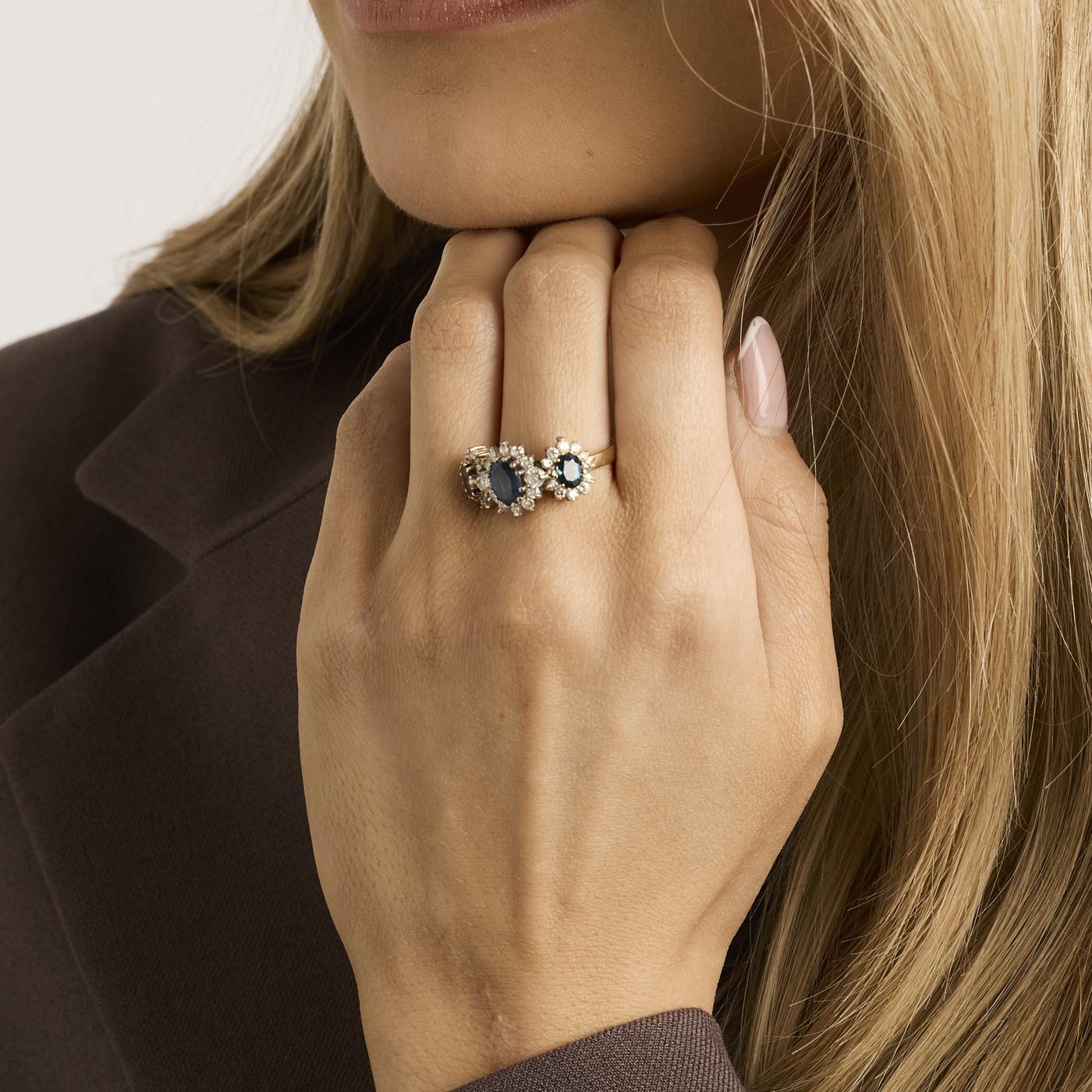 Rosetring i 18K guld, med safirer og diamanter (0,83 ct), Str. 53