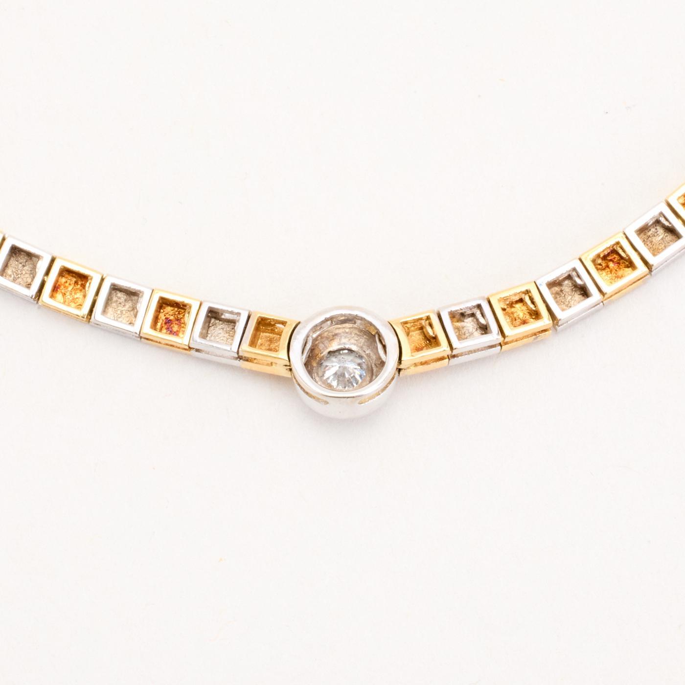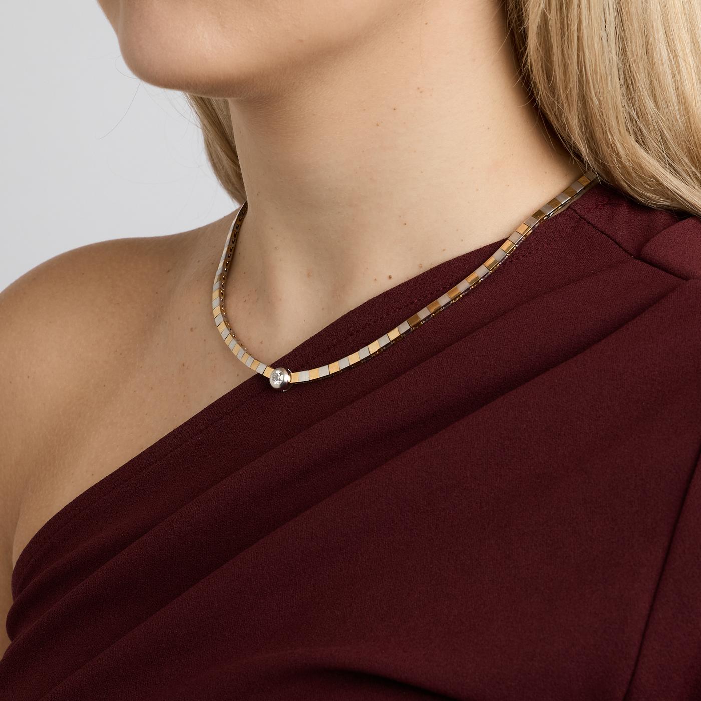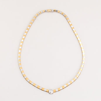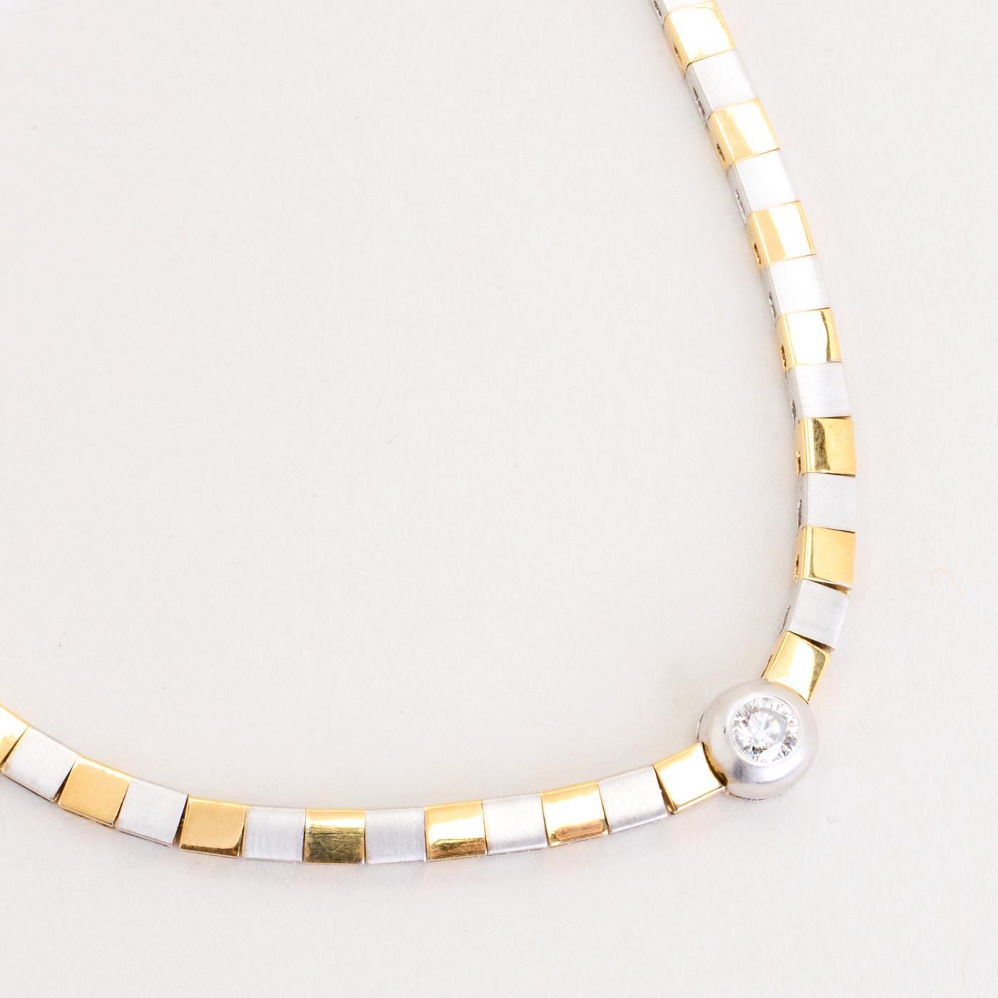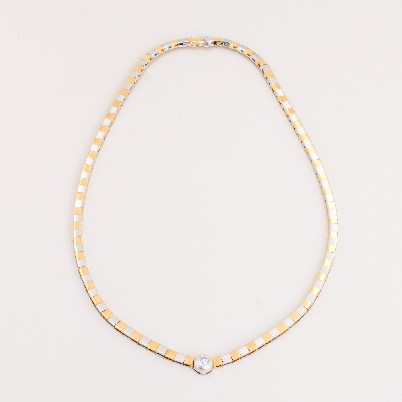 Collier i 14K guld og hvidguld med en diamant (0.27 ct), 44 cm