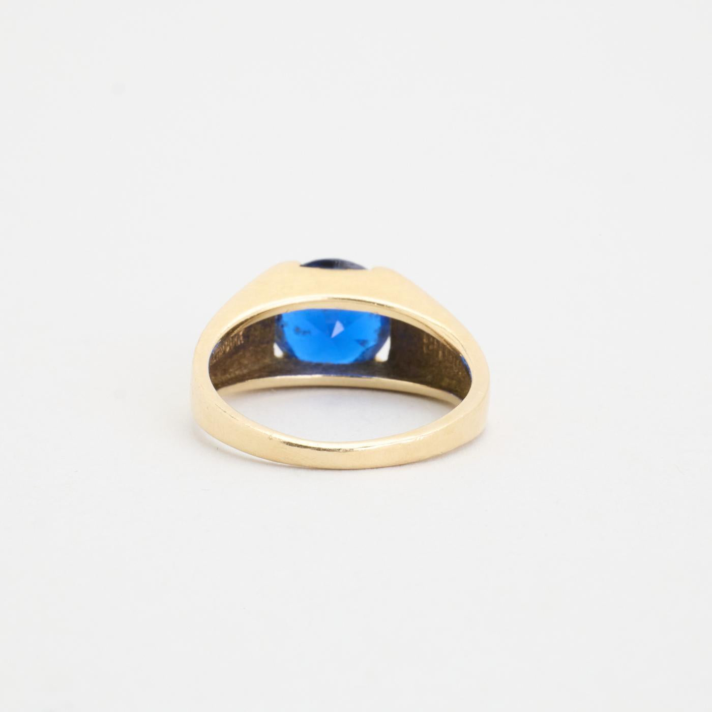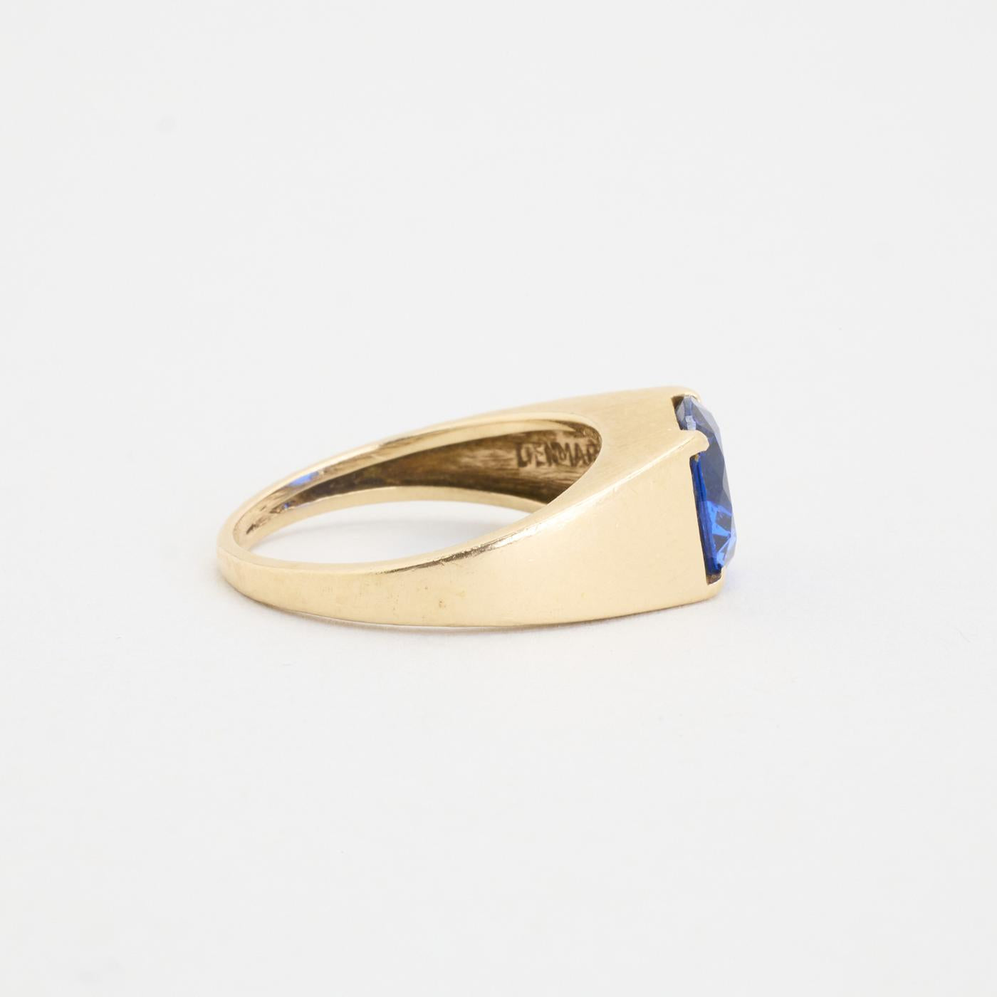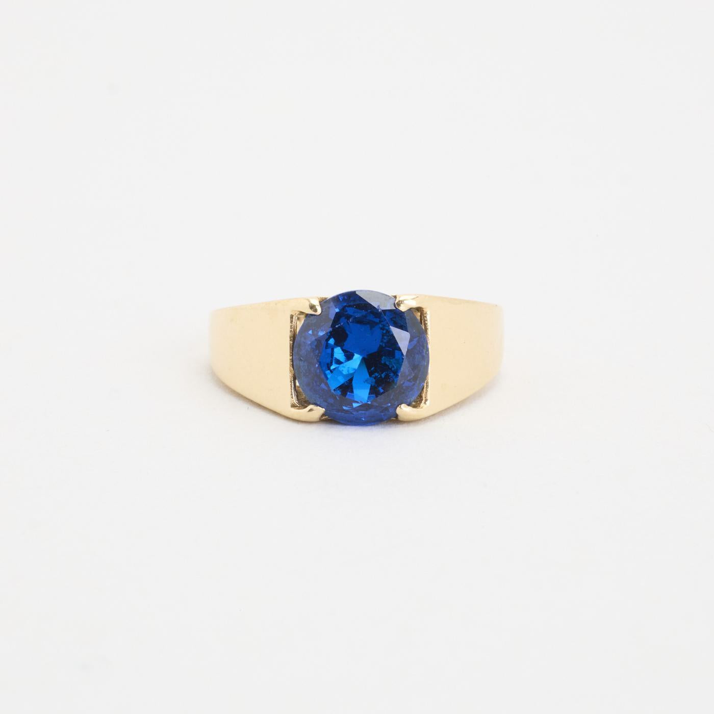 Signet ring i 14K guld med syntetisk spinel, Str. 50