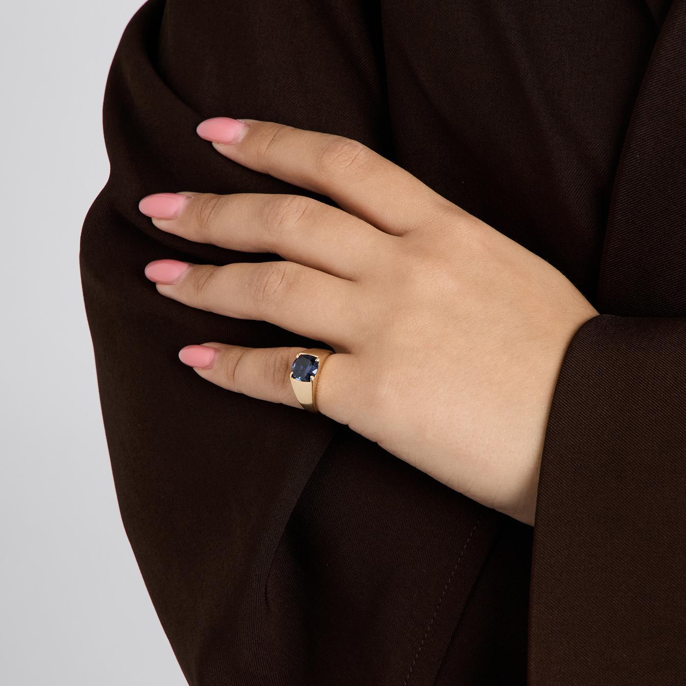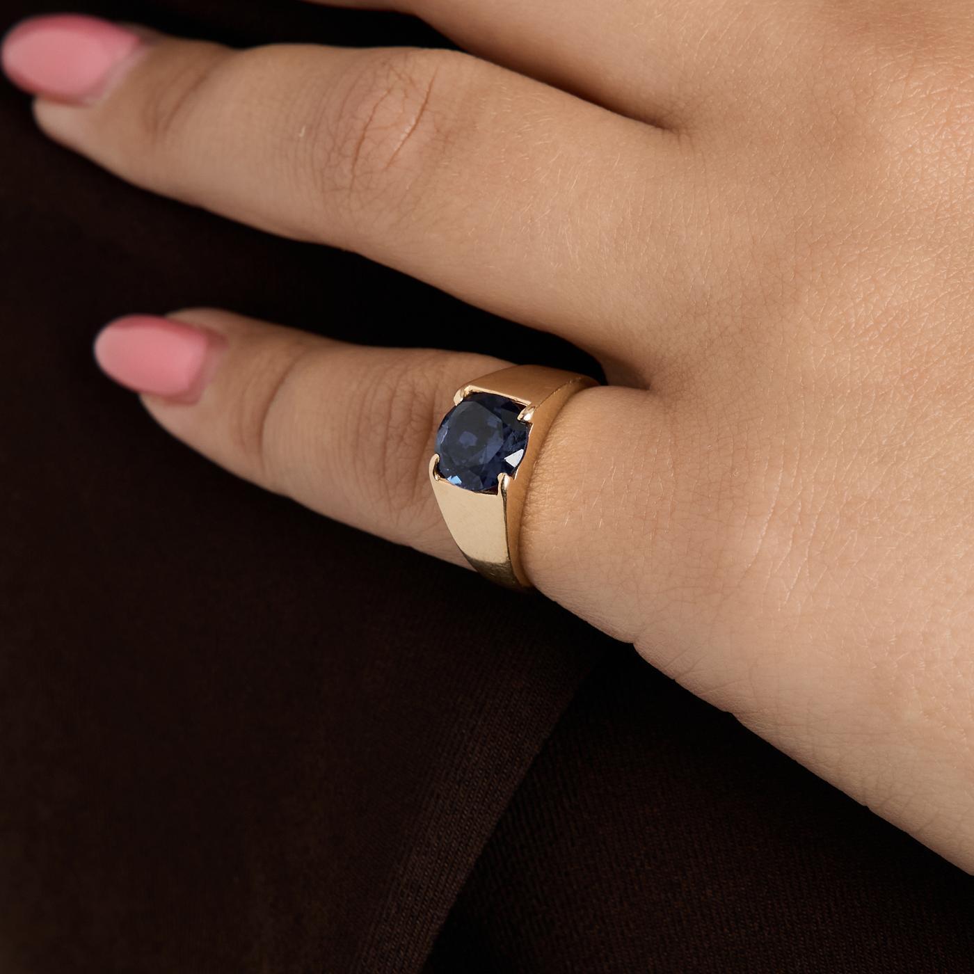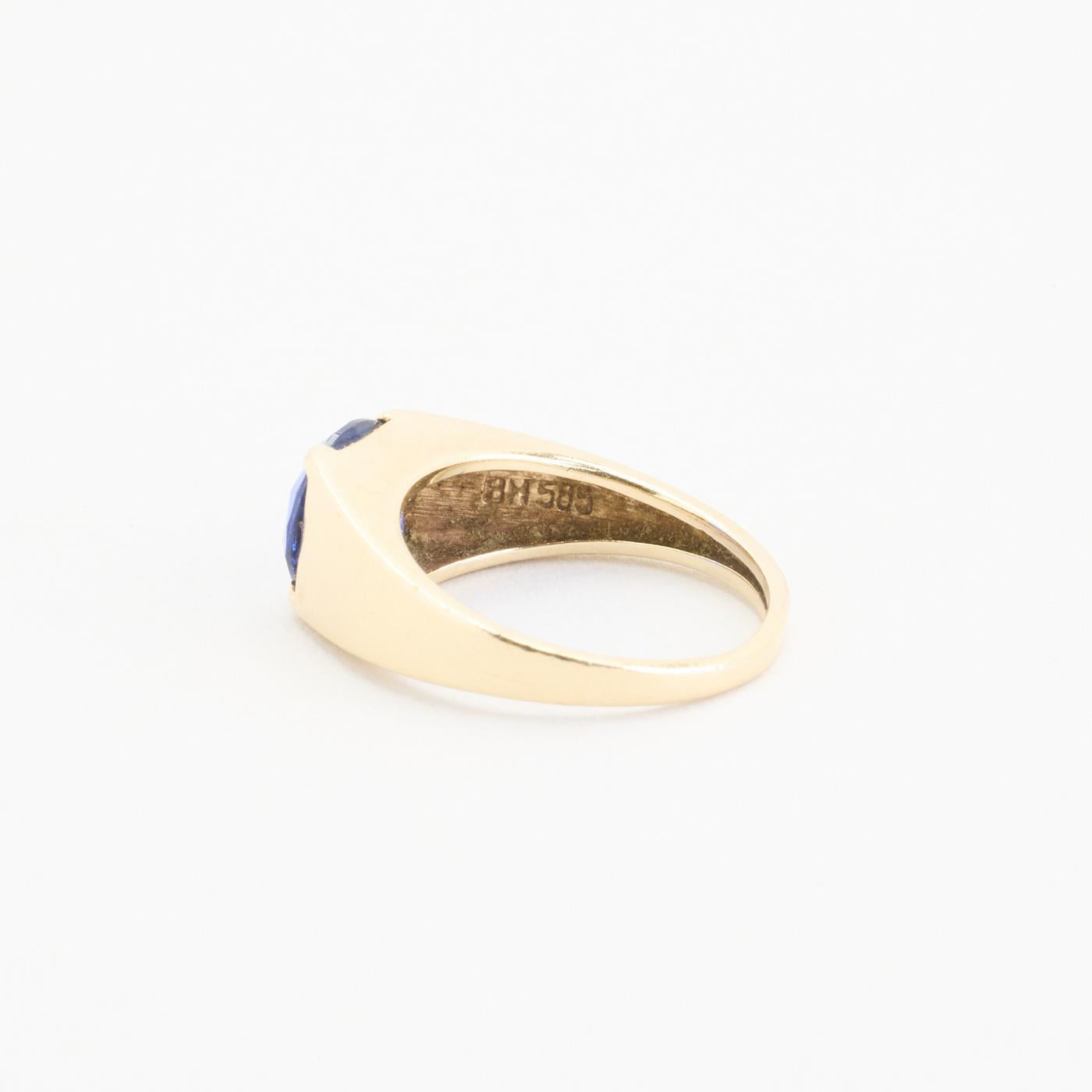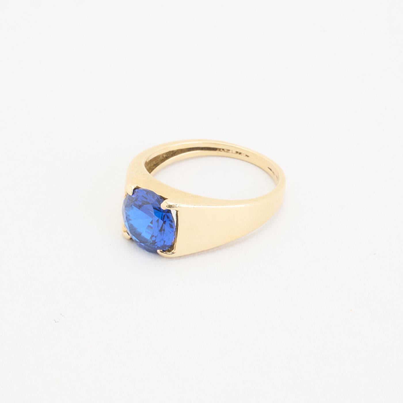 Signet ring i 14K guld med syntetisk spinel, Str. 50