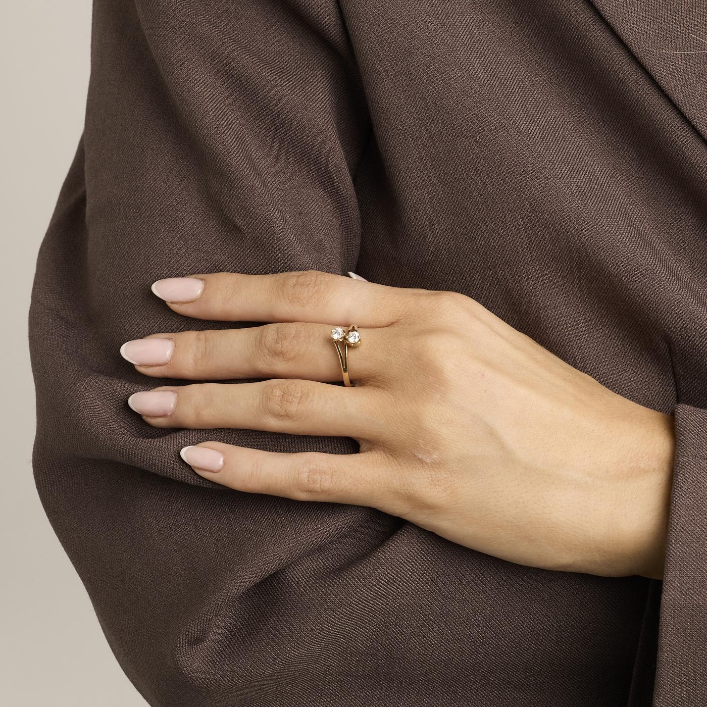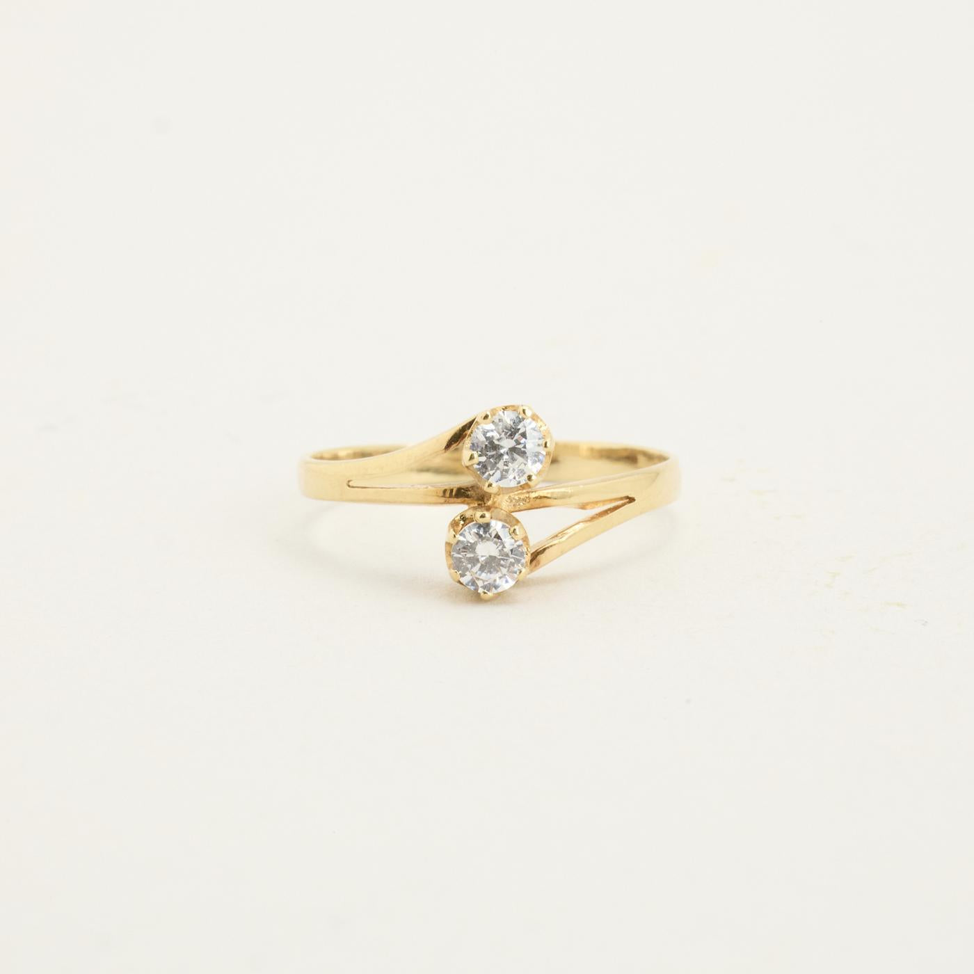 Toi et moi-ring i 14K guld med zirkonia, Str. 56