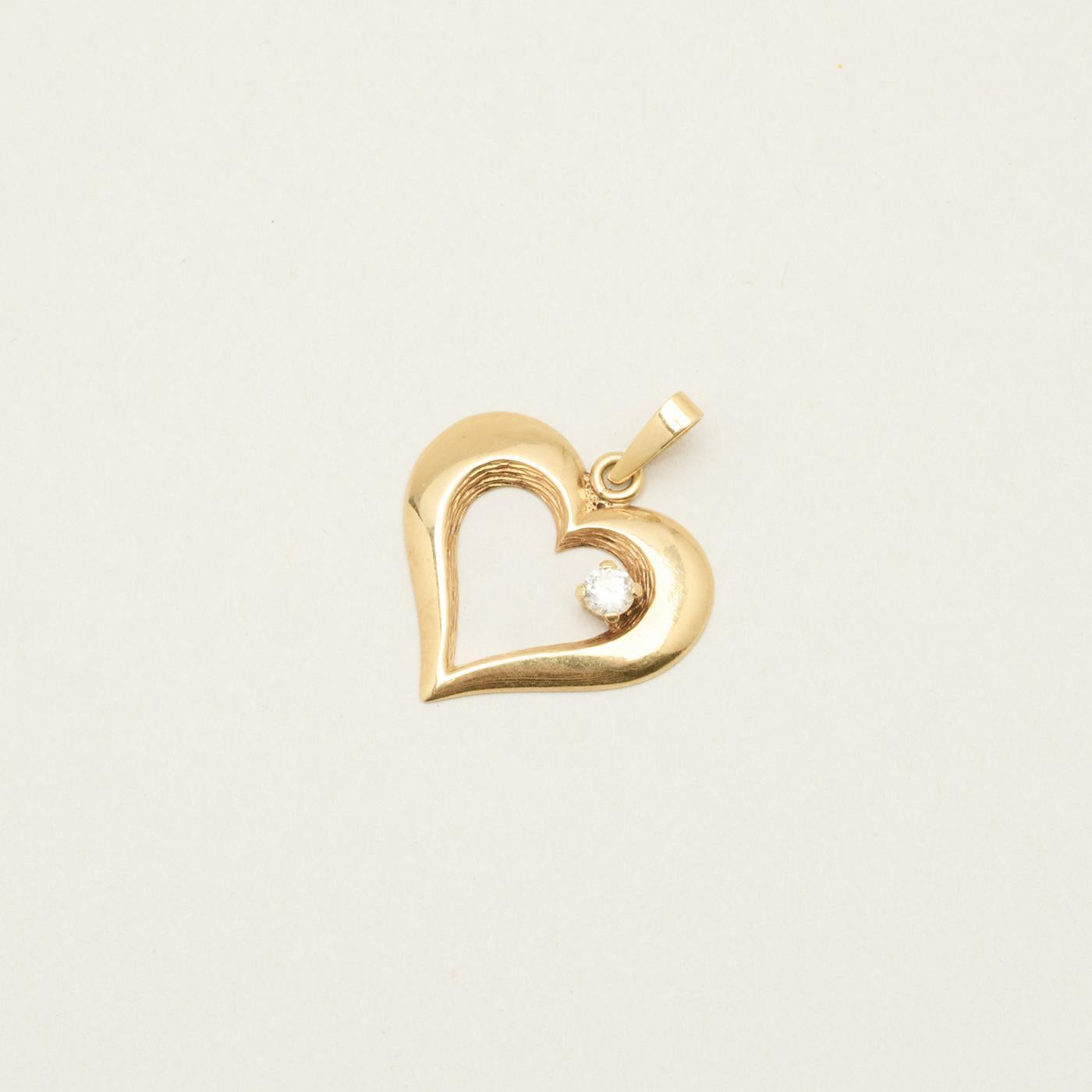 Hjerte vedhæng i 14K guld med zirkonia, 2,3 cm