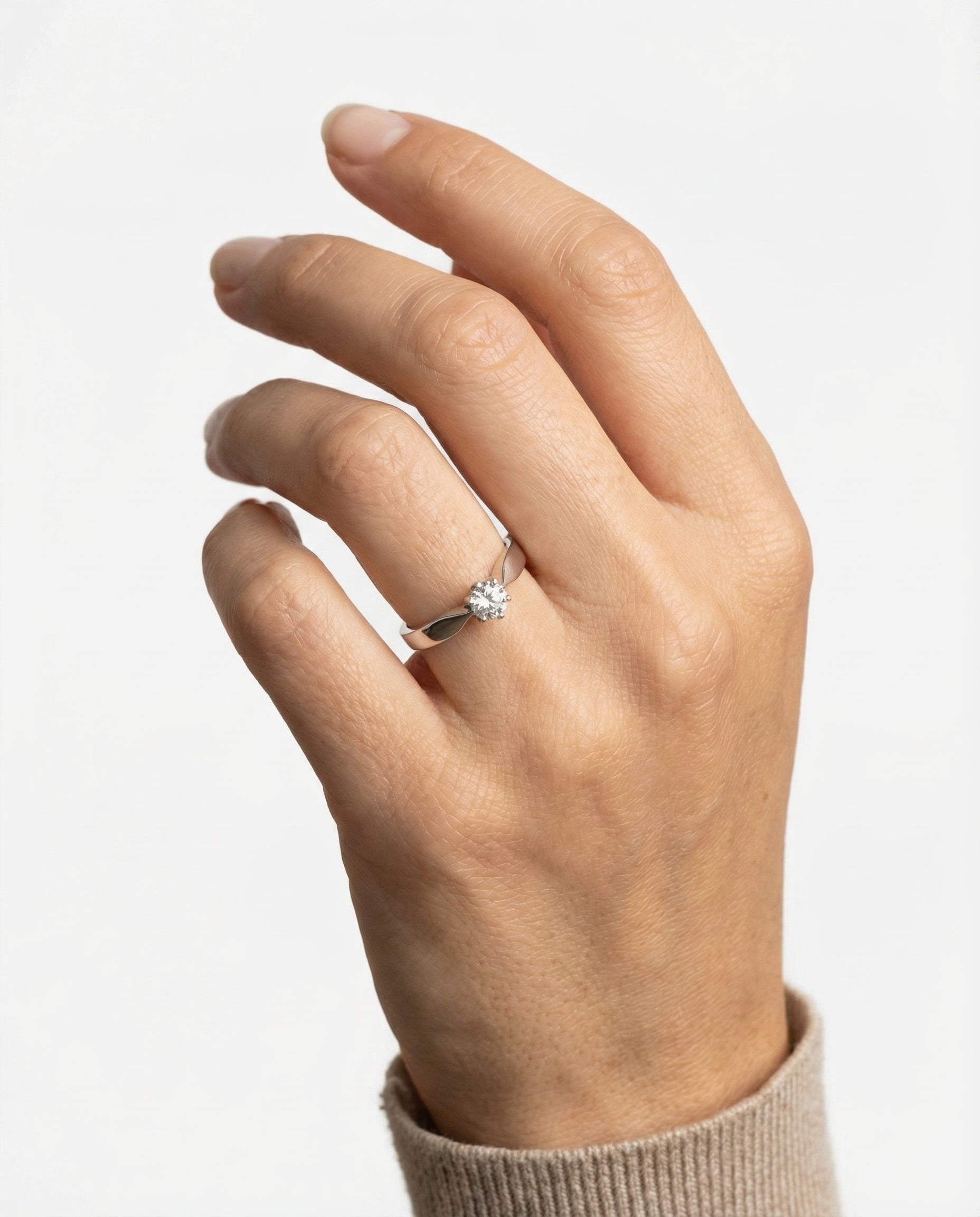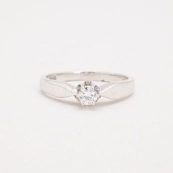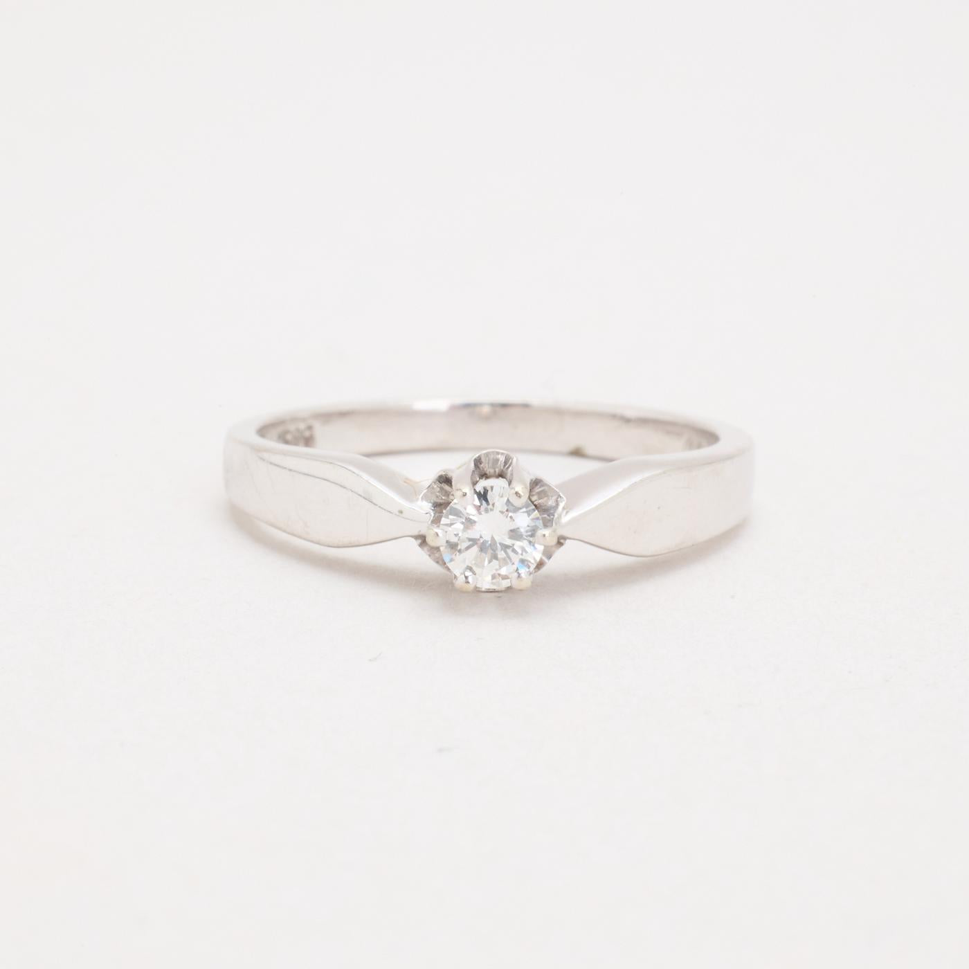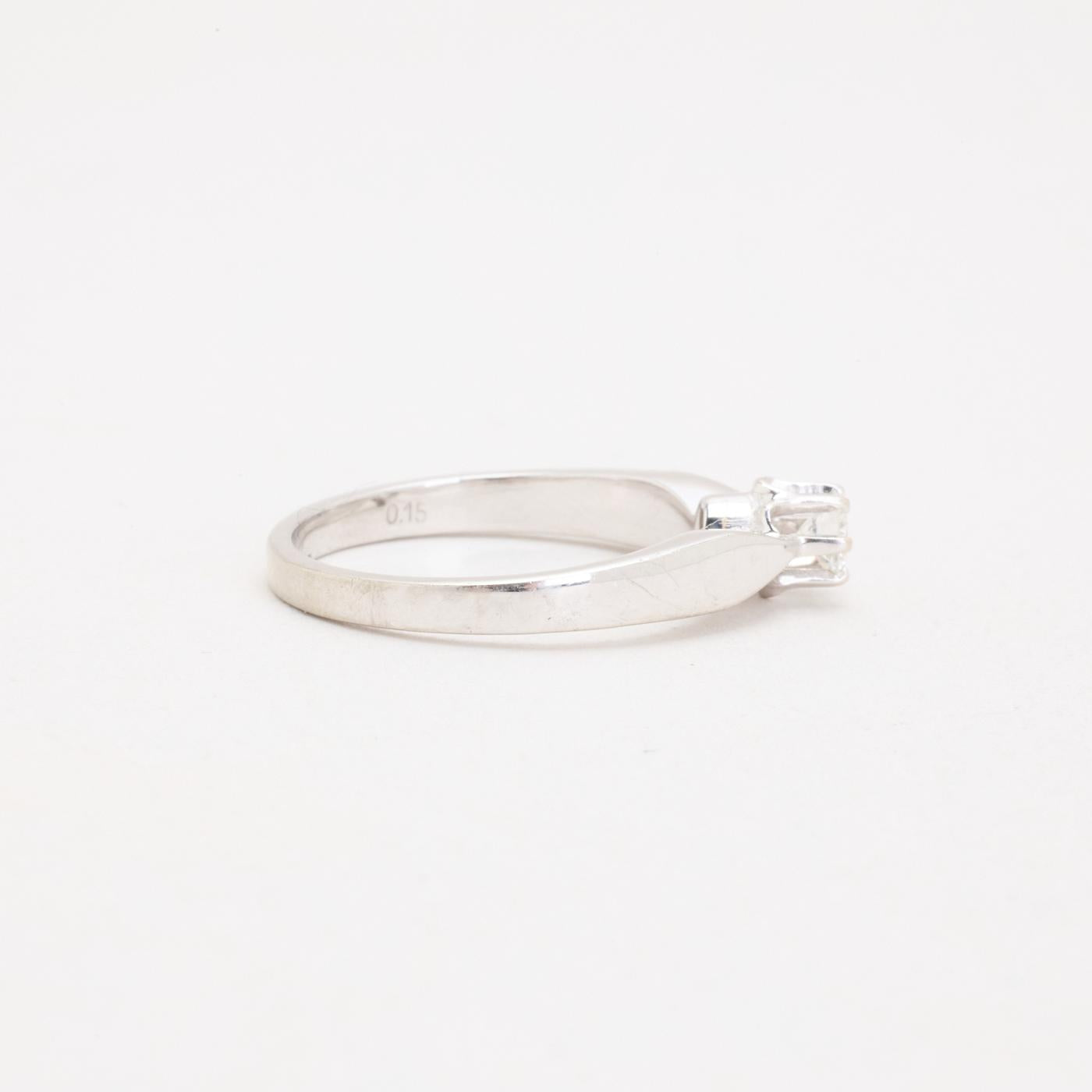 Solitairering i 14K hvidguld med en diamant (0.19 ct), Str. 52
