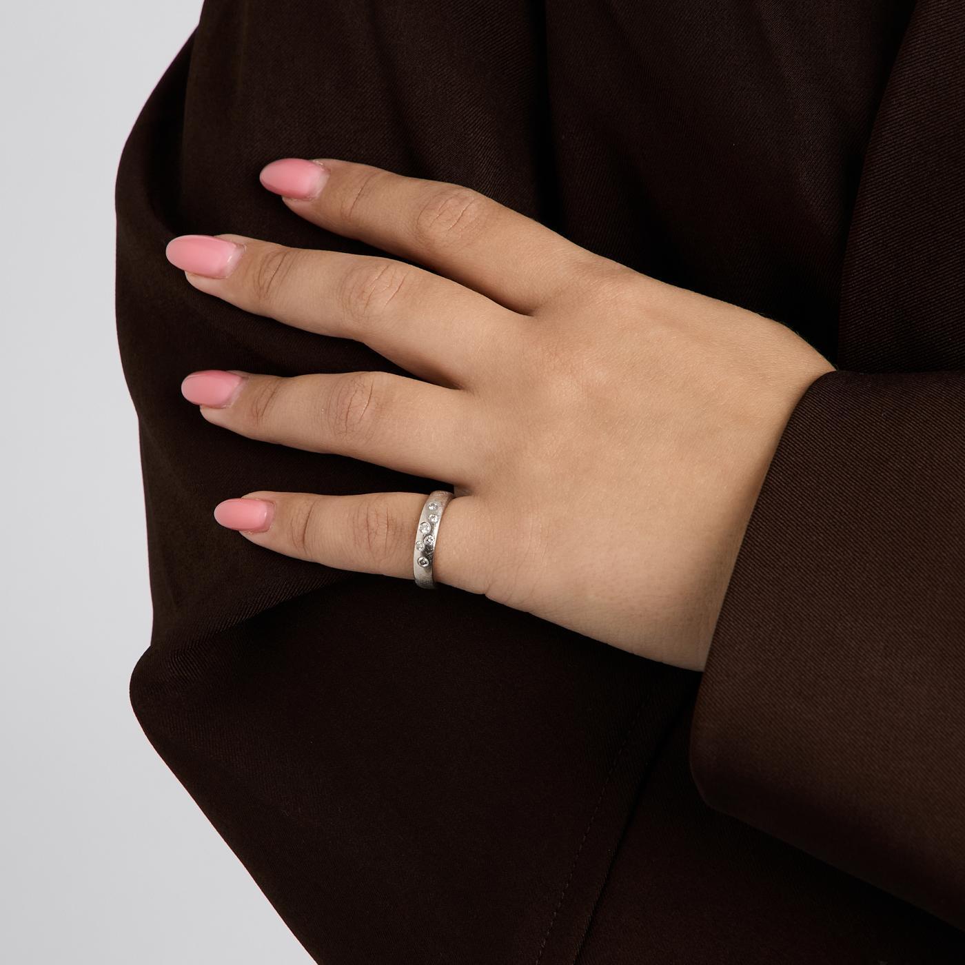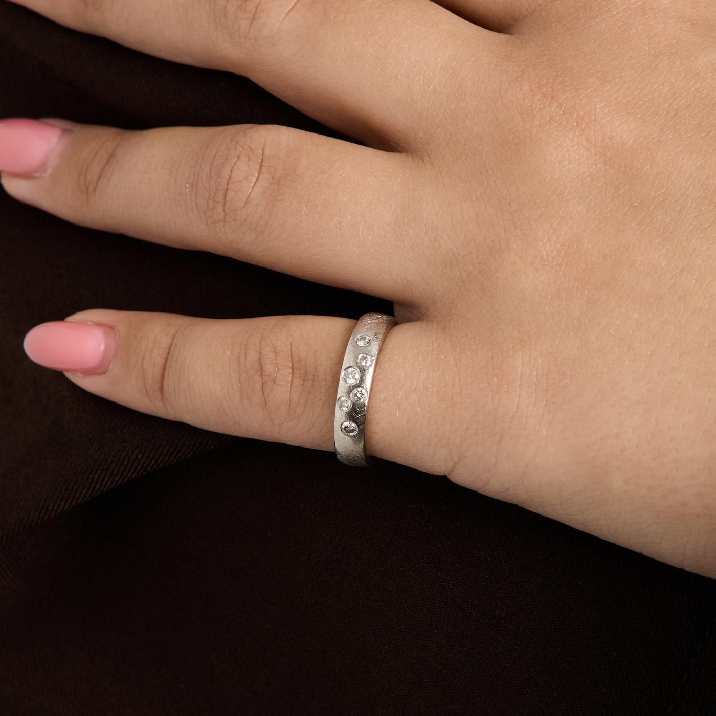 Gypsy-ring i 14K hvidguld, med diamanter (0,07 ct), Str. 51
