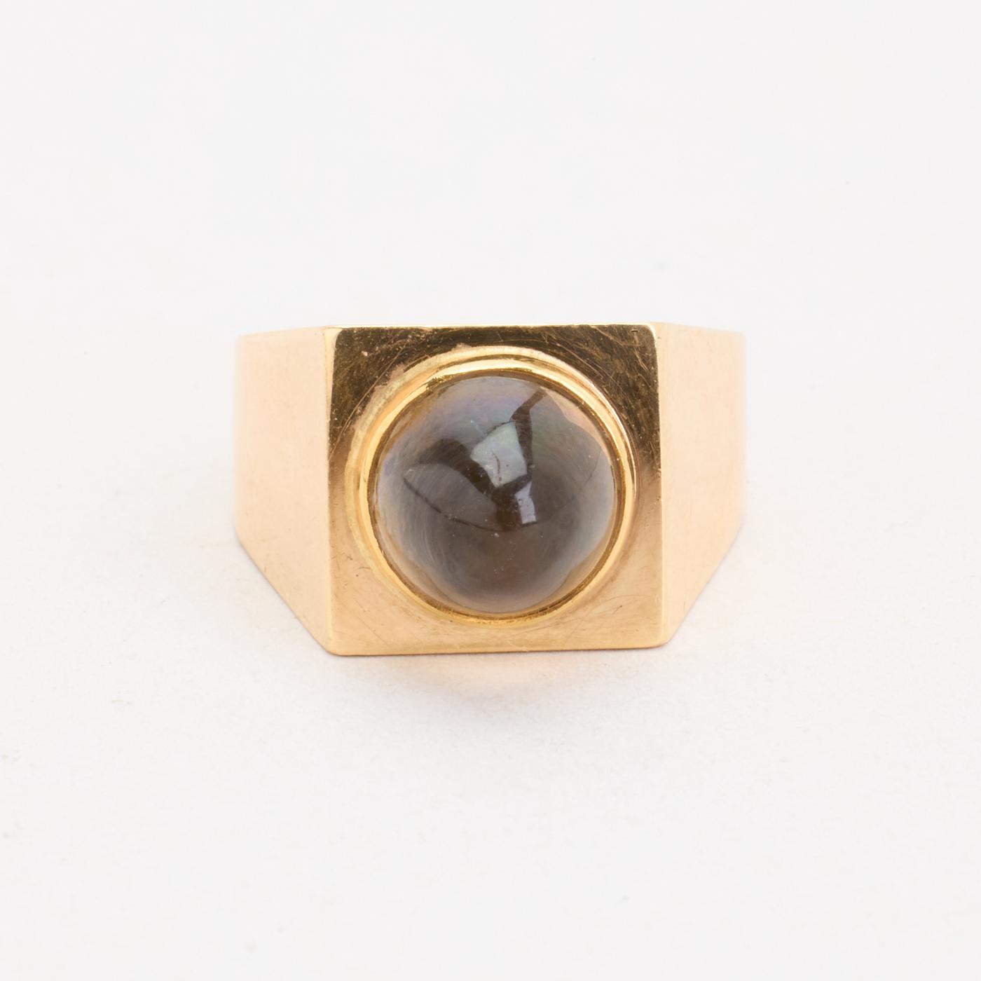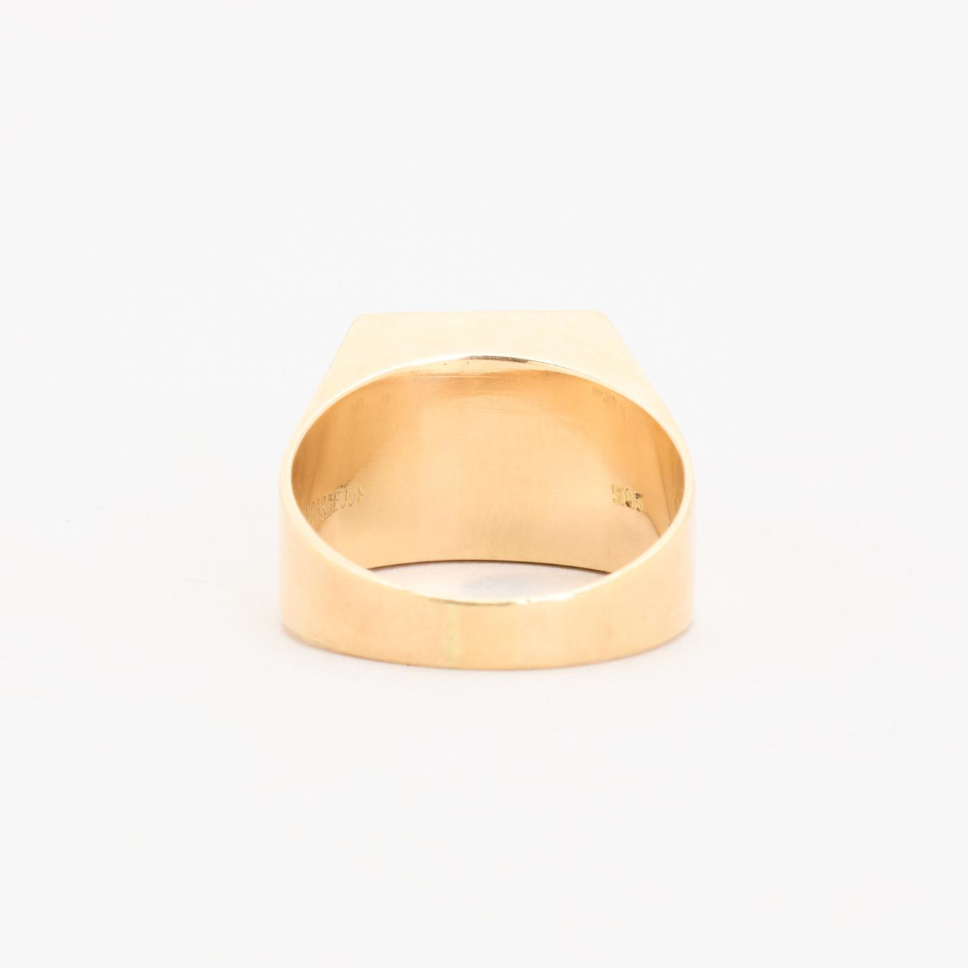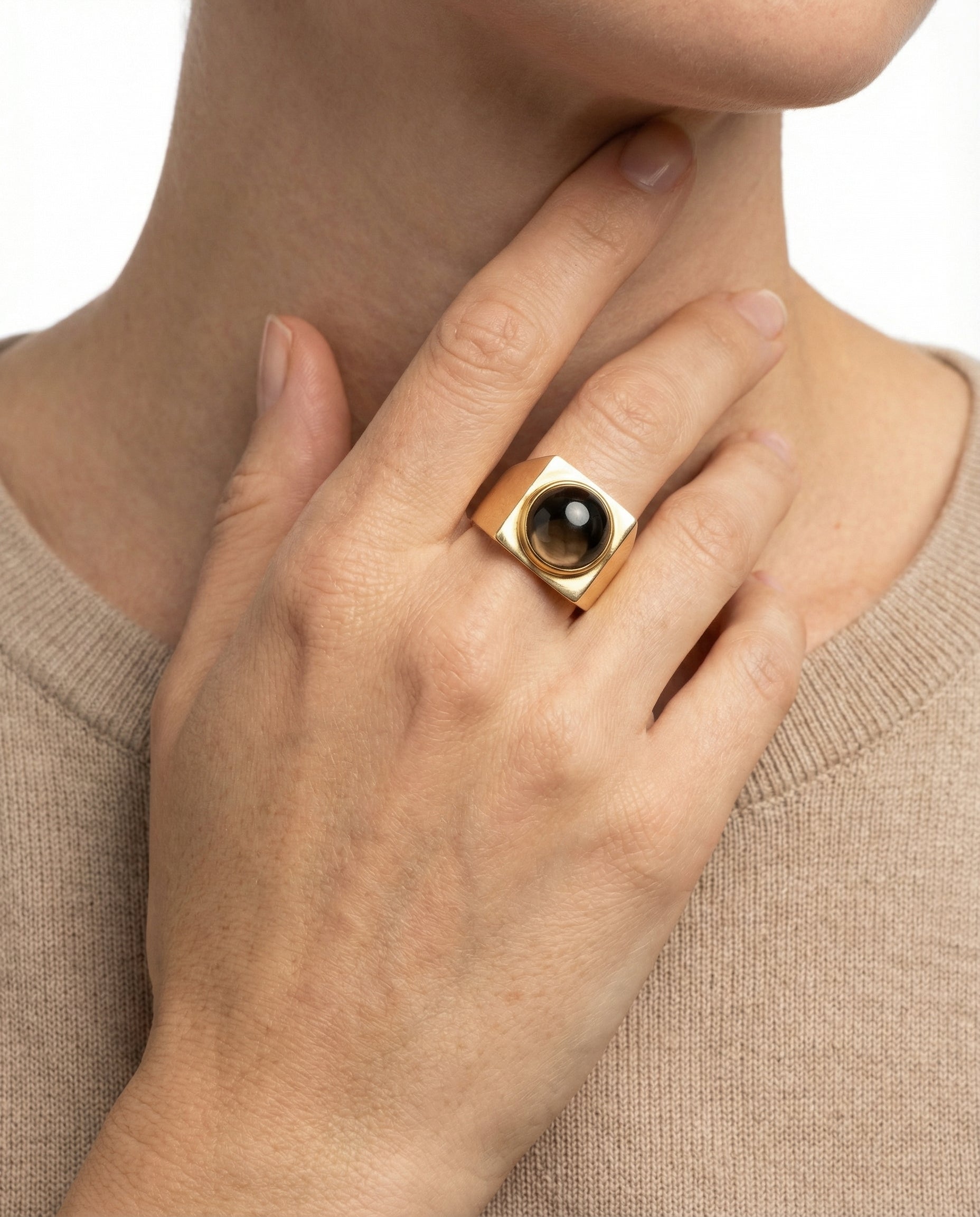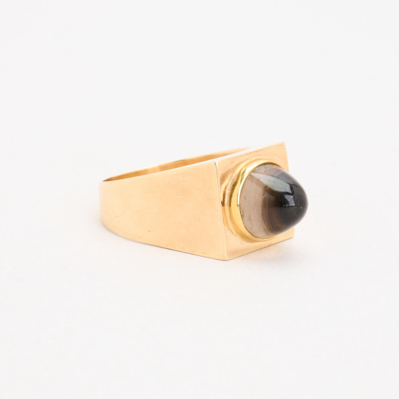 Signetring i 14K guld med en røgkvarts, Str. 55
